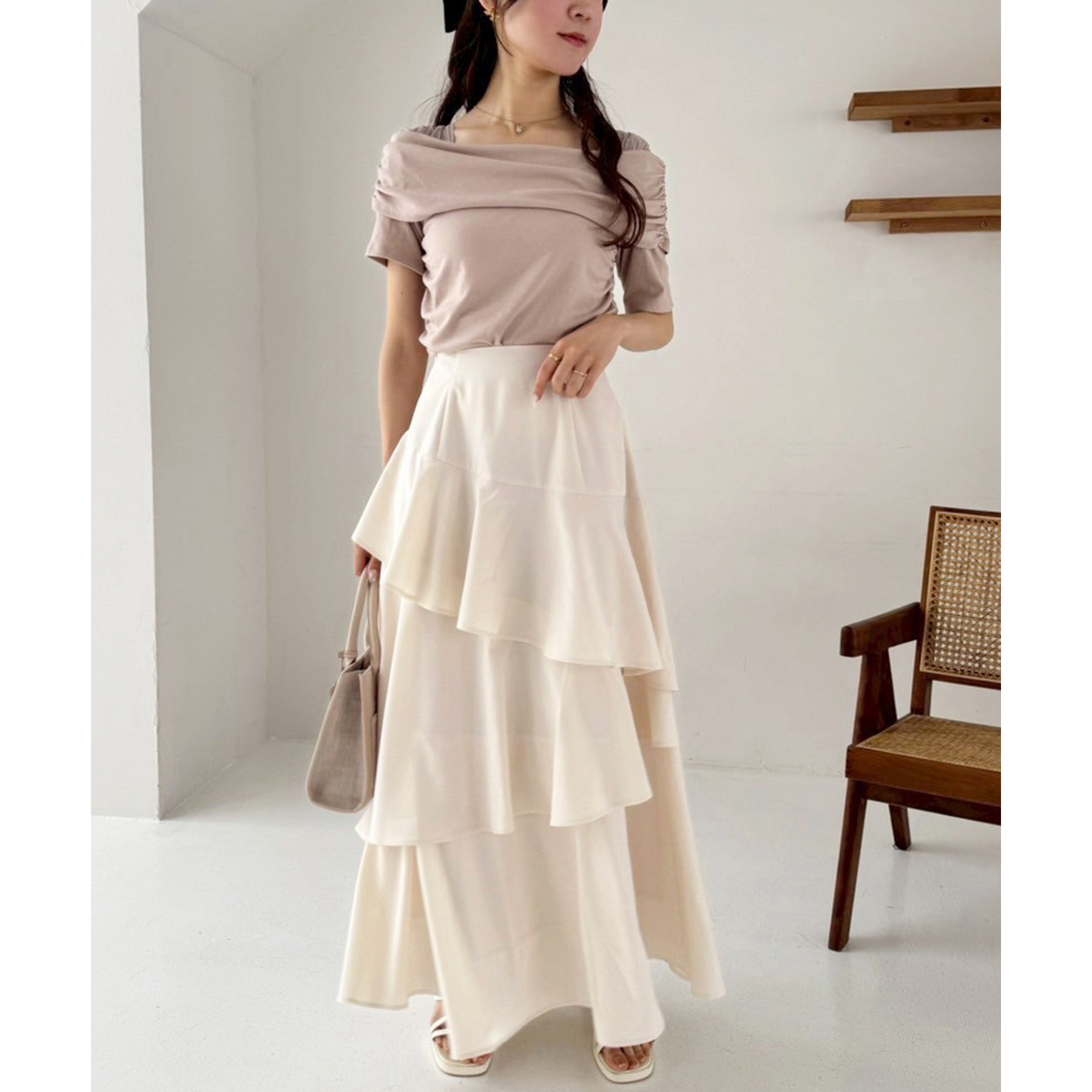 大人レディーなコーデなら、マーメイドスカートやプリーツスカートとの相性が◎