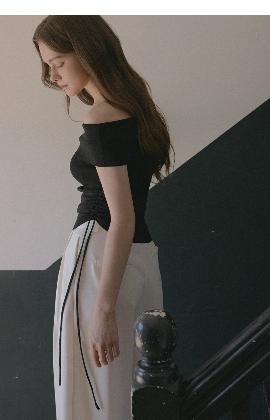 허리에 조절 가능한 셔링 디테일로 취향에 따라 조절해 연출해보실 수 있습니다