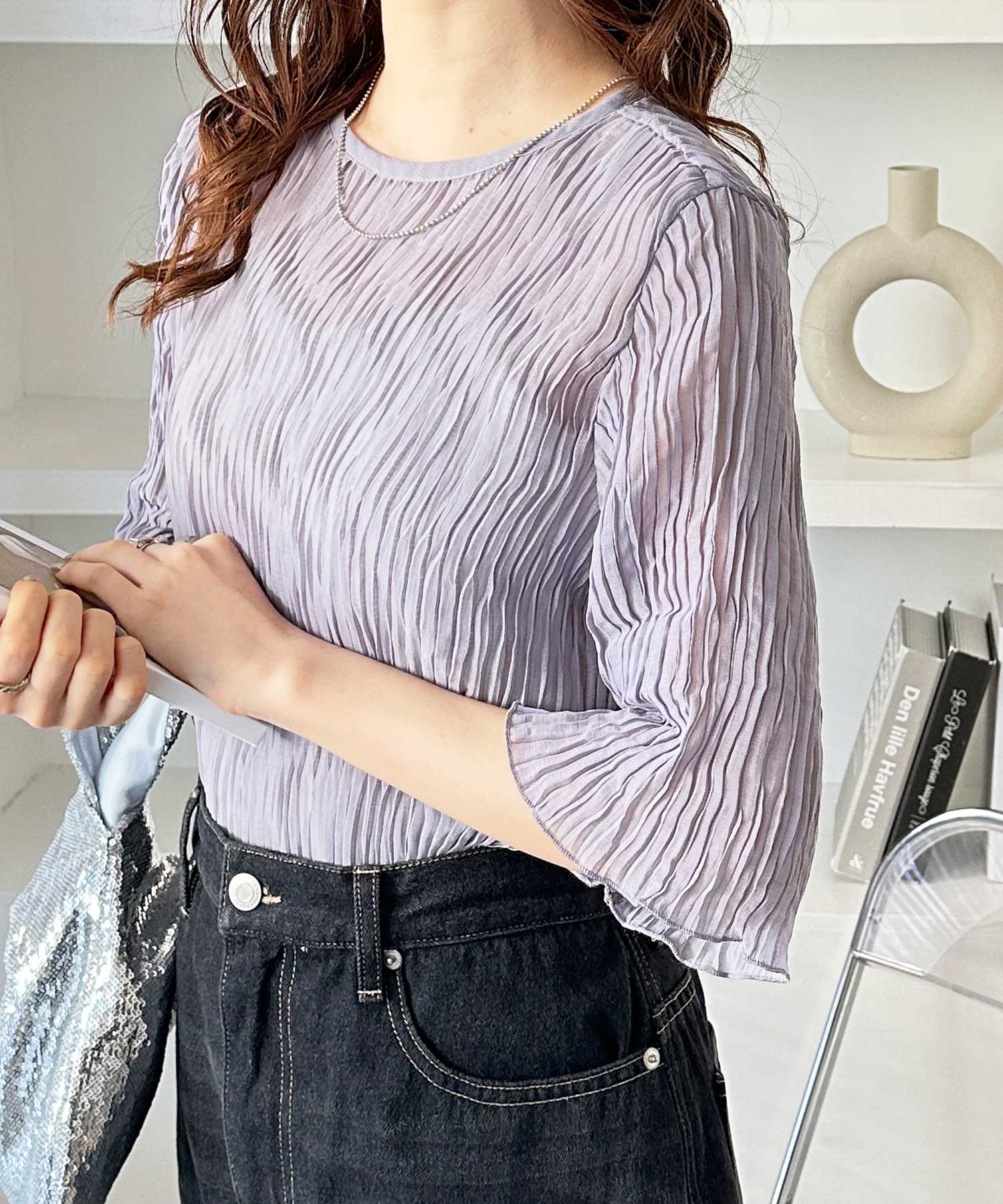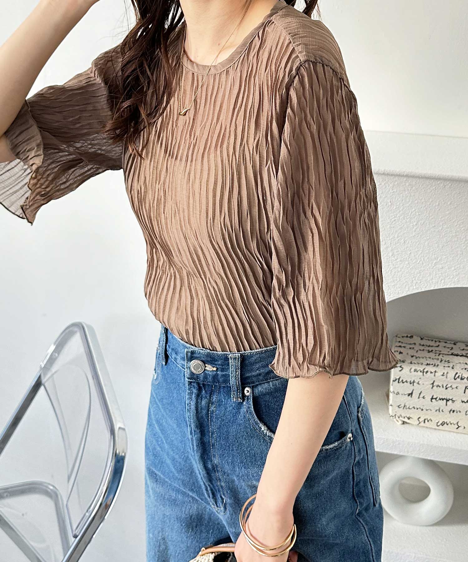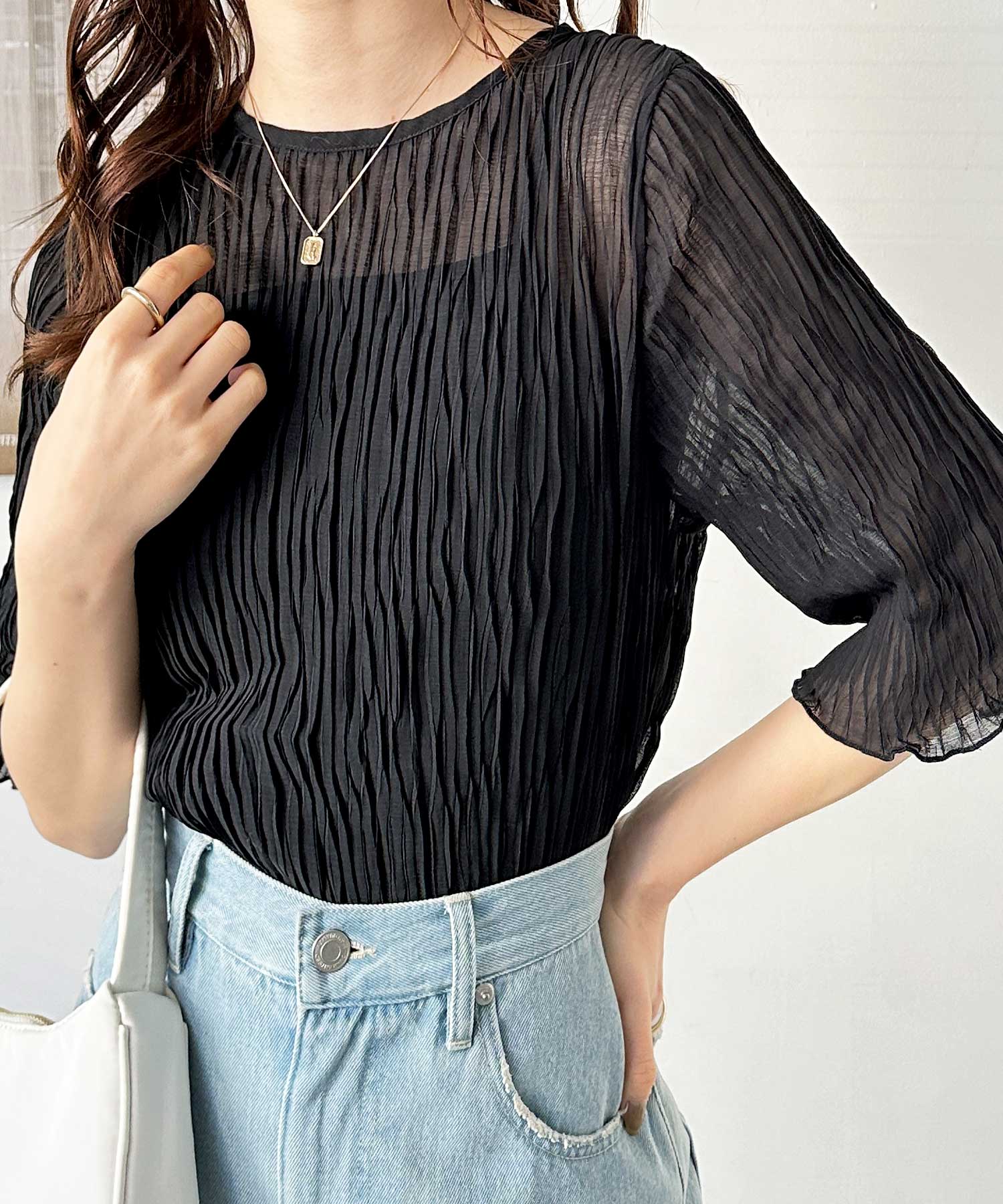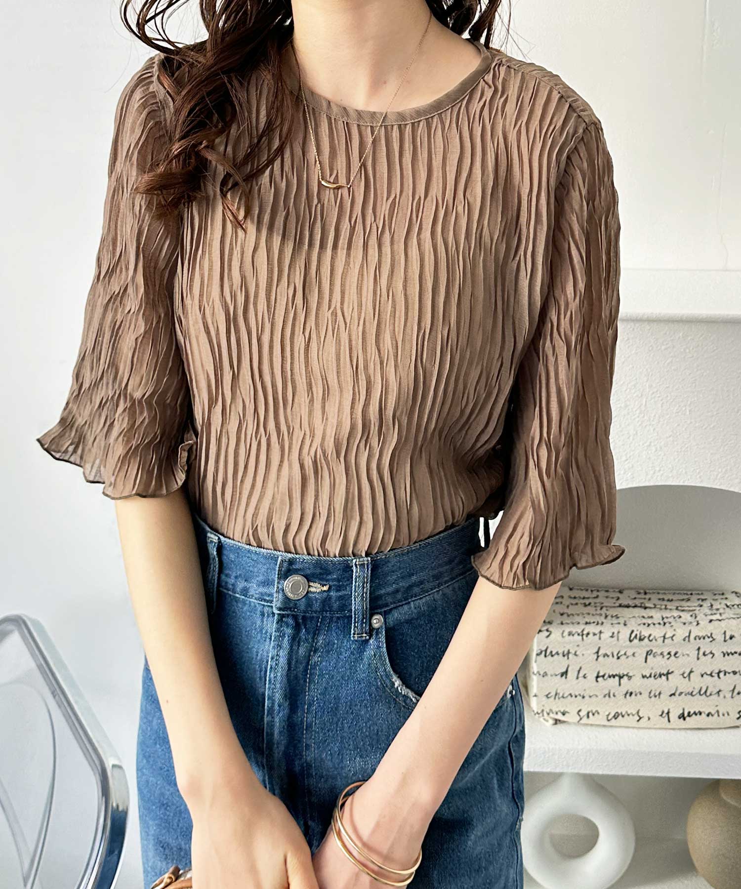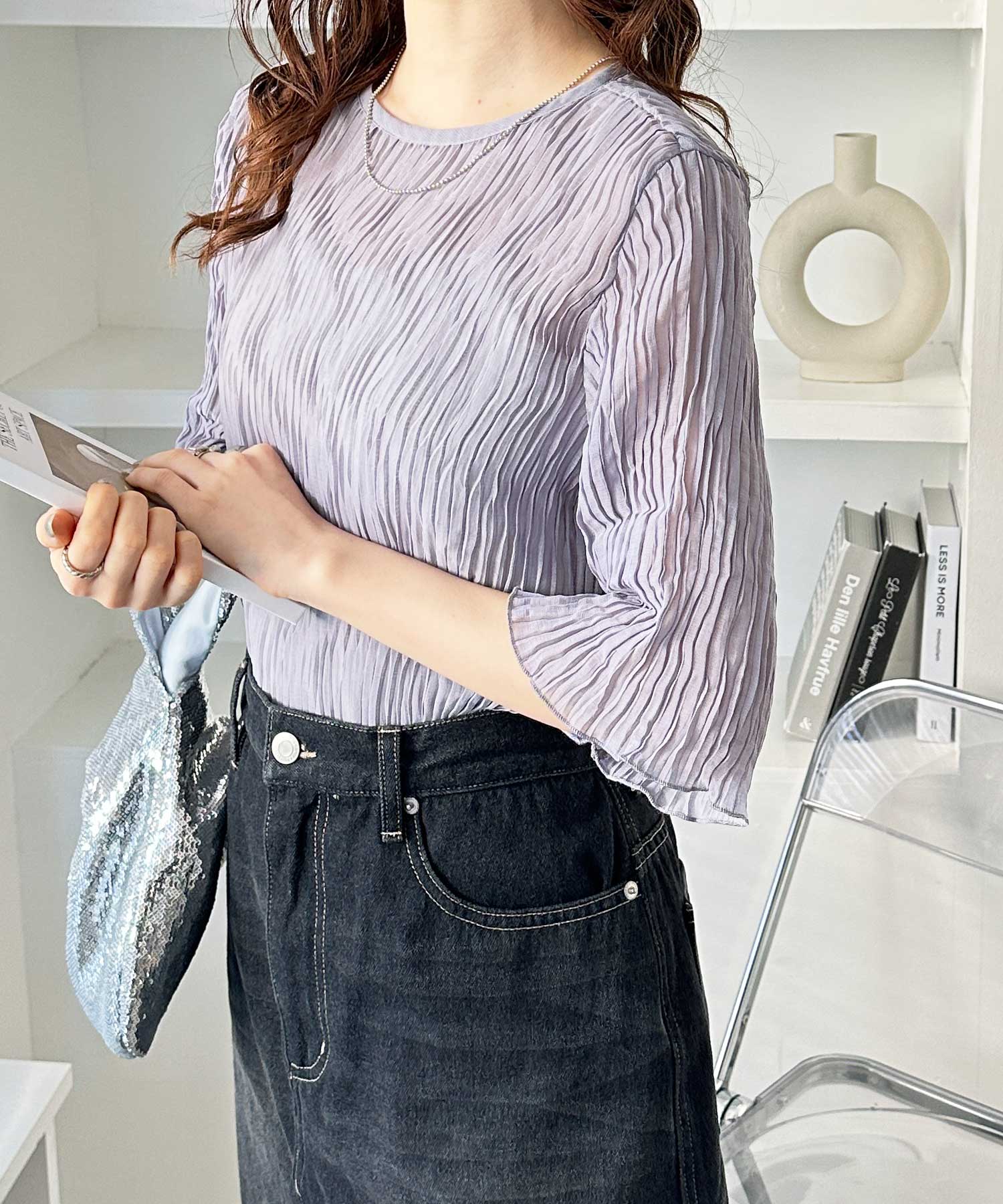 凹凸感のあるシフォンプリーツがいつものコーデにアクセントをプラス。