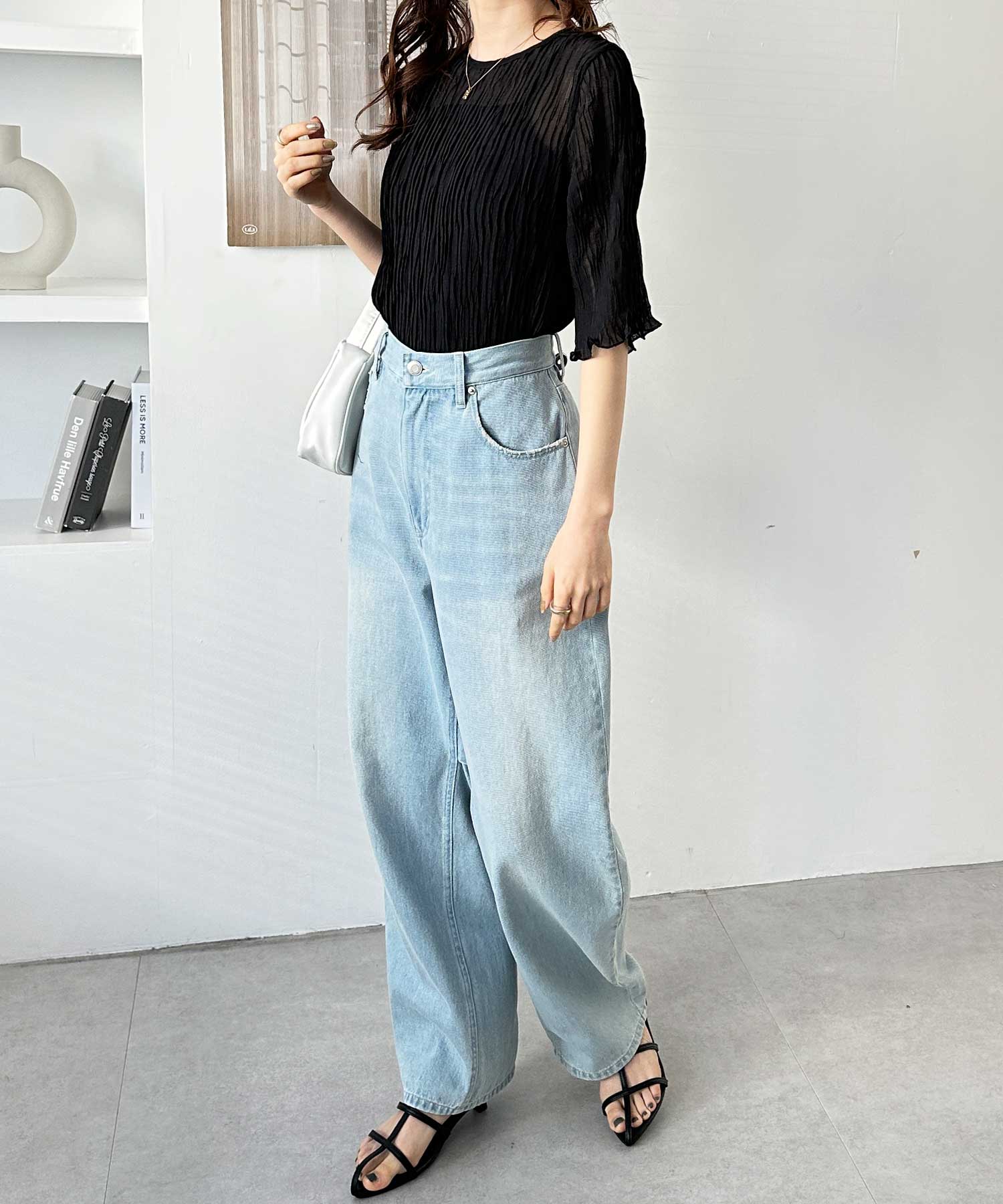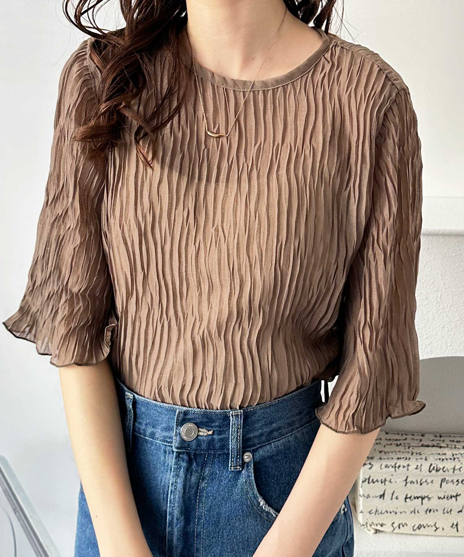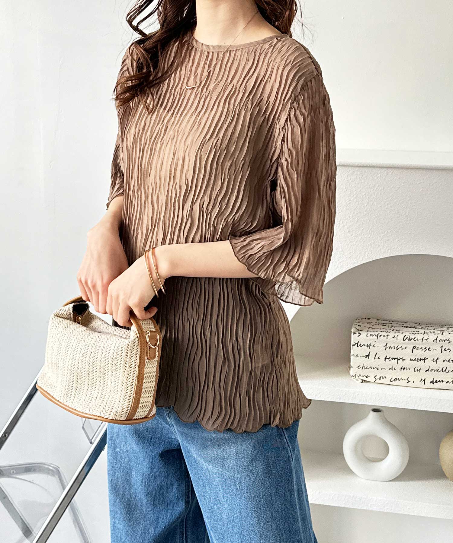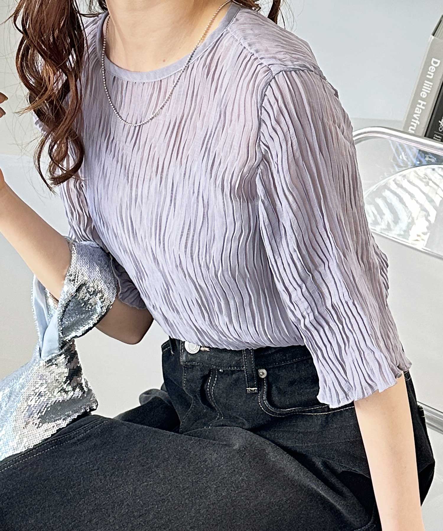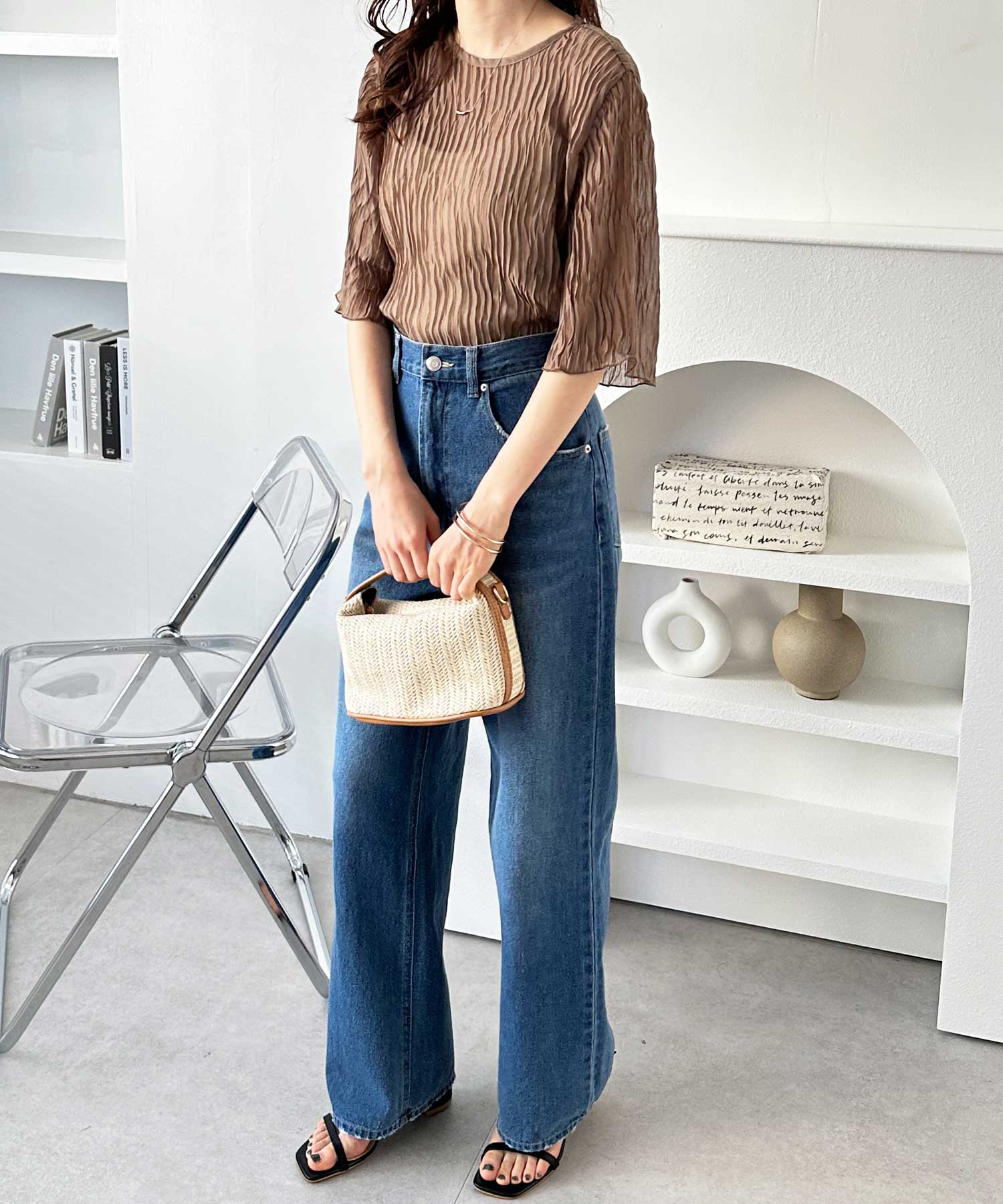 凹凸感のあるシフォンプリーツがいつものコーデにアクセントをプラス。