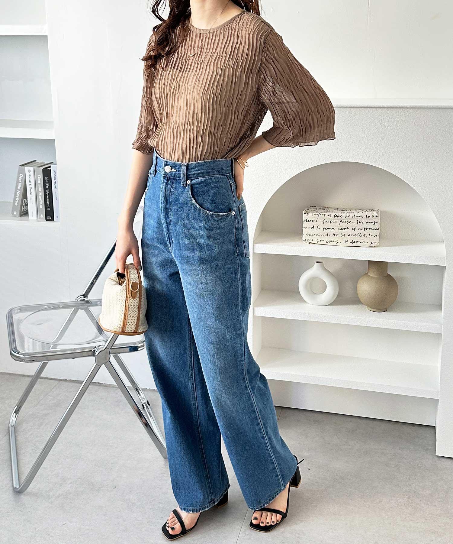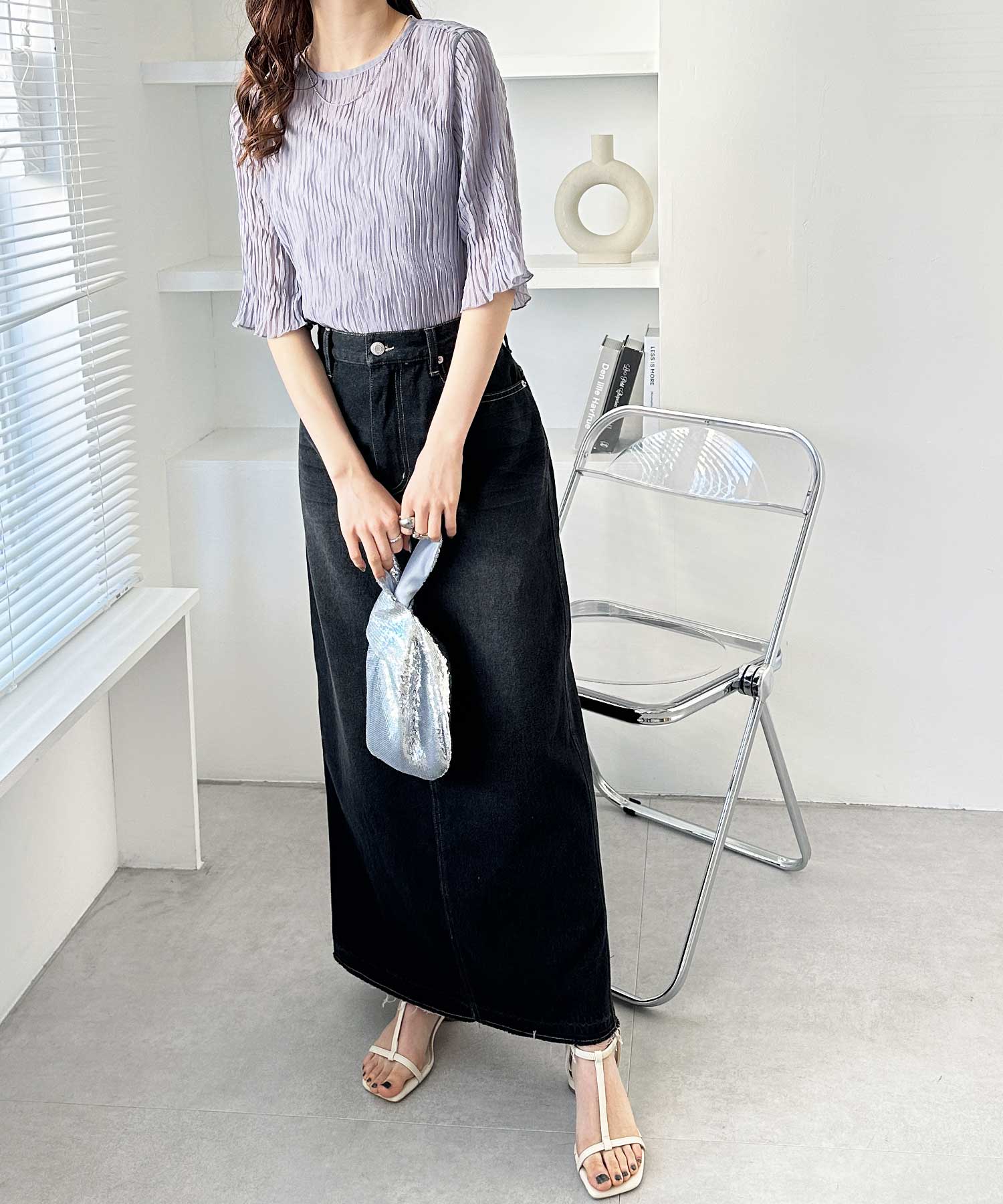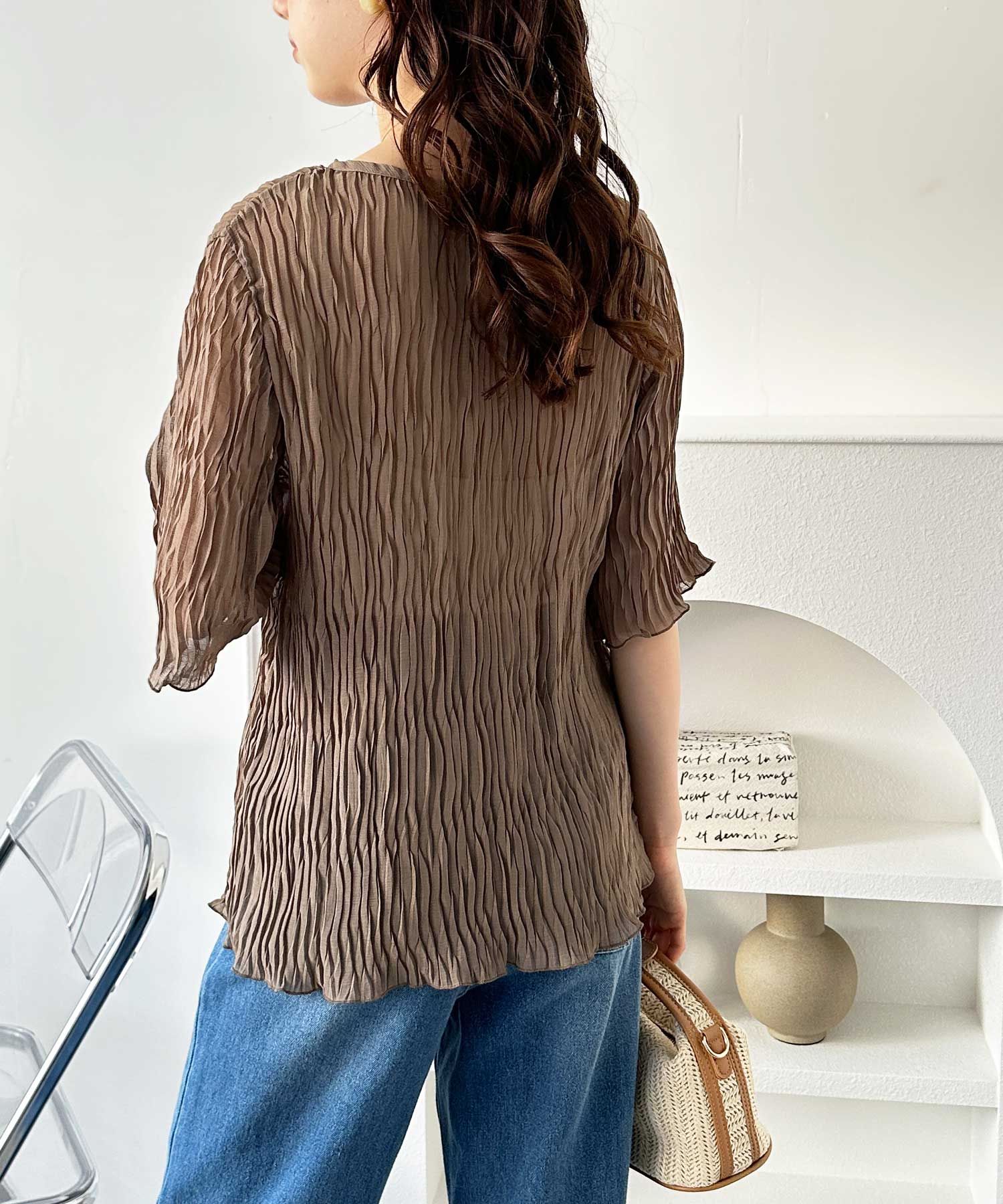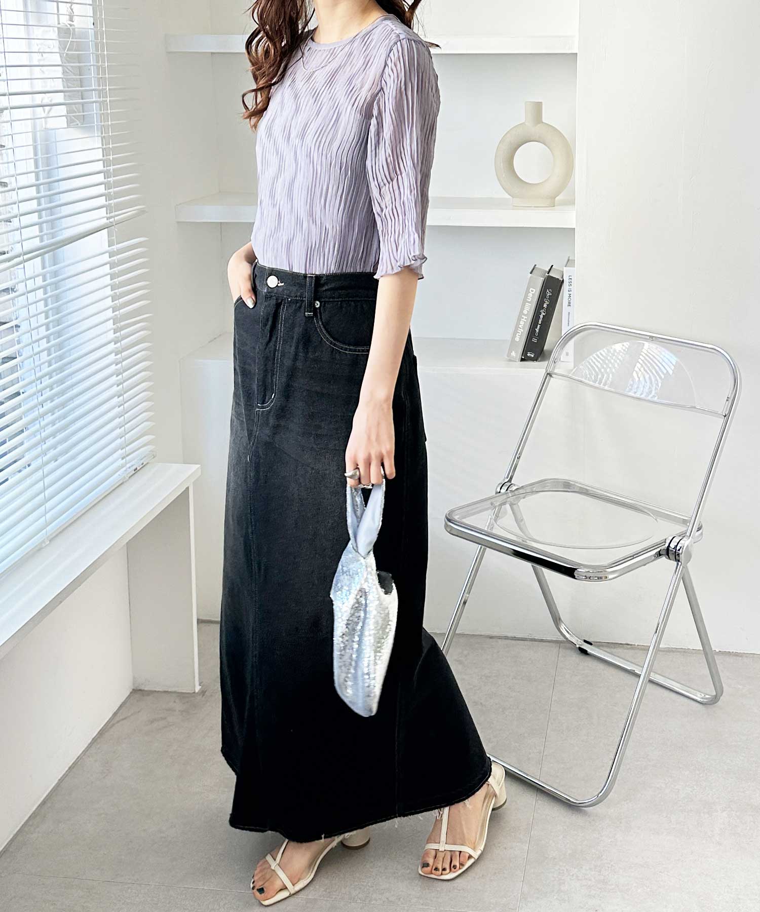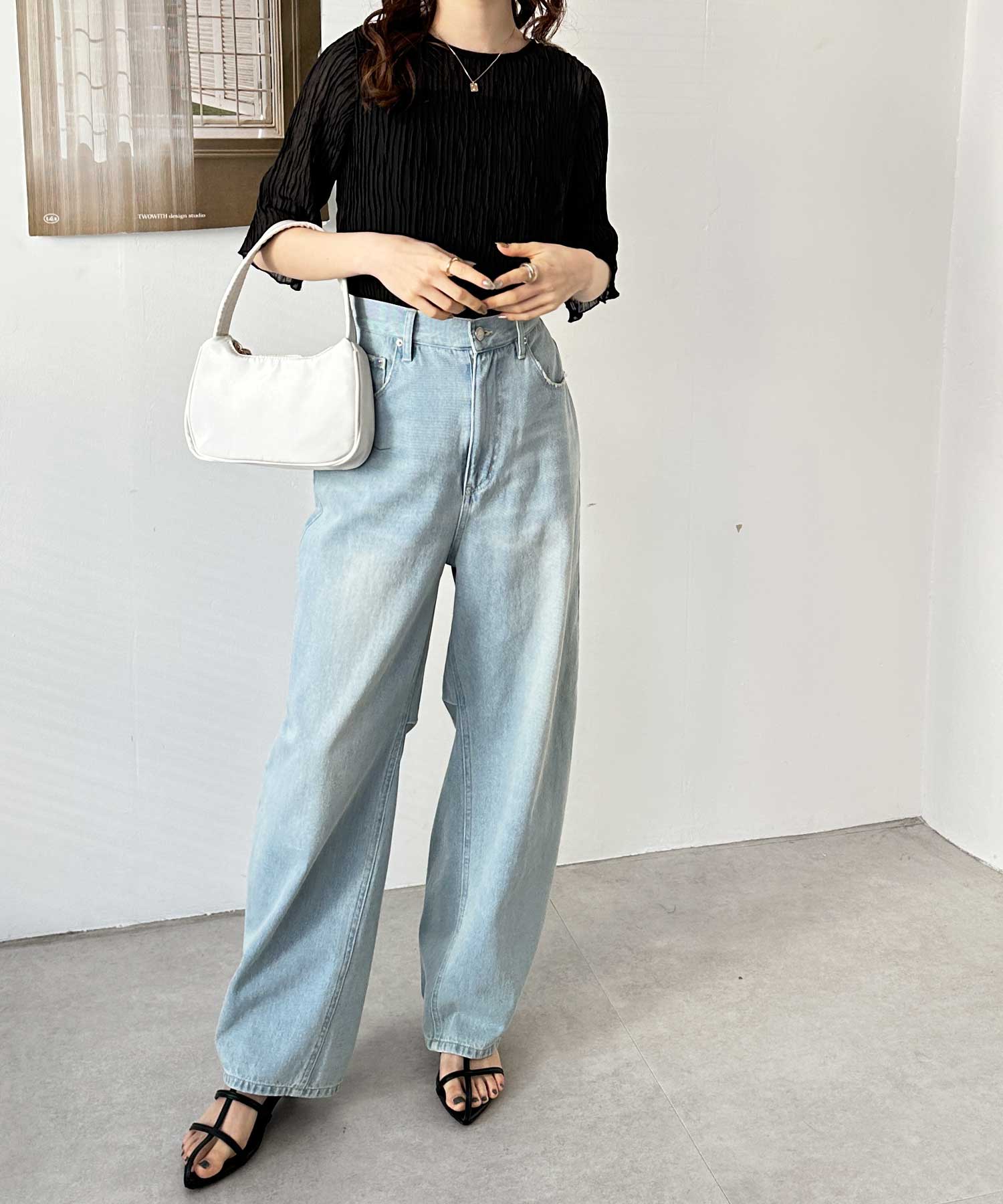 凹凸感のあるシフォンプリーツがいつものコーデにアクセントをプラス。