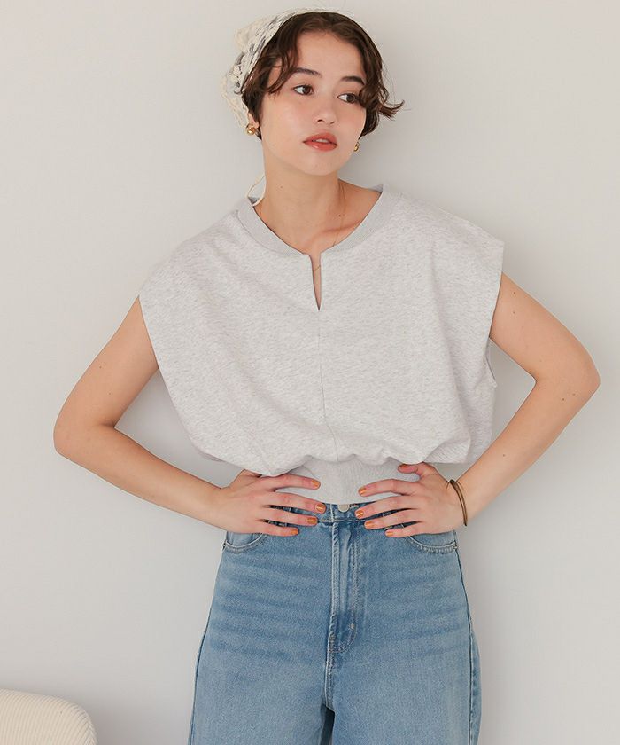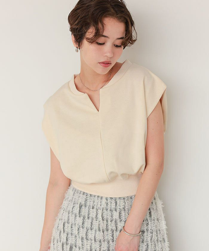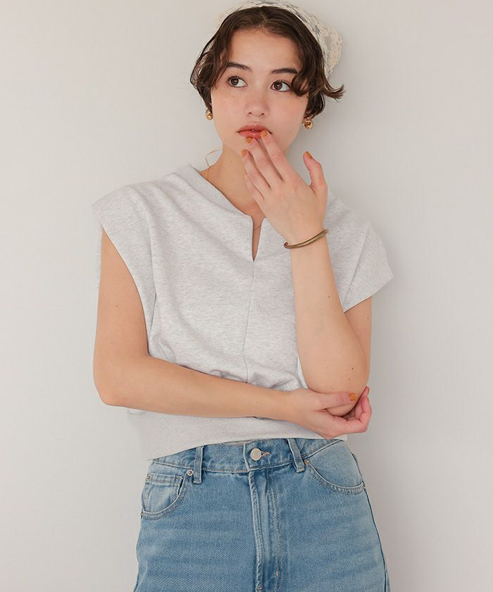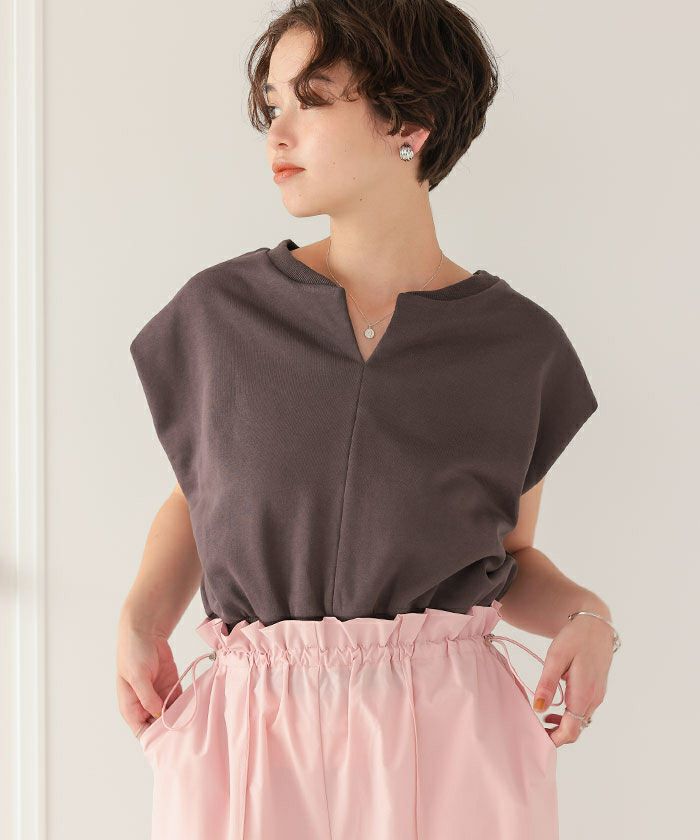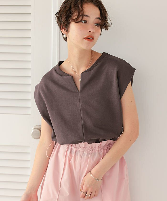 キーネックカットソーコンパクトトップス