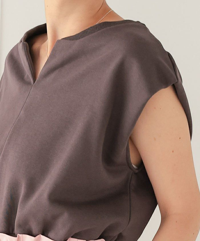 ・袖口はタックデザインになっており、立体感を持たせることで二の腕カバーを叶えたシルエットに