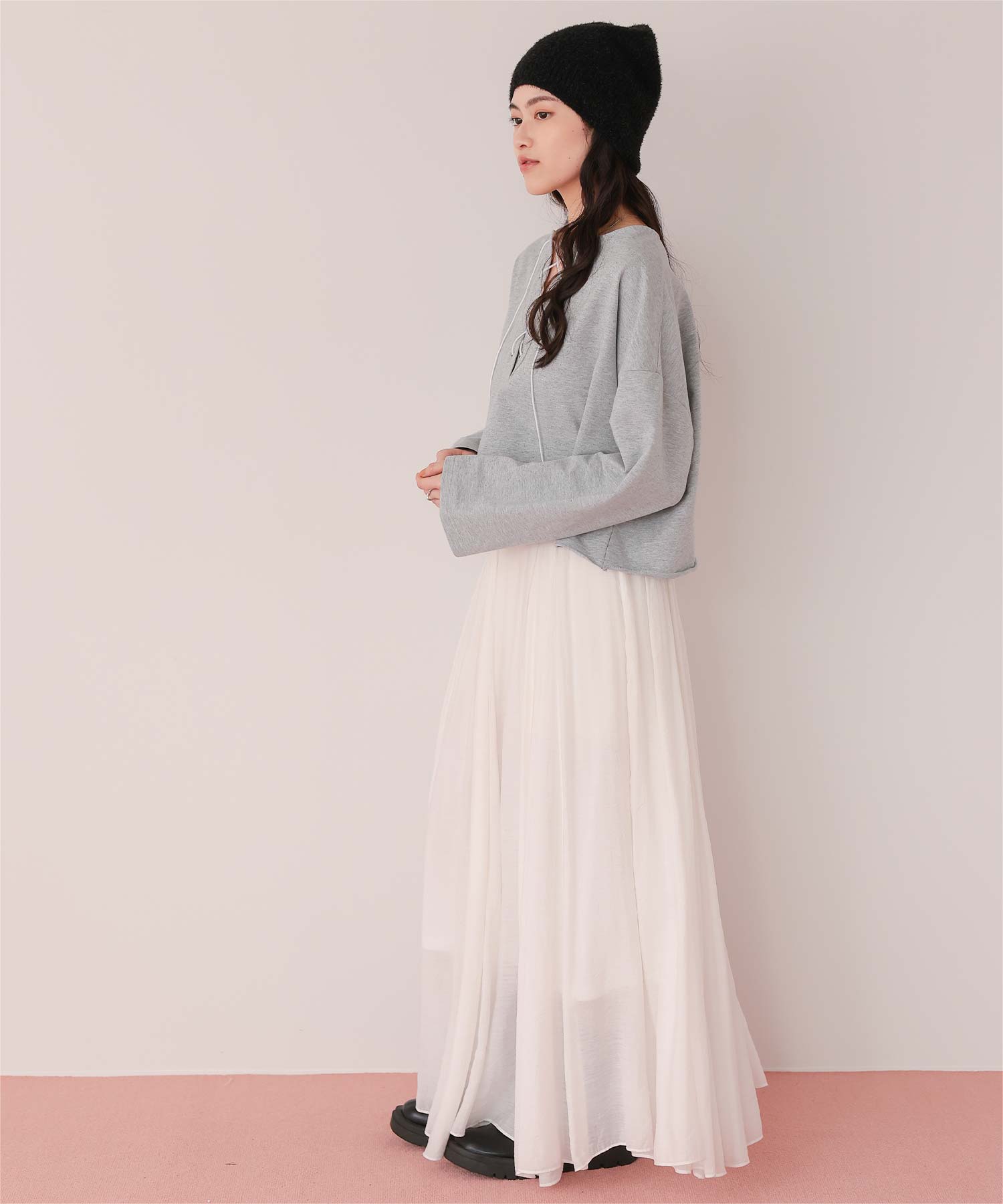 ・ややゆとりのあるシルエットで体のラインを拾わず、抜け感のあるこなれスタイルに