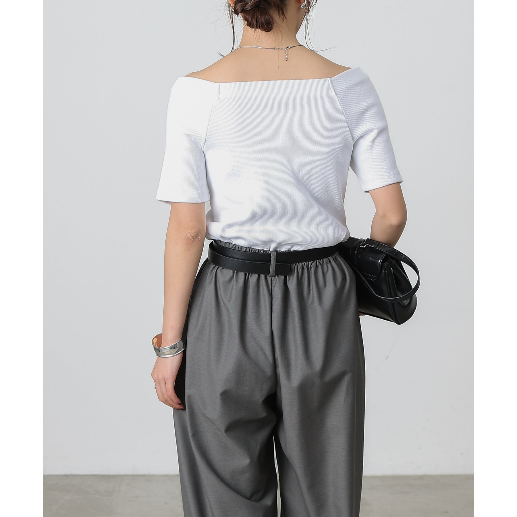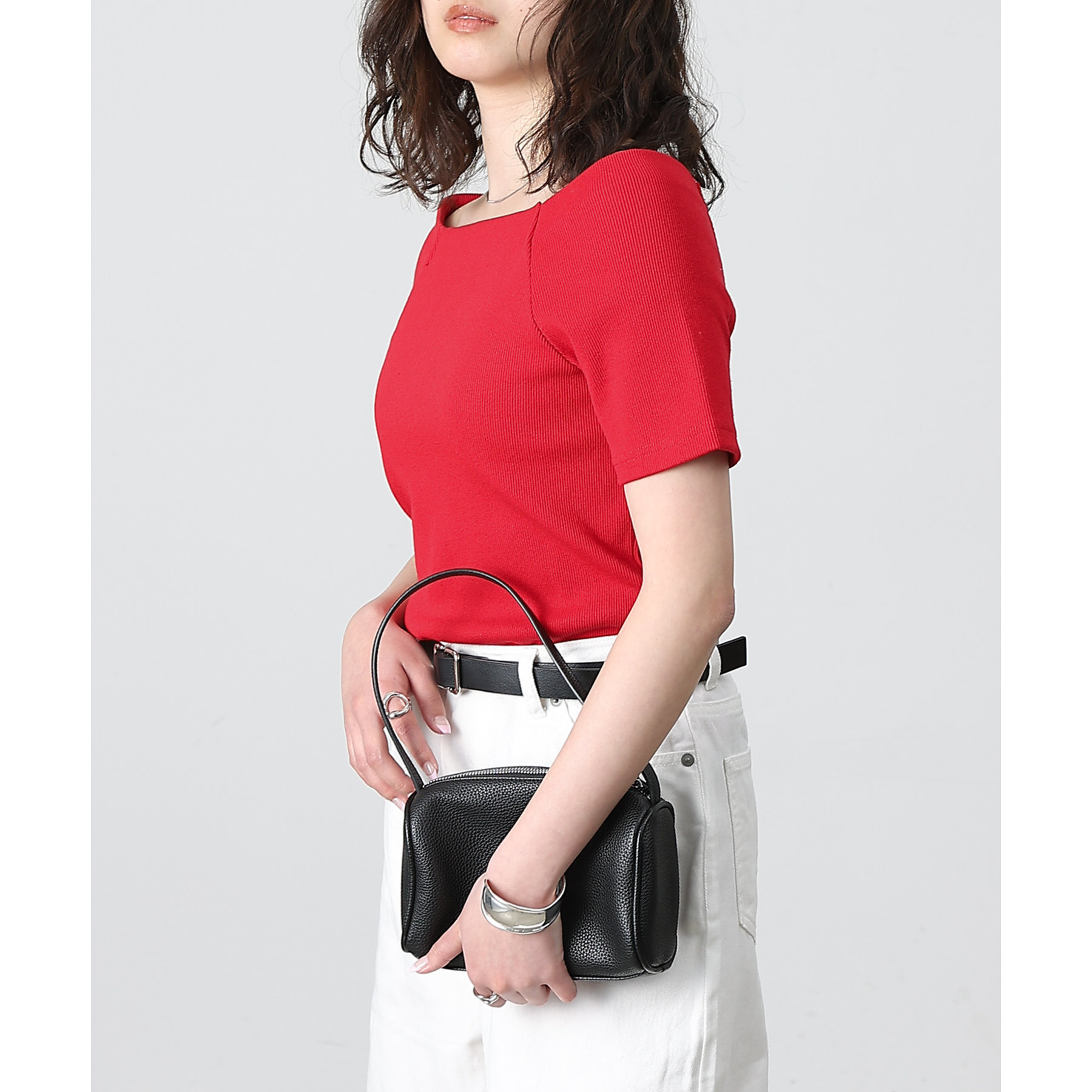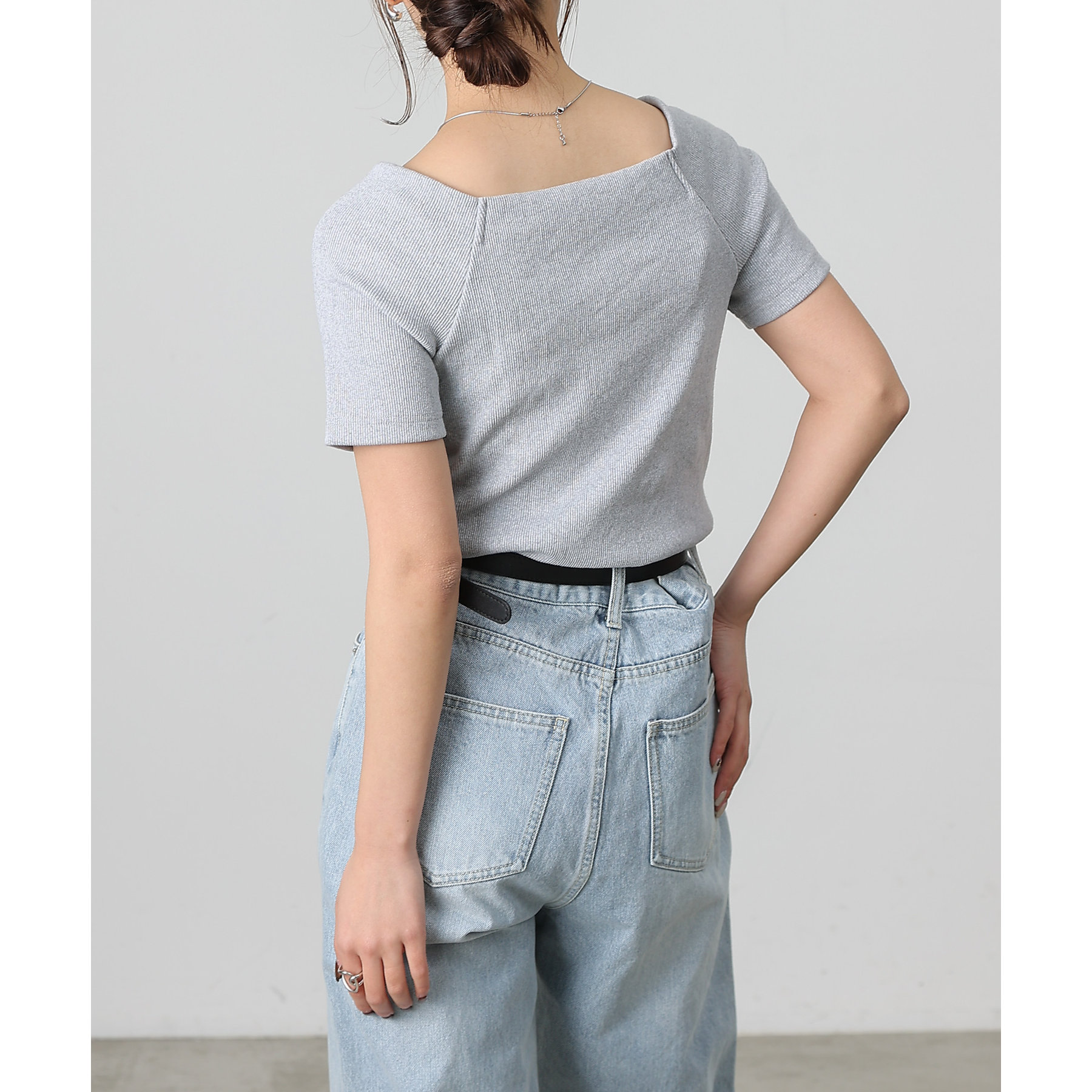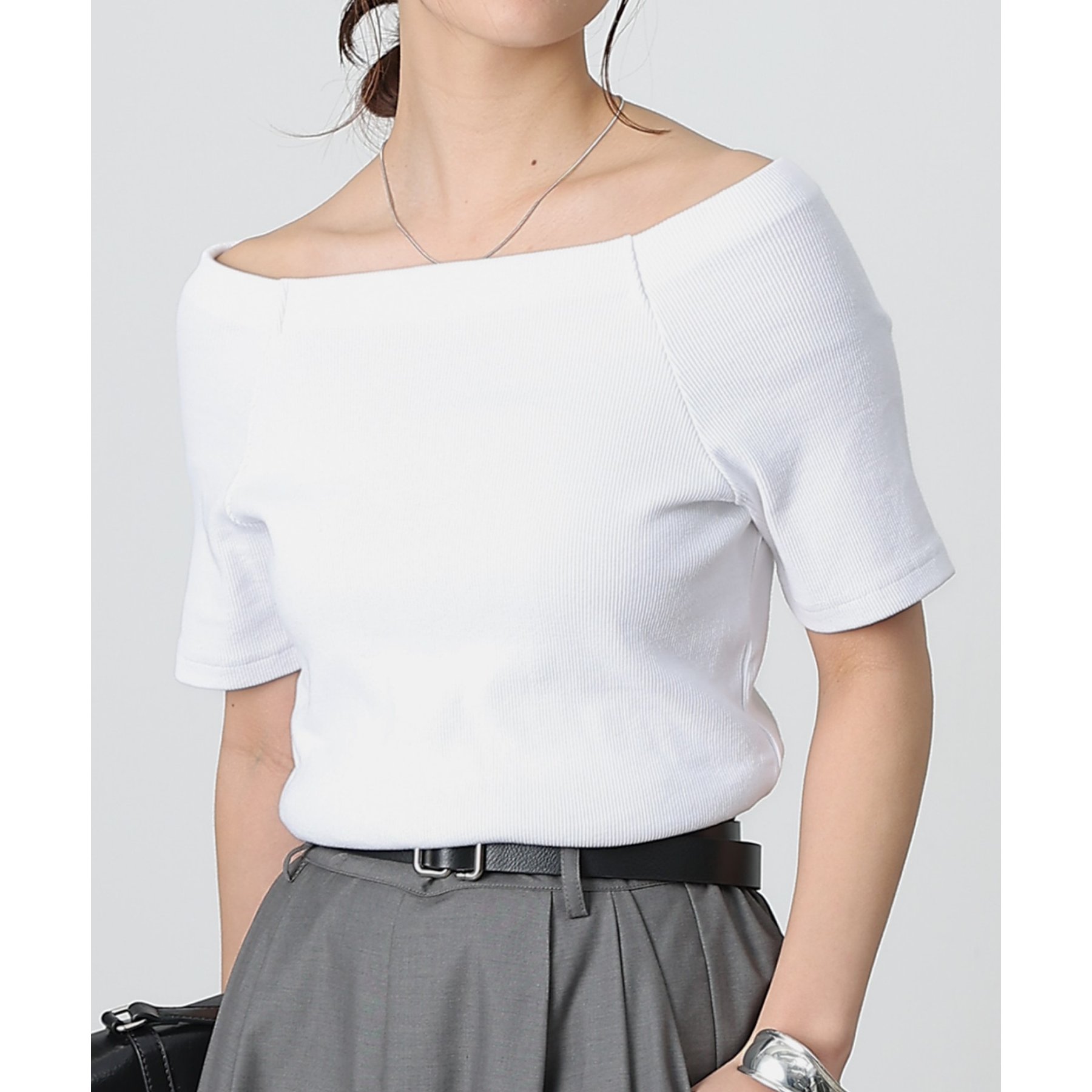 程よい開き具合のスクエアデザインで、小顔効果やデコルテも綺麗に見せてくれます。