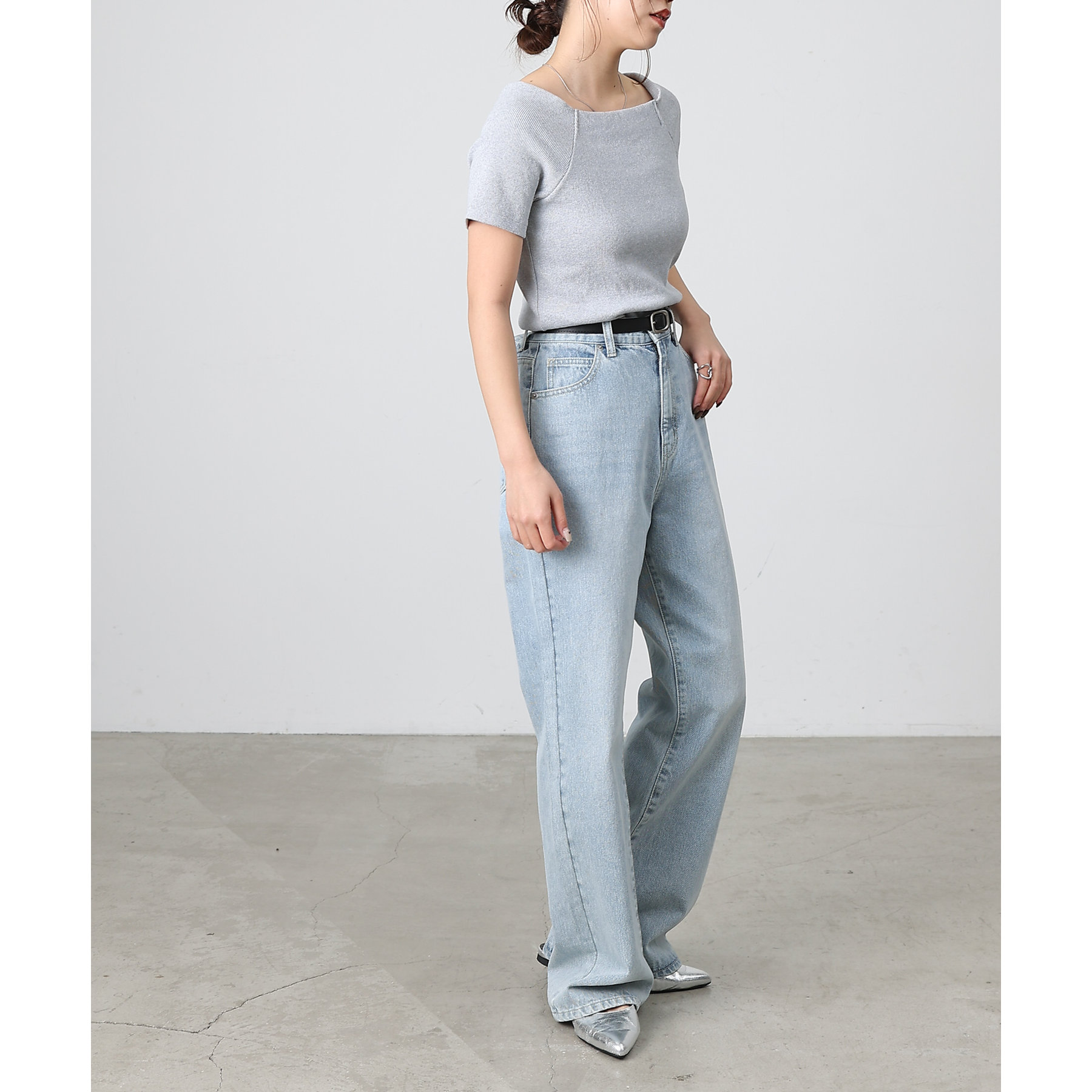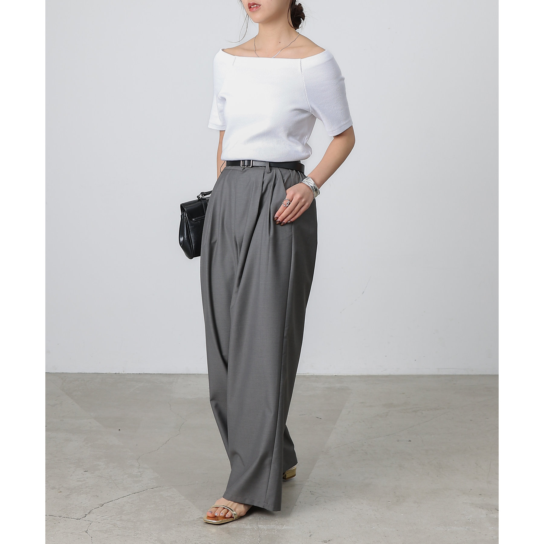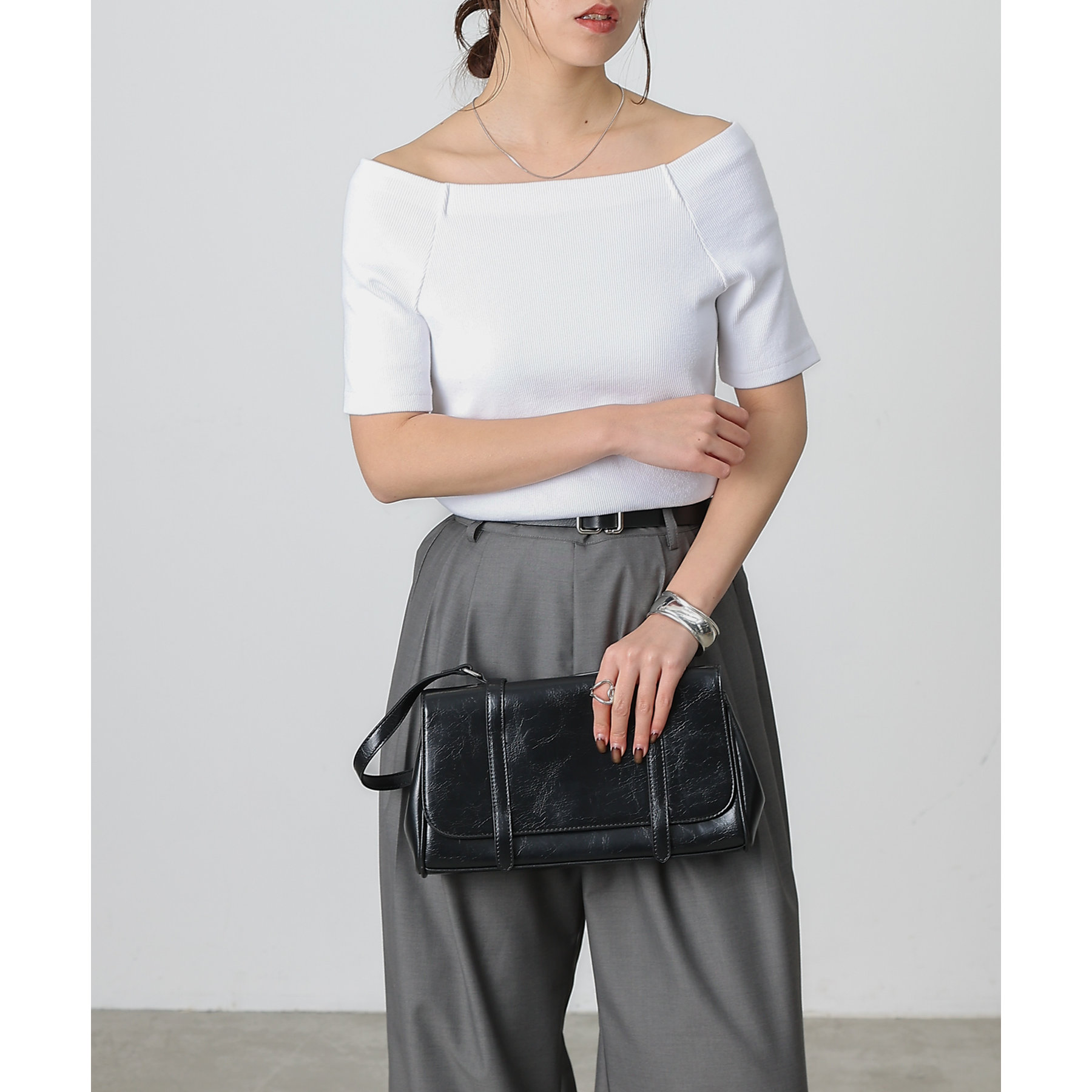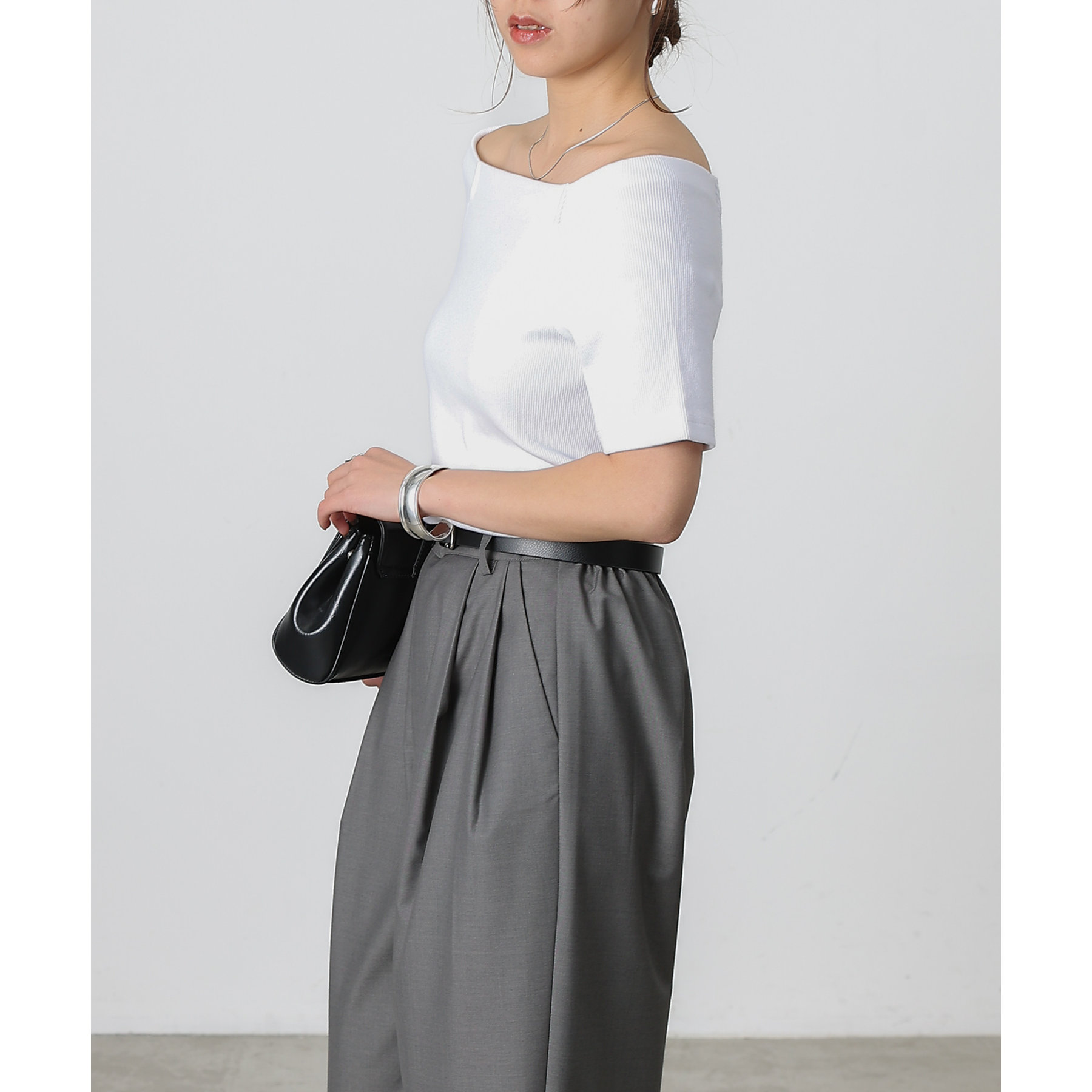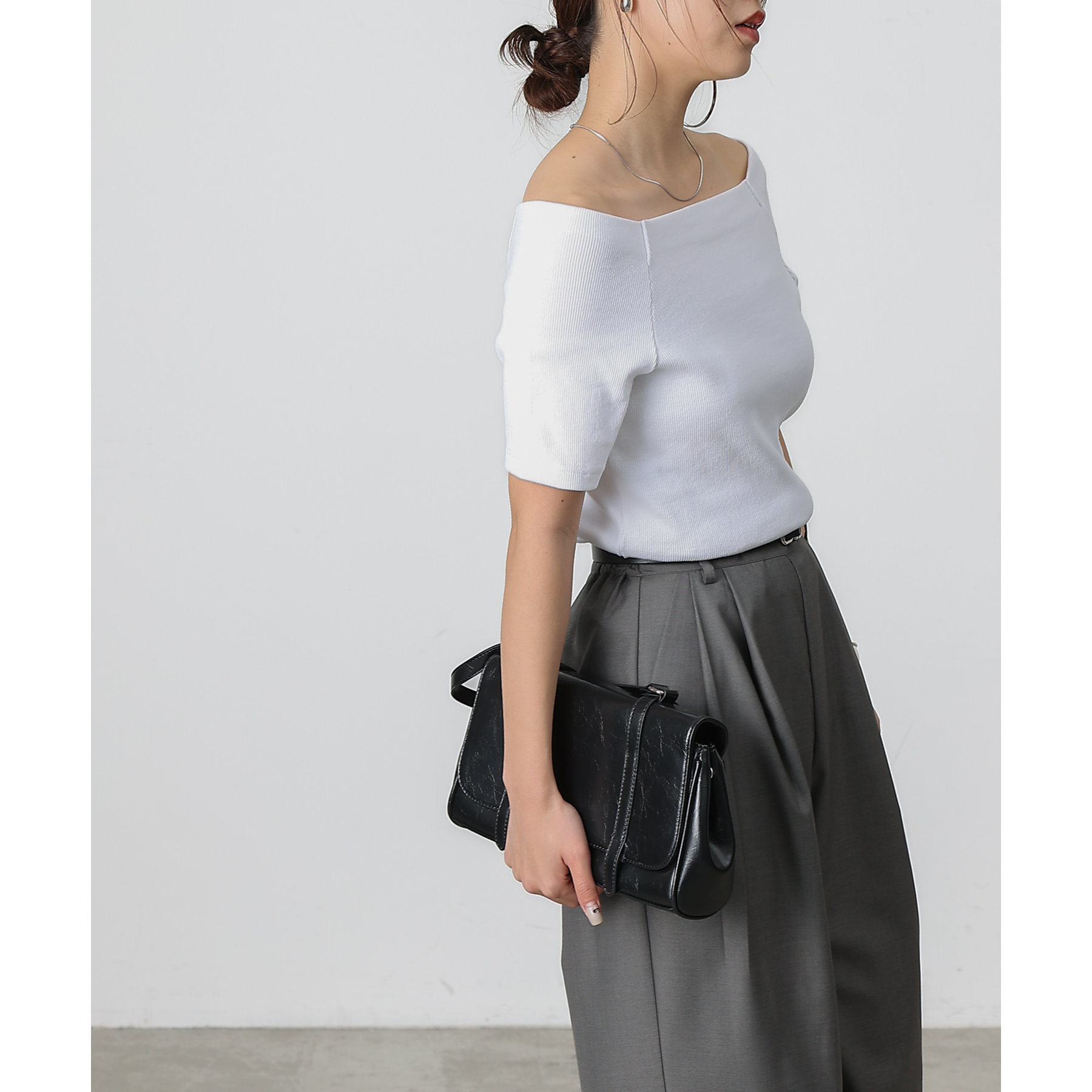 程よい開き具合のスクエアデザインで、小顔効果やデコルテも綺麗に見せてくれます。