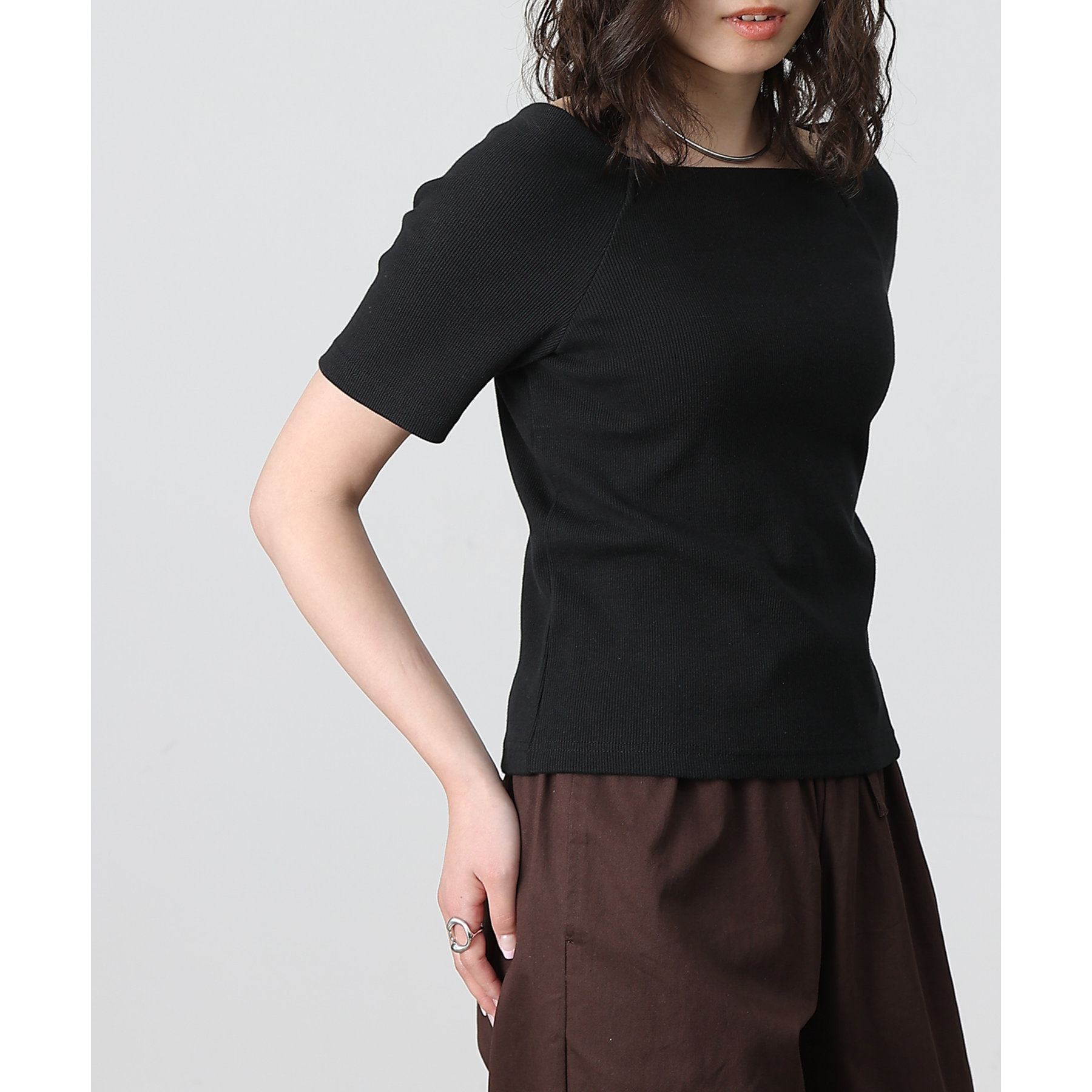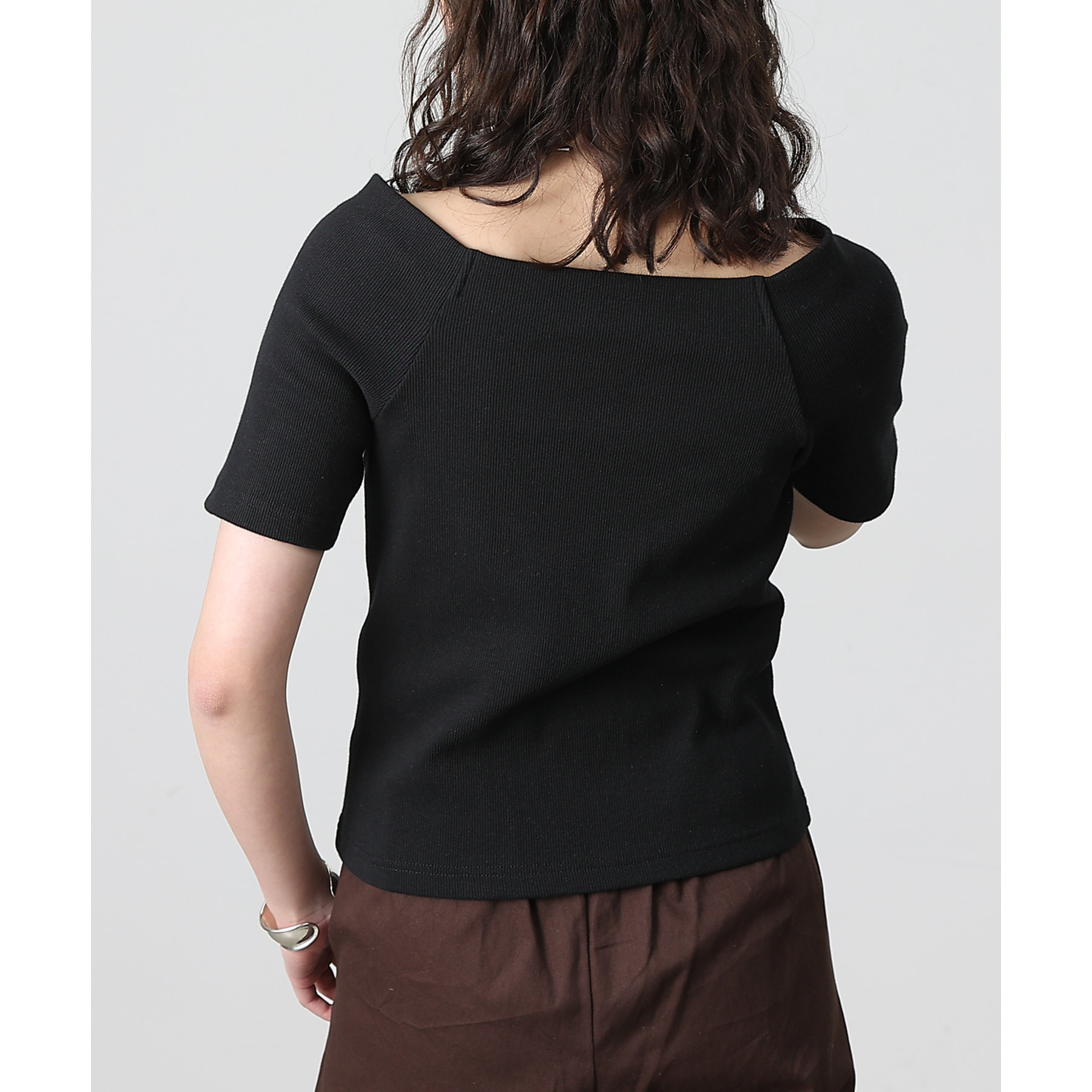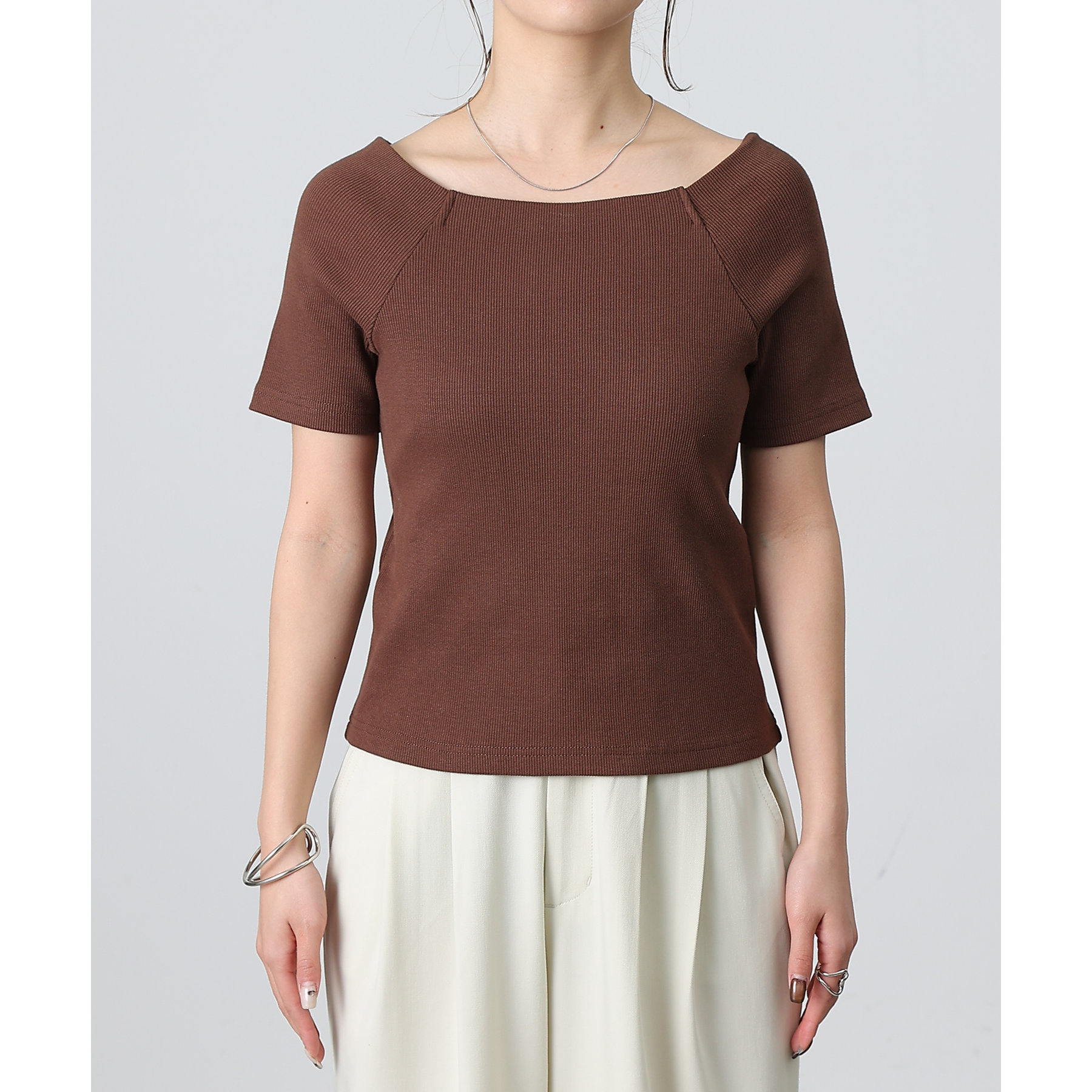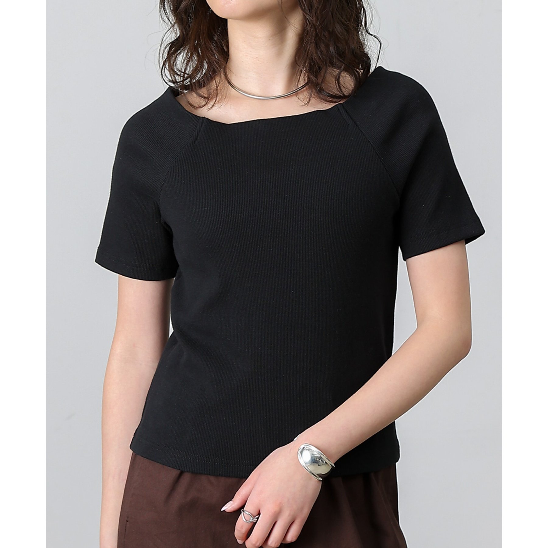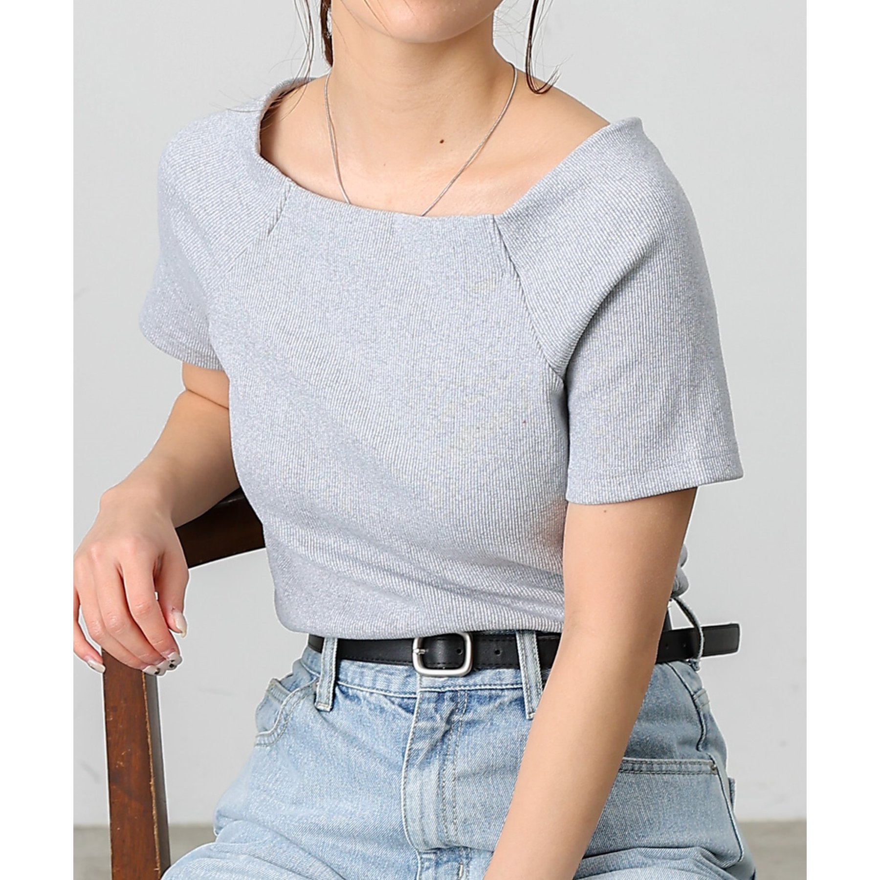 【デコルテが綺麗にみえるリブスクエアラグランプルオーバー】