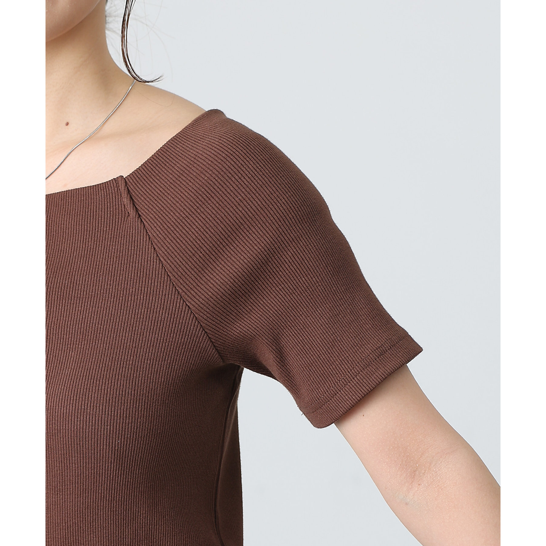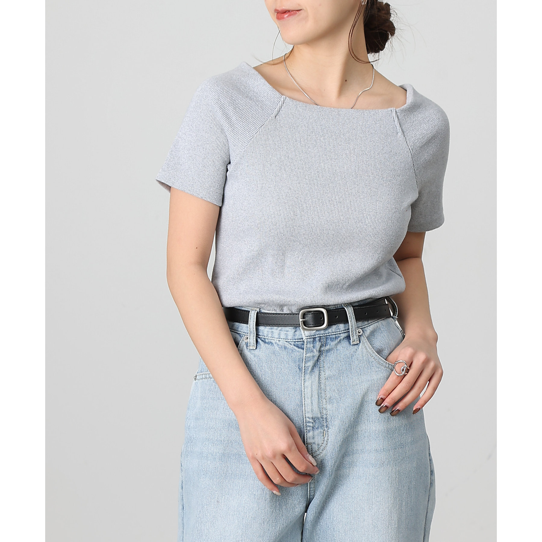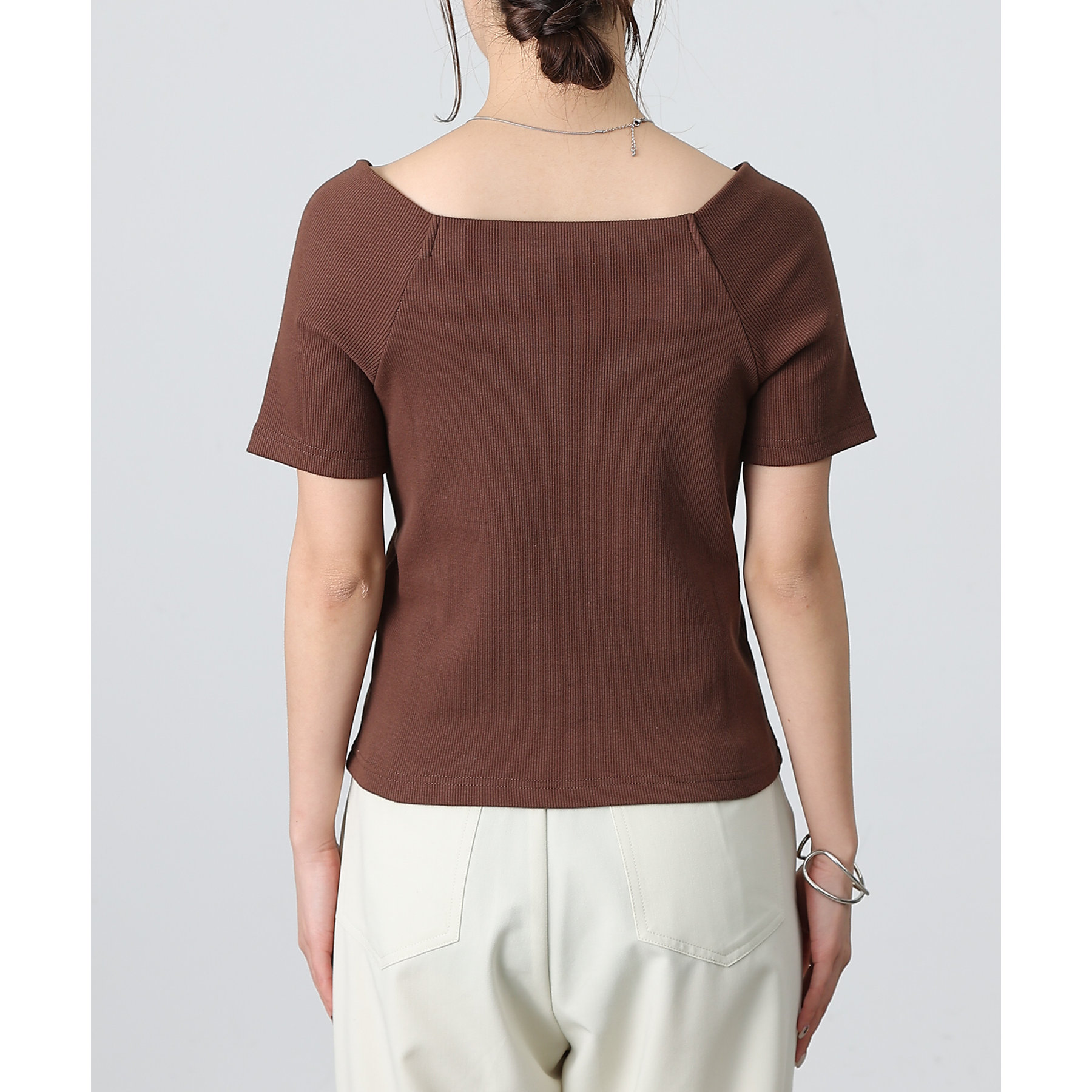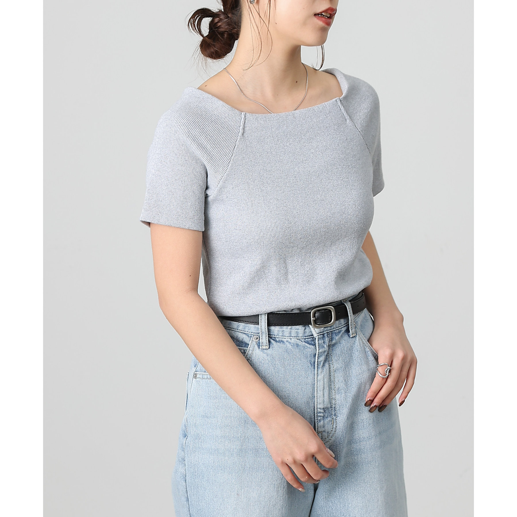 【デコルテが綺麗にみえるリブスクエアラグランプルオーバー】