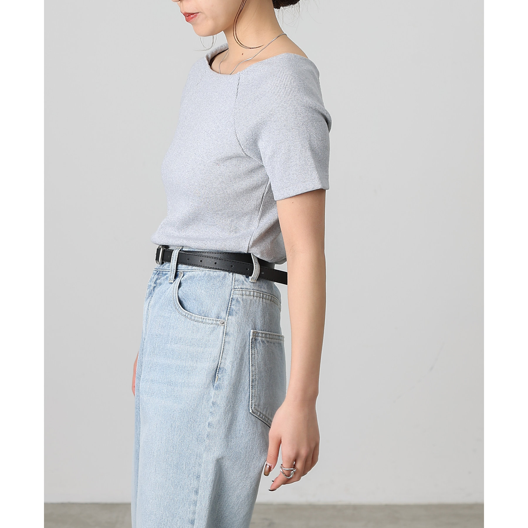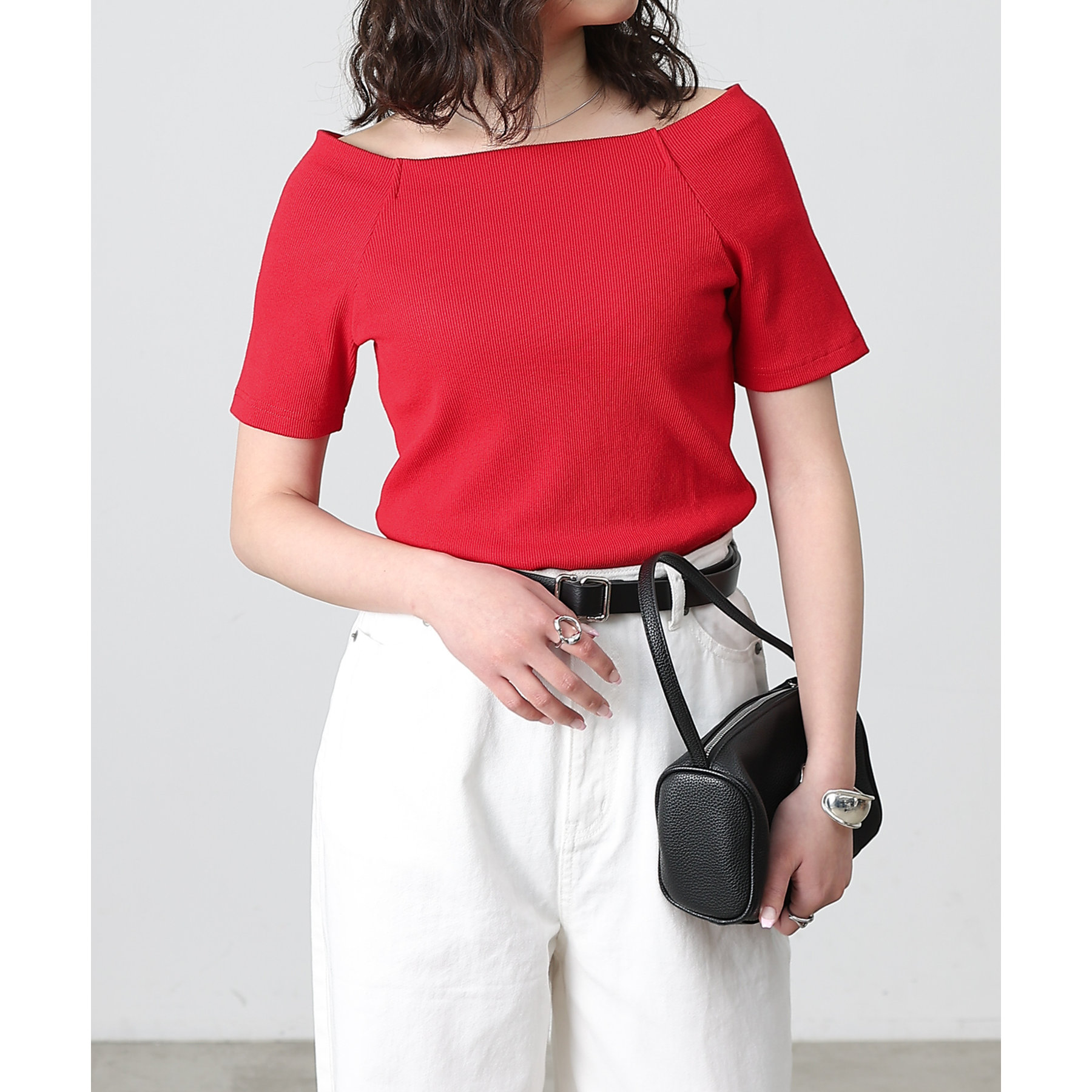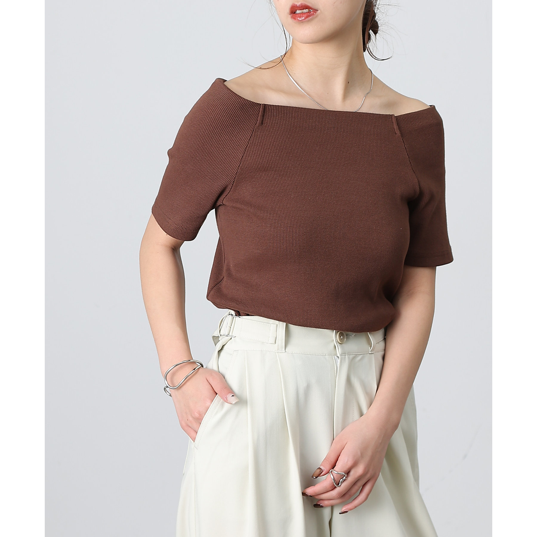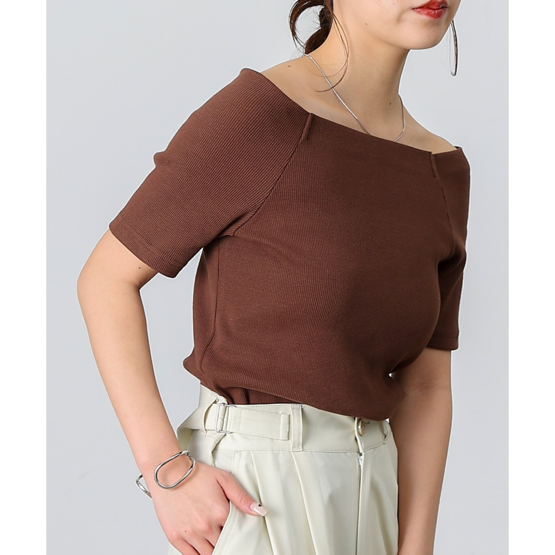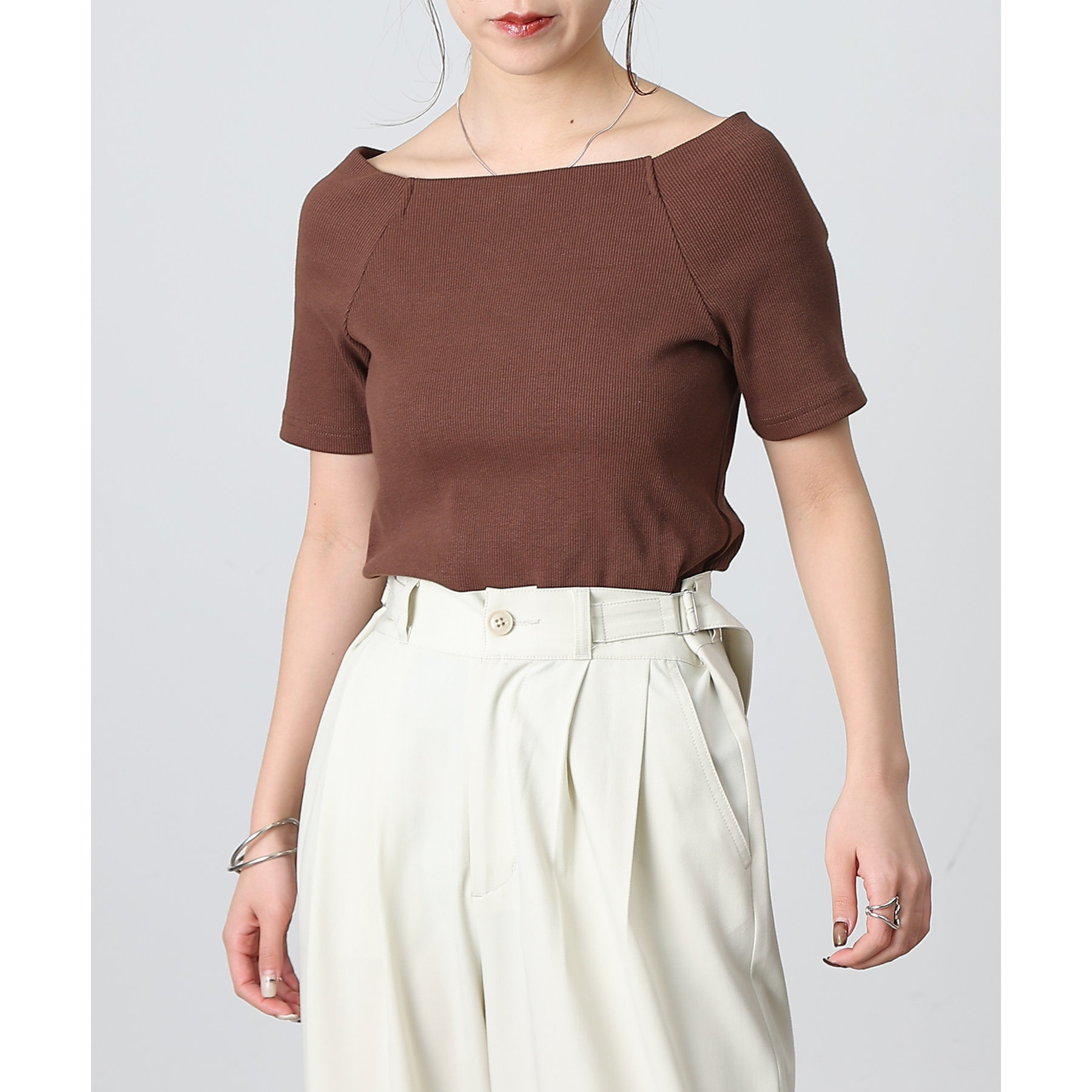 【デコルテが綺麗にみえるリブスクエアラグランプルオーバー】