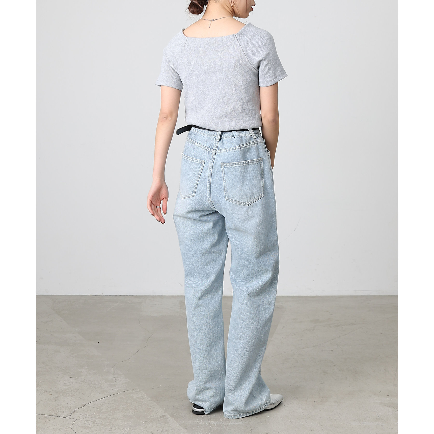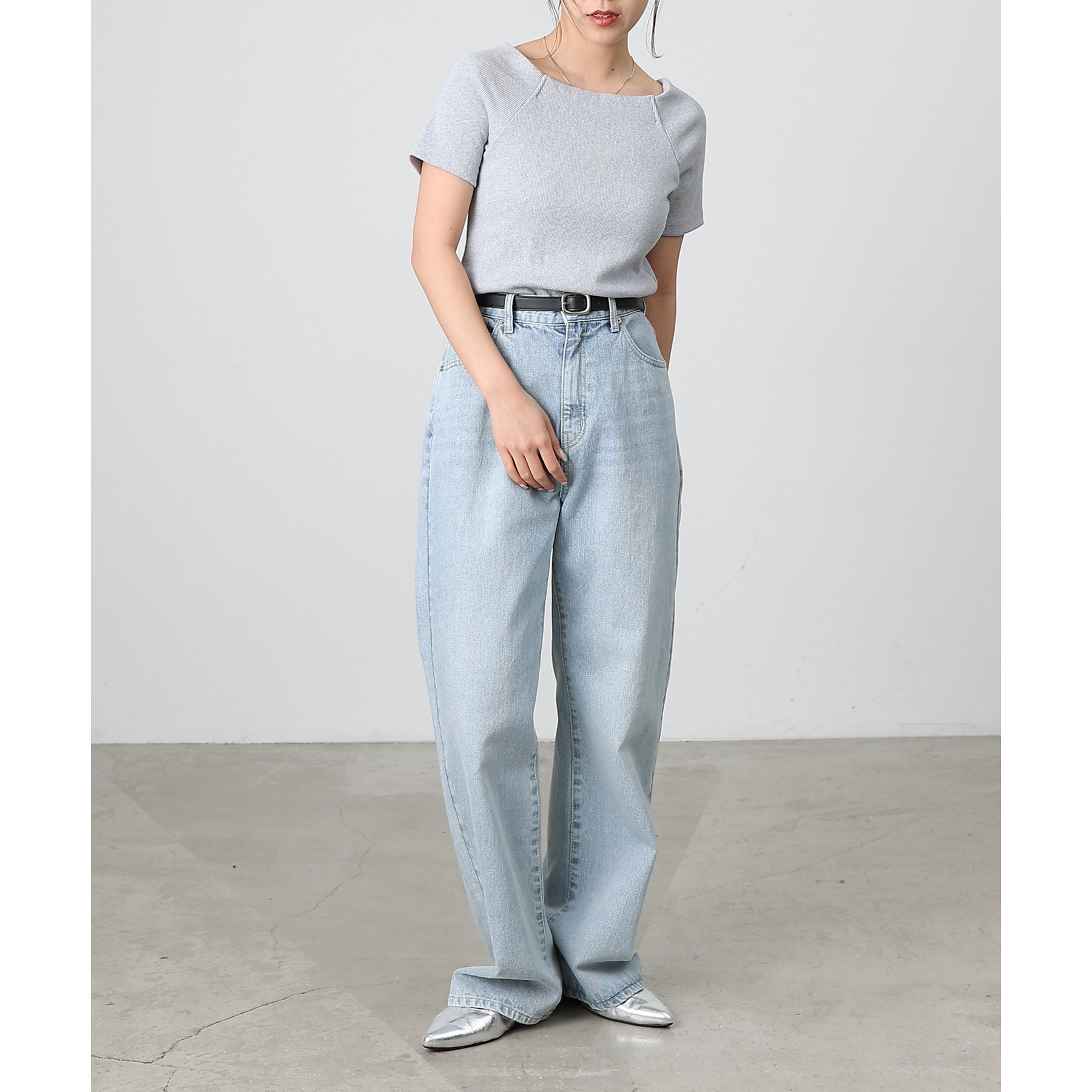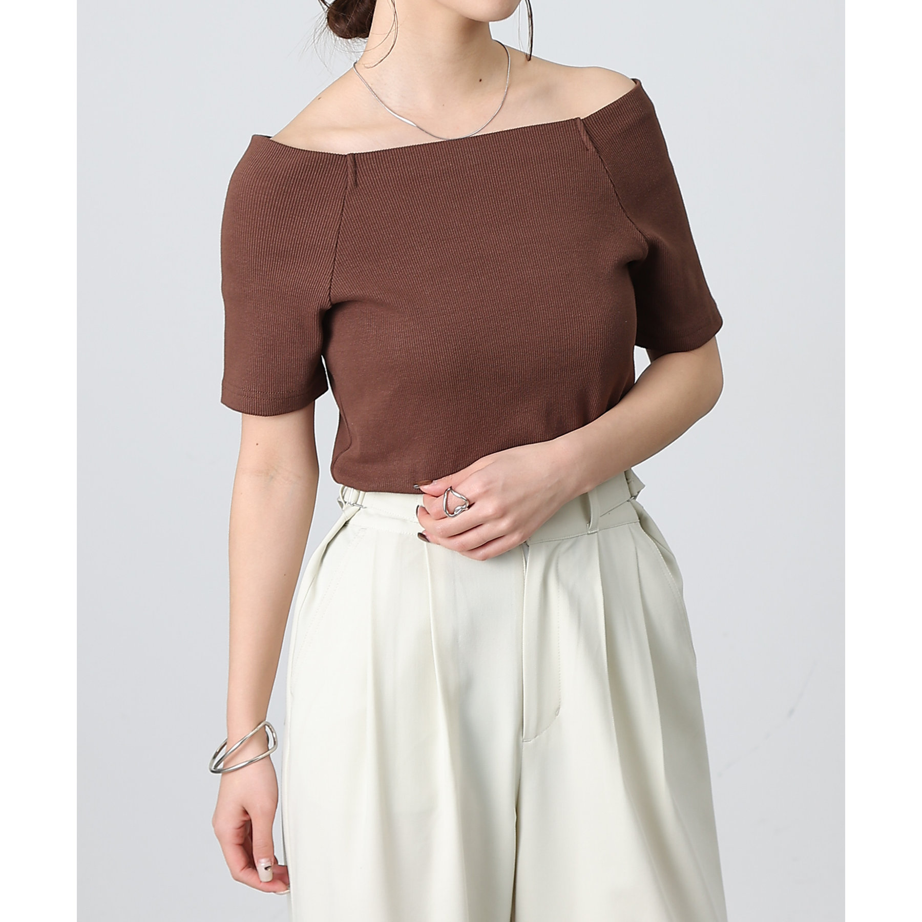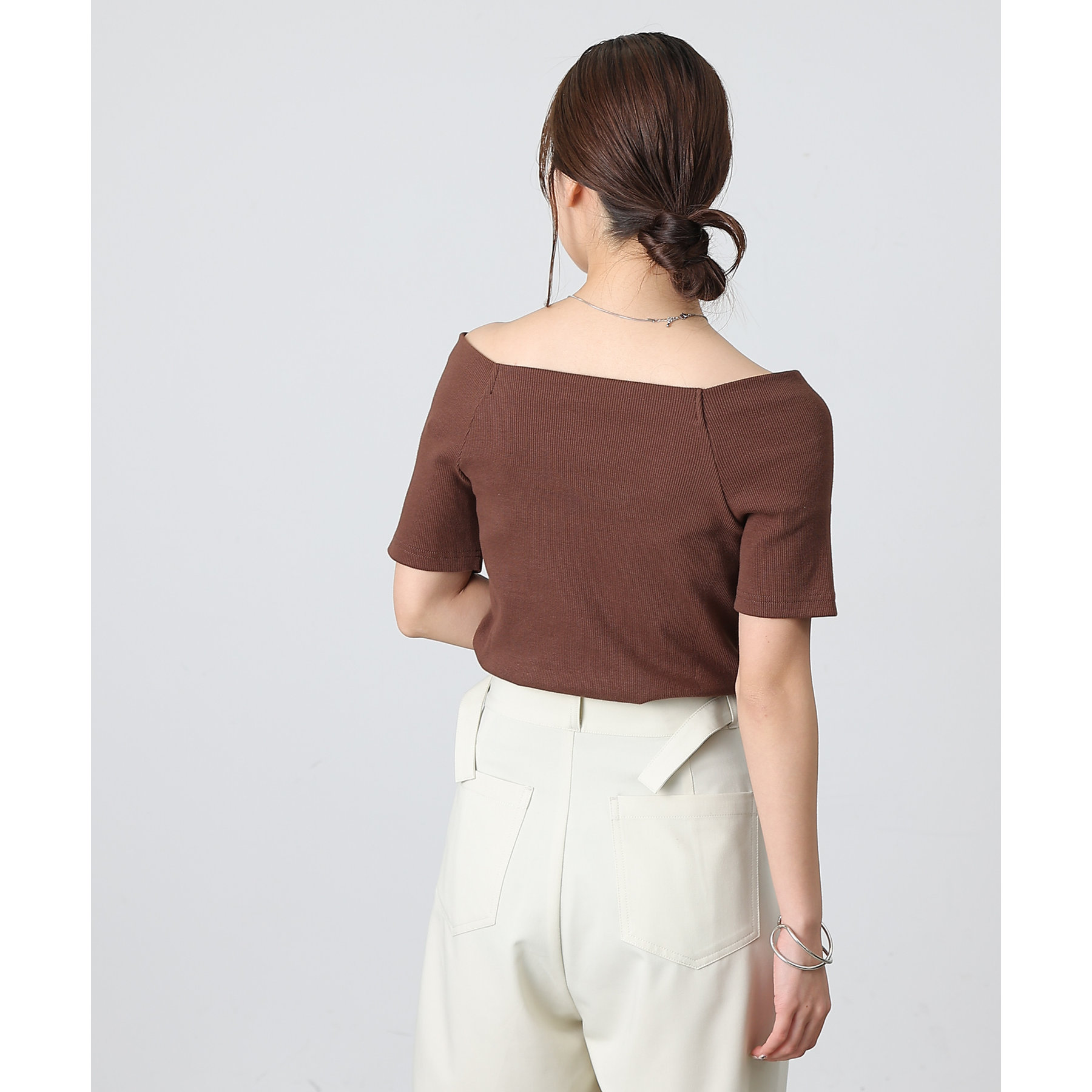 【デコルテが綺麗にみえるリブスクエアラグランプルオーバー】