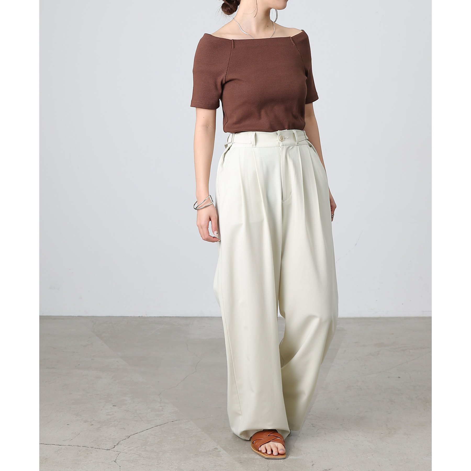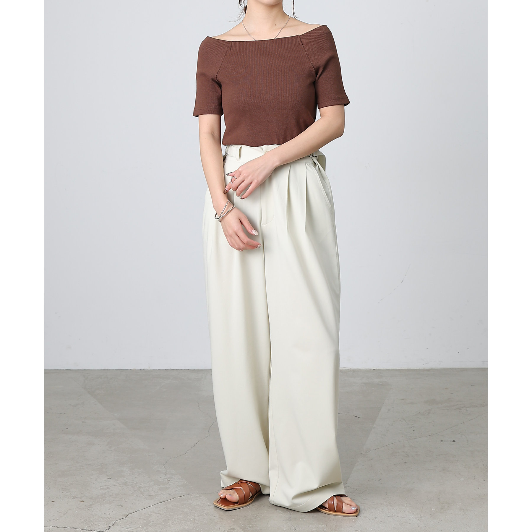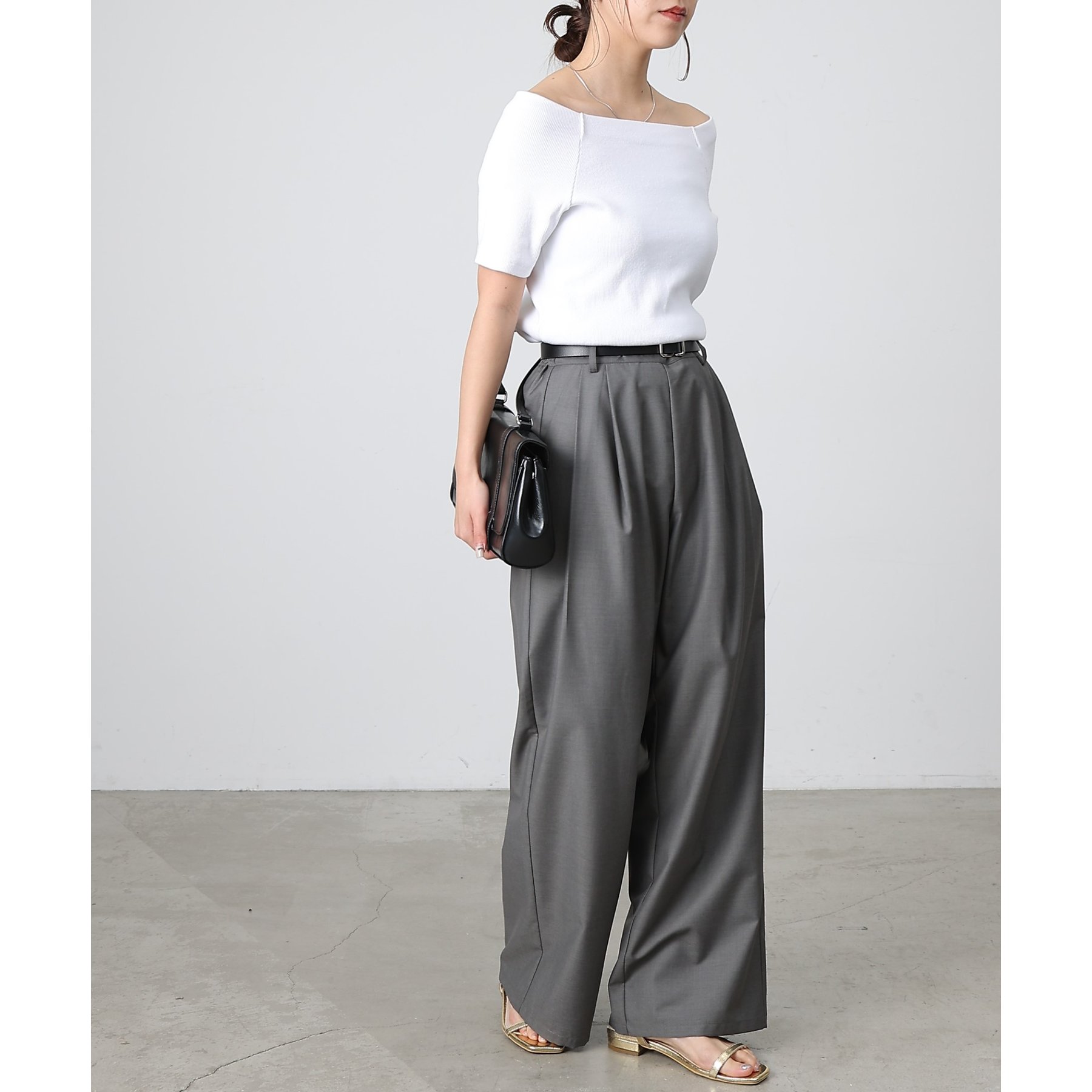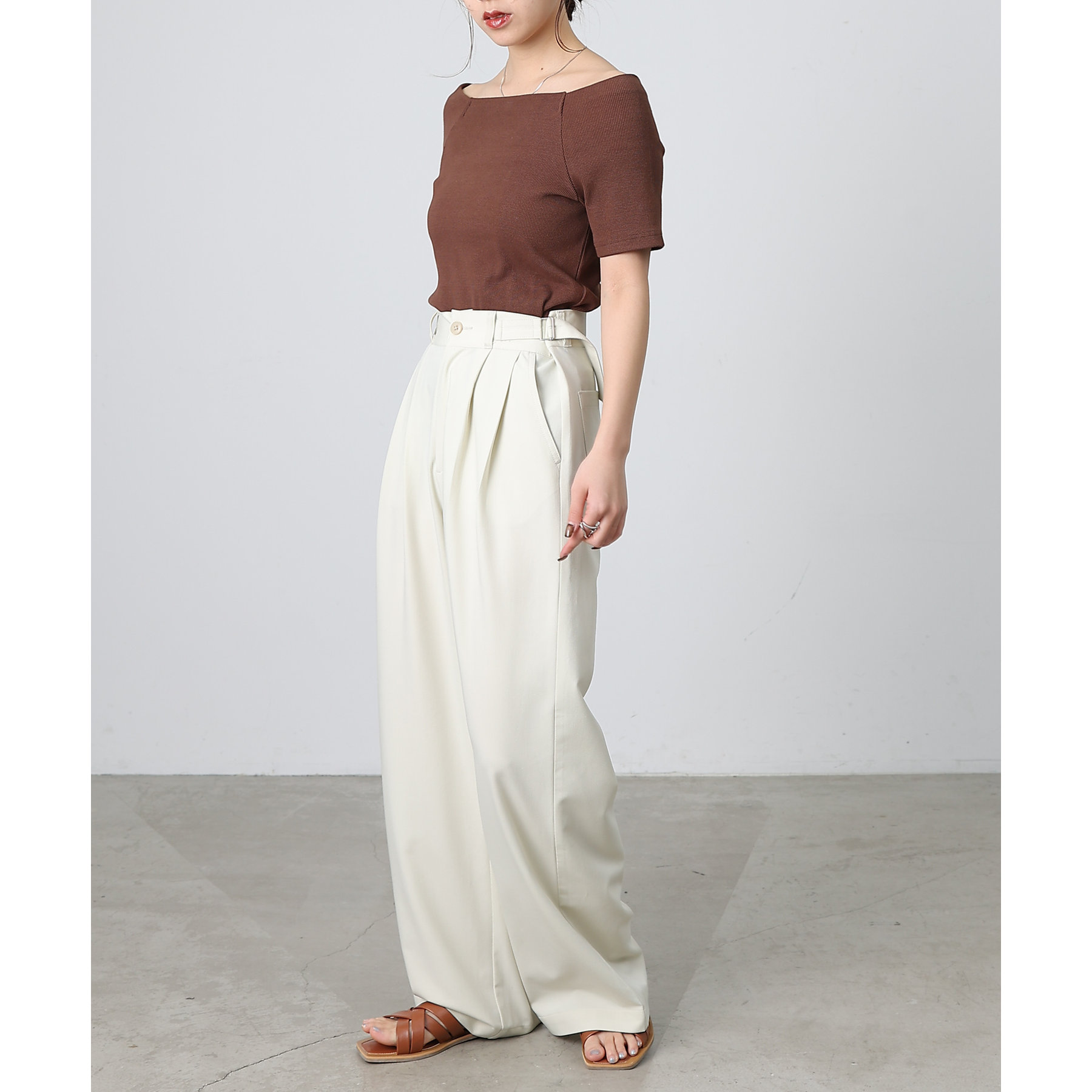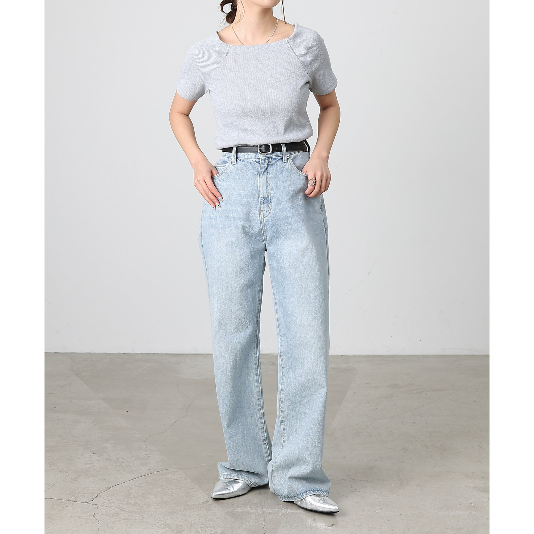 【デコルテが綺麗にみえるリブスクエアラグランプルオーバー】