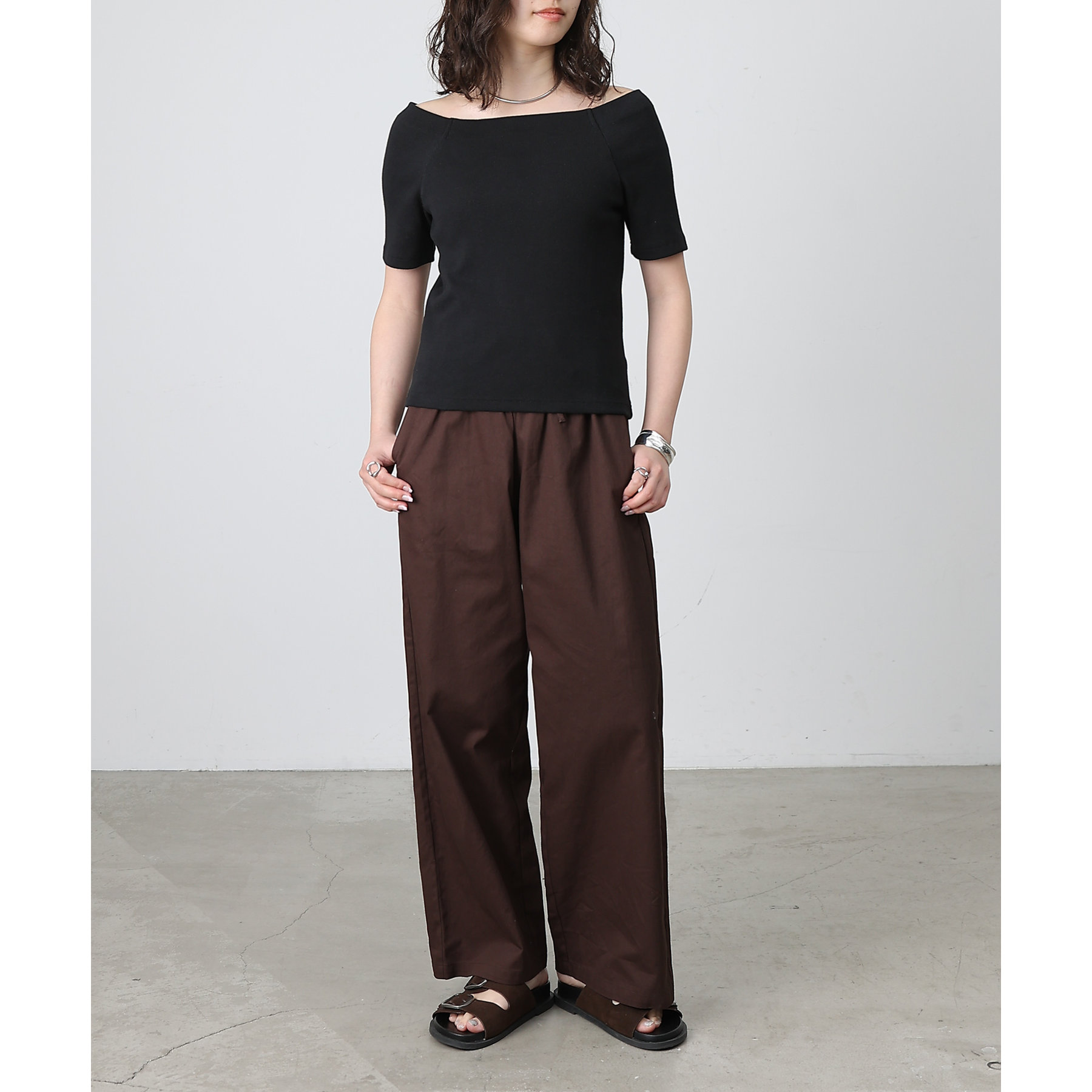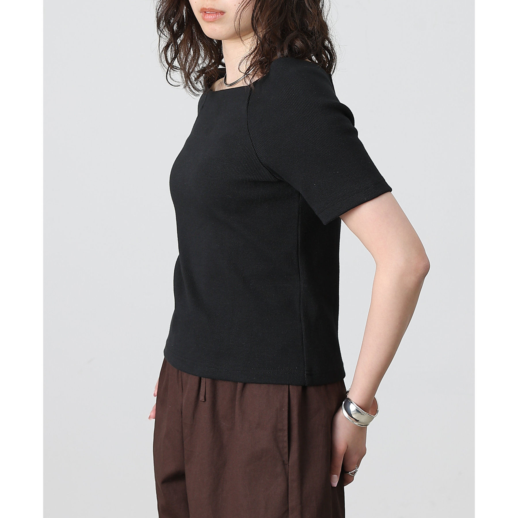 ・CWA1051306A0002 リブプチハイネック5分袖プルオーバー