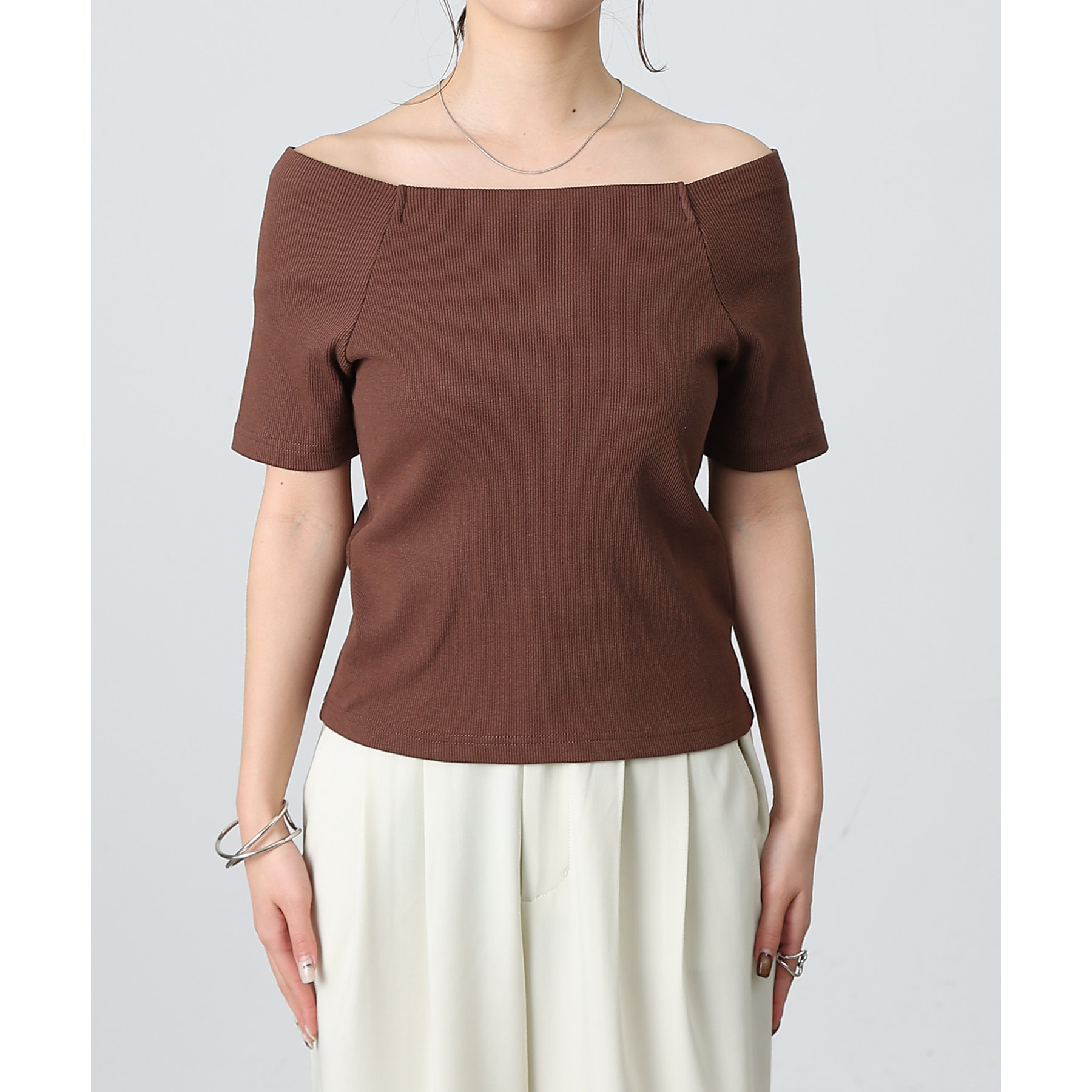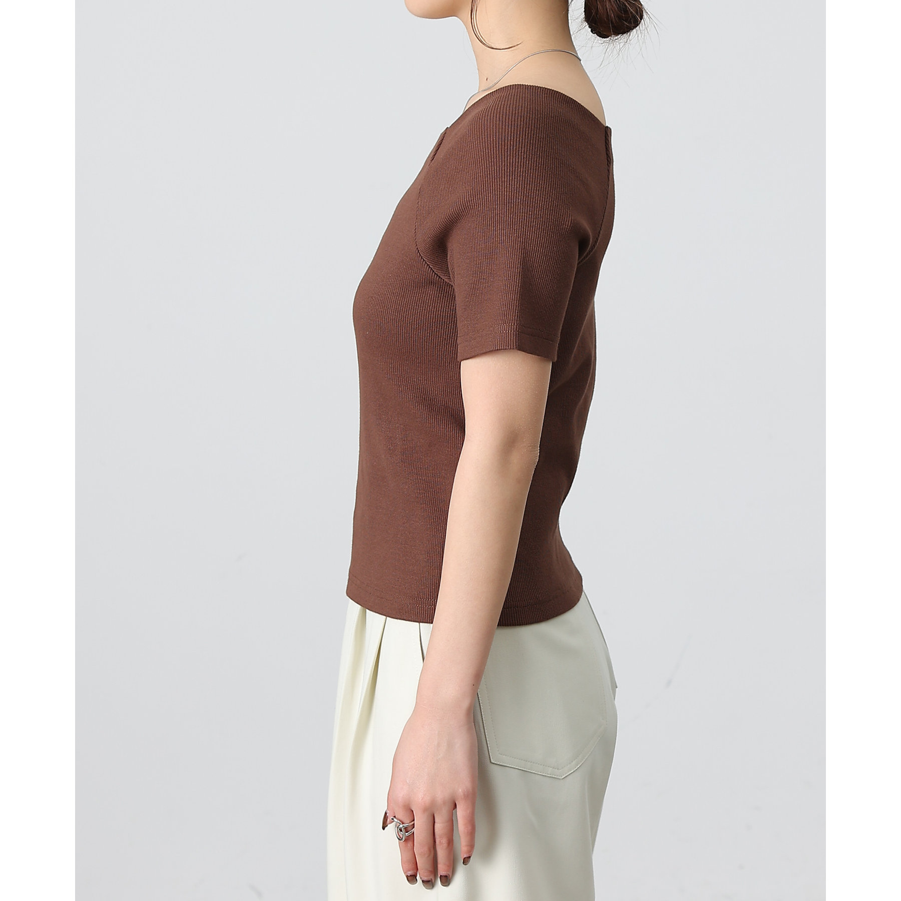 フィット感のあるすっきりとしたシルエットのリブニット。