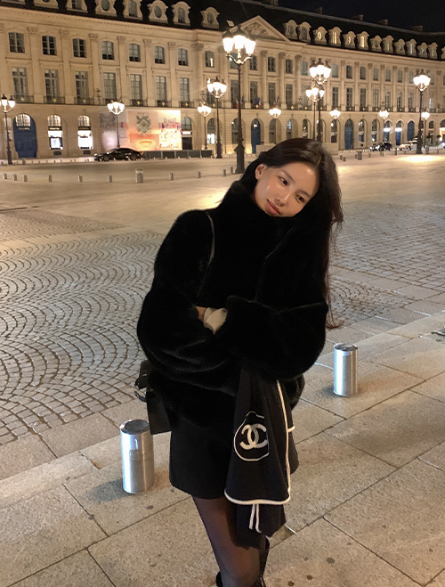 [made] Enive Airy Feminine High Neck Fur Jacket