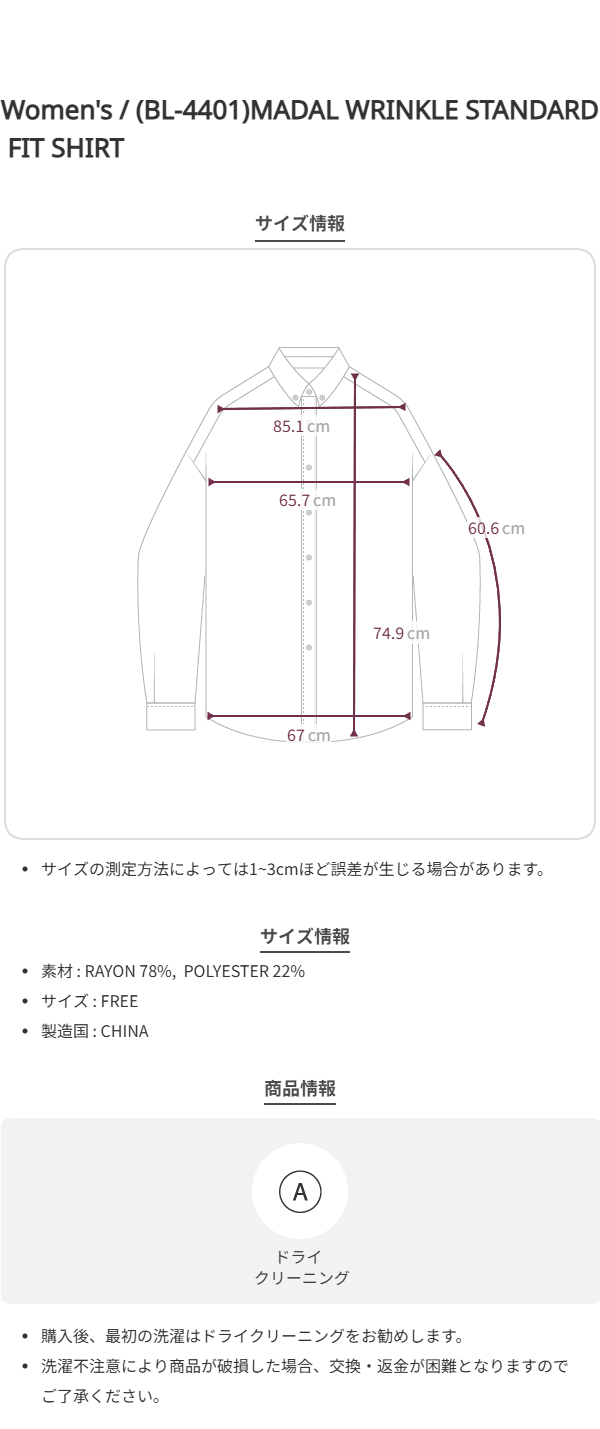 (BL-4401)MADAL WRINKLE STANDARD FIT SHIRT