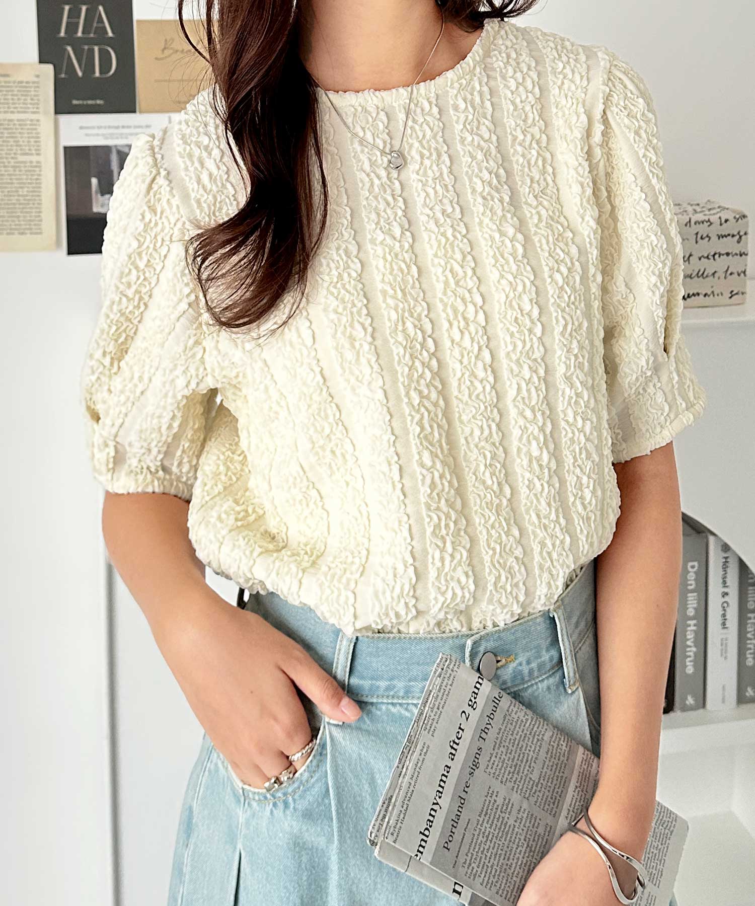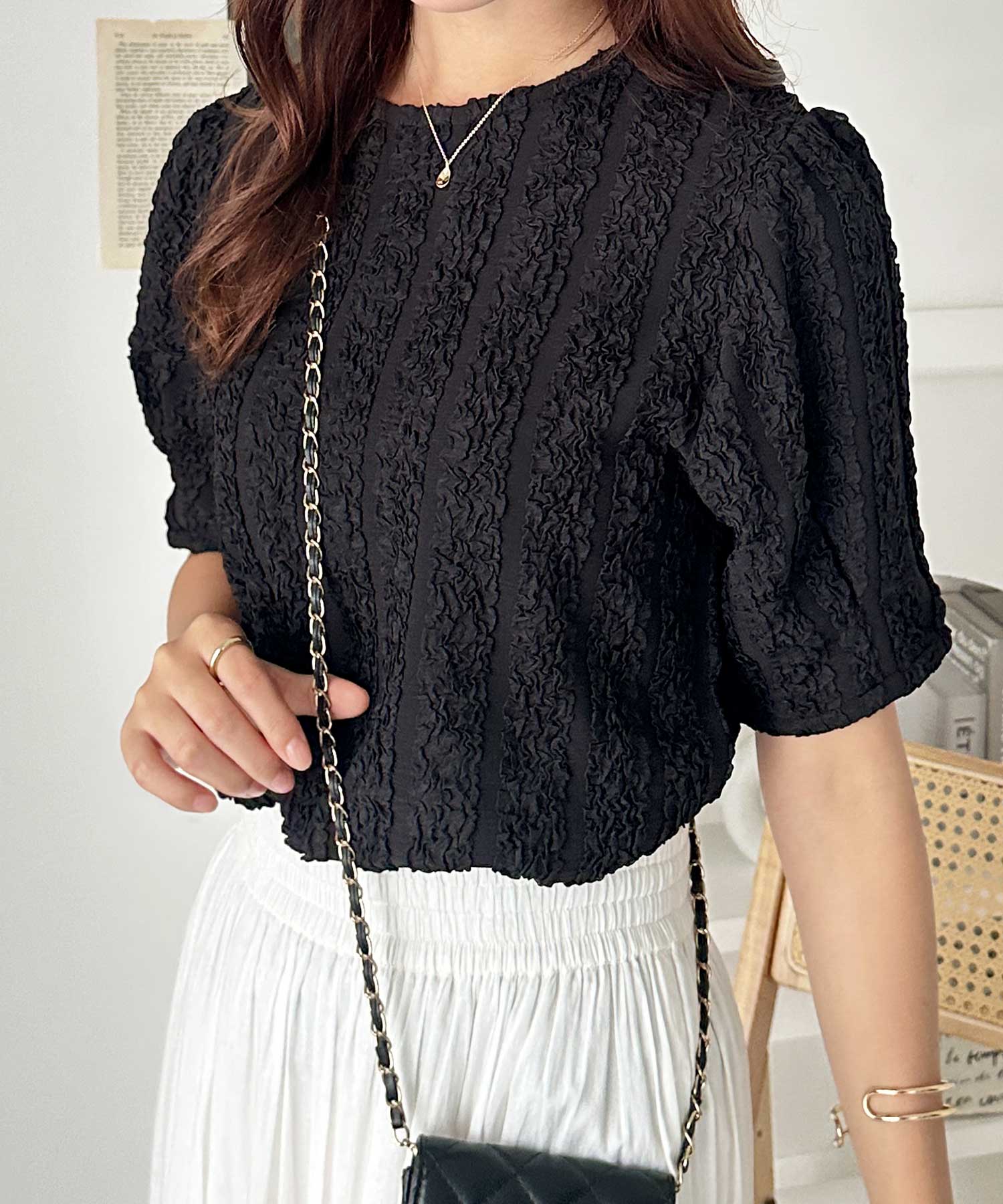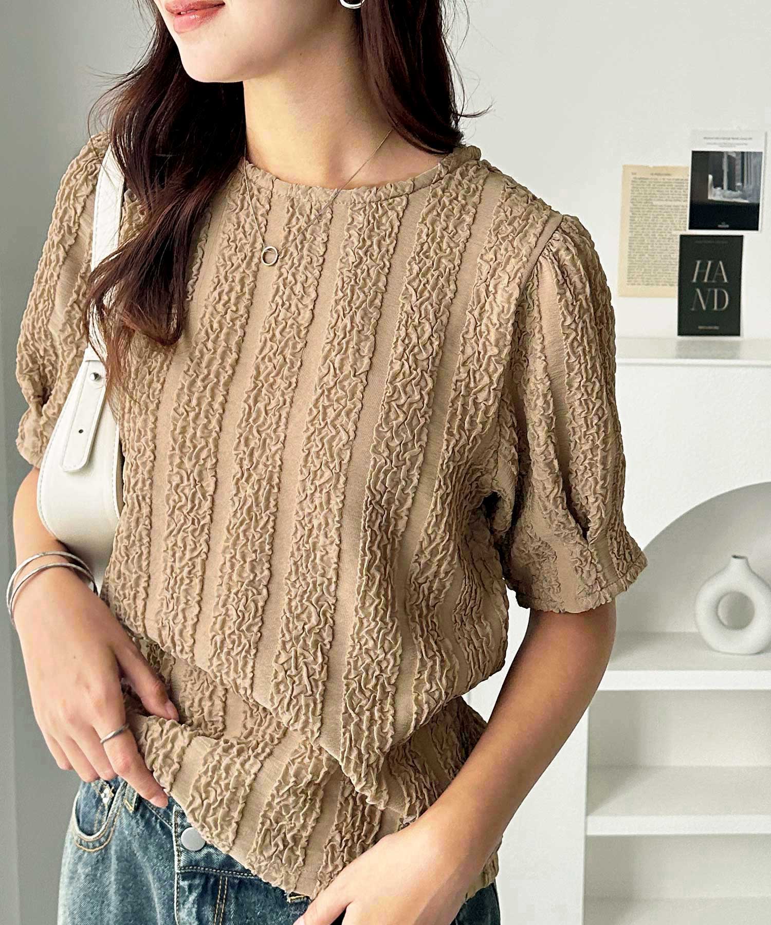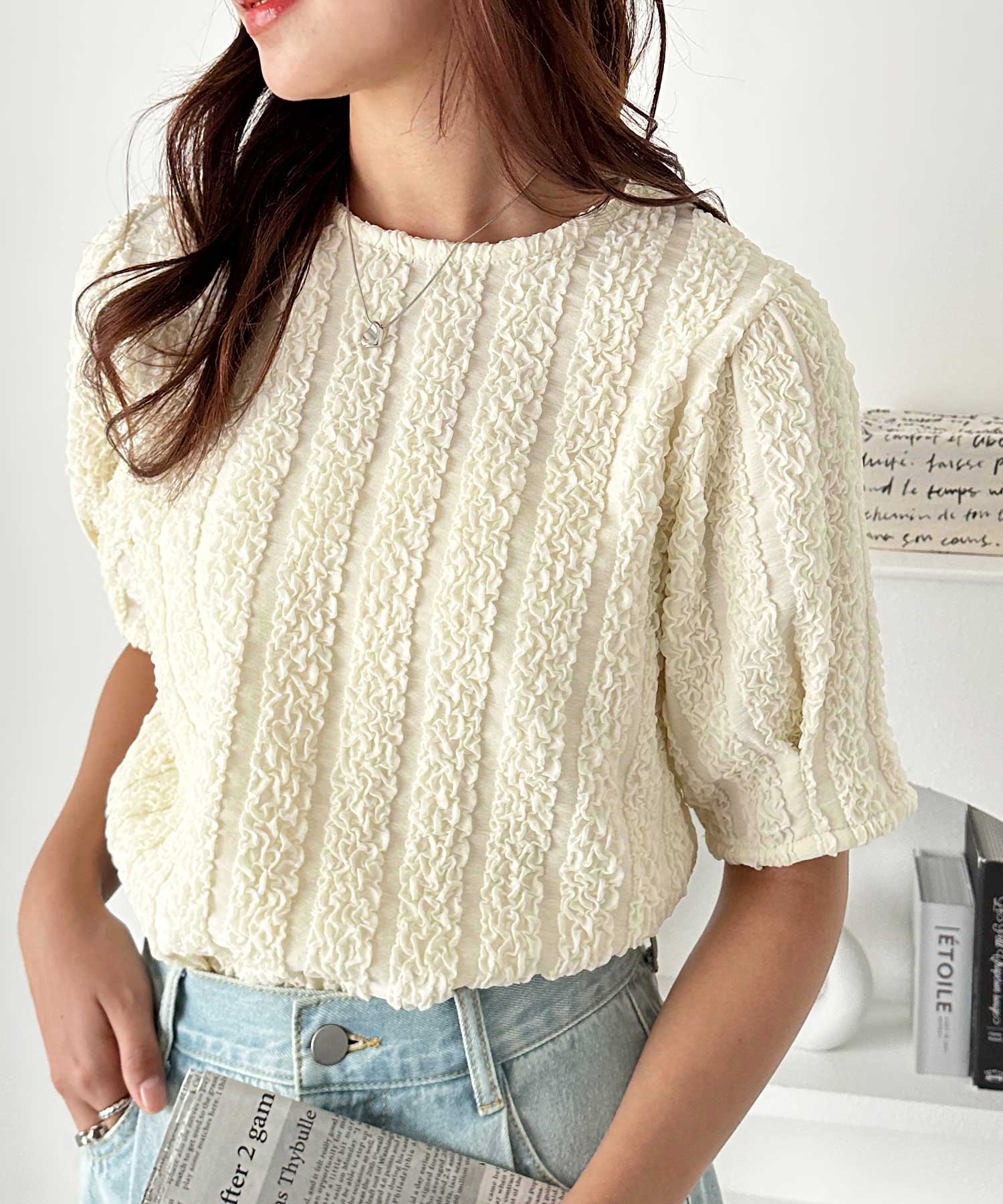 5分袖ボリュームジャガードトップス