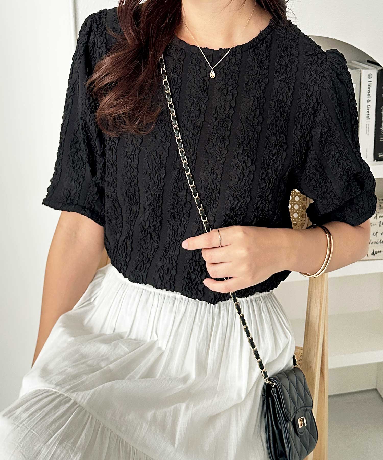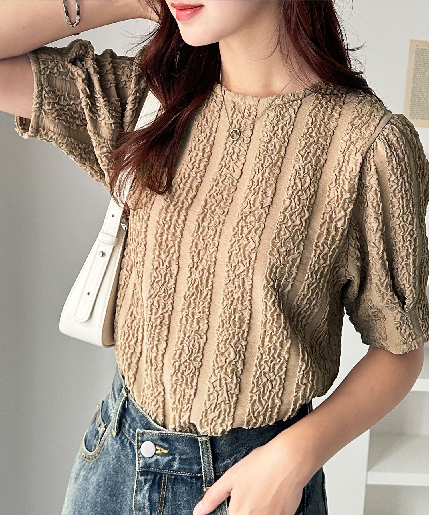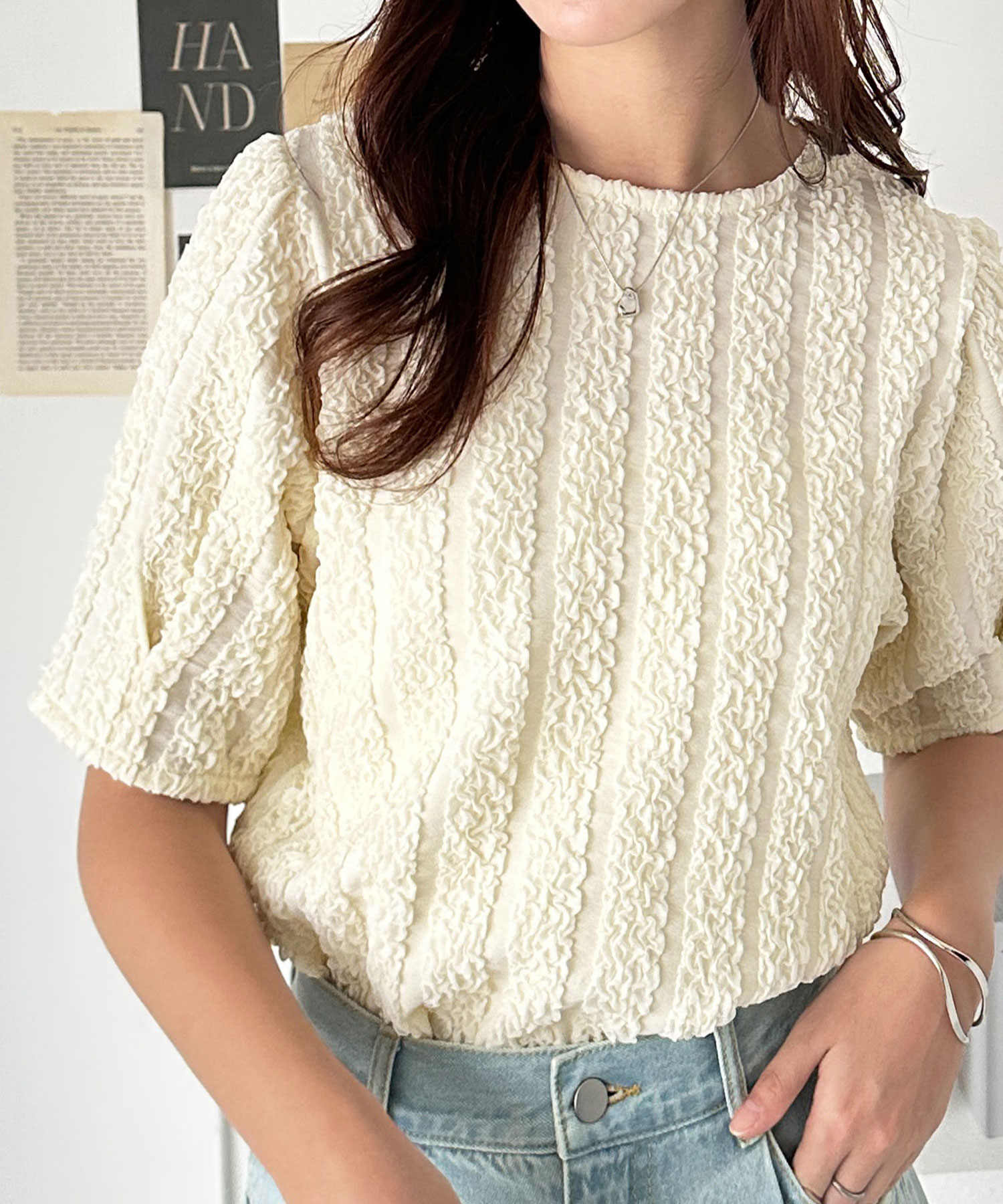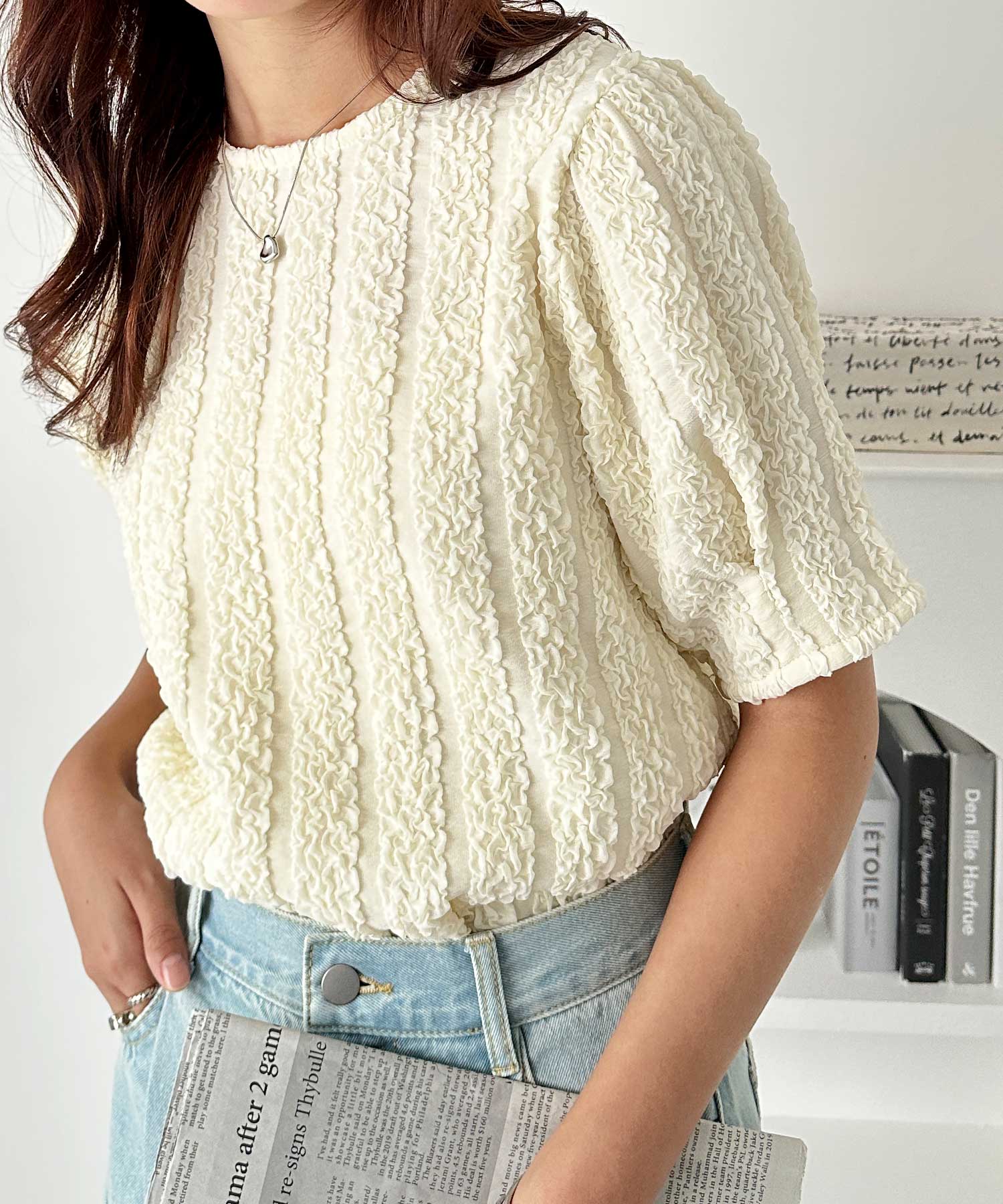 5分袖ボリュームジャガードトップス