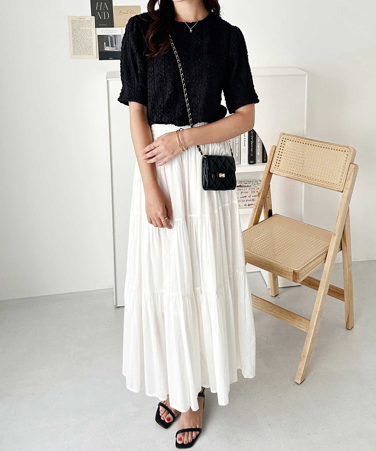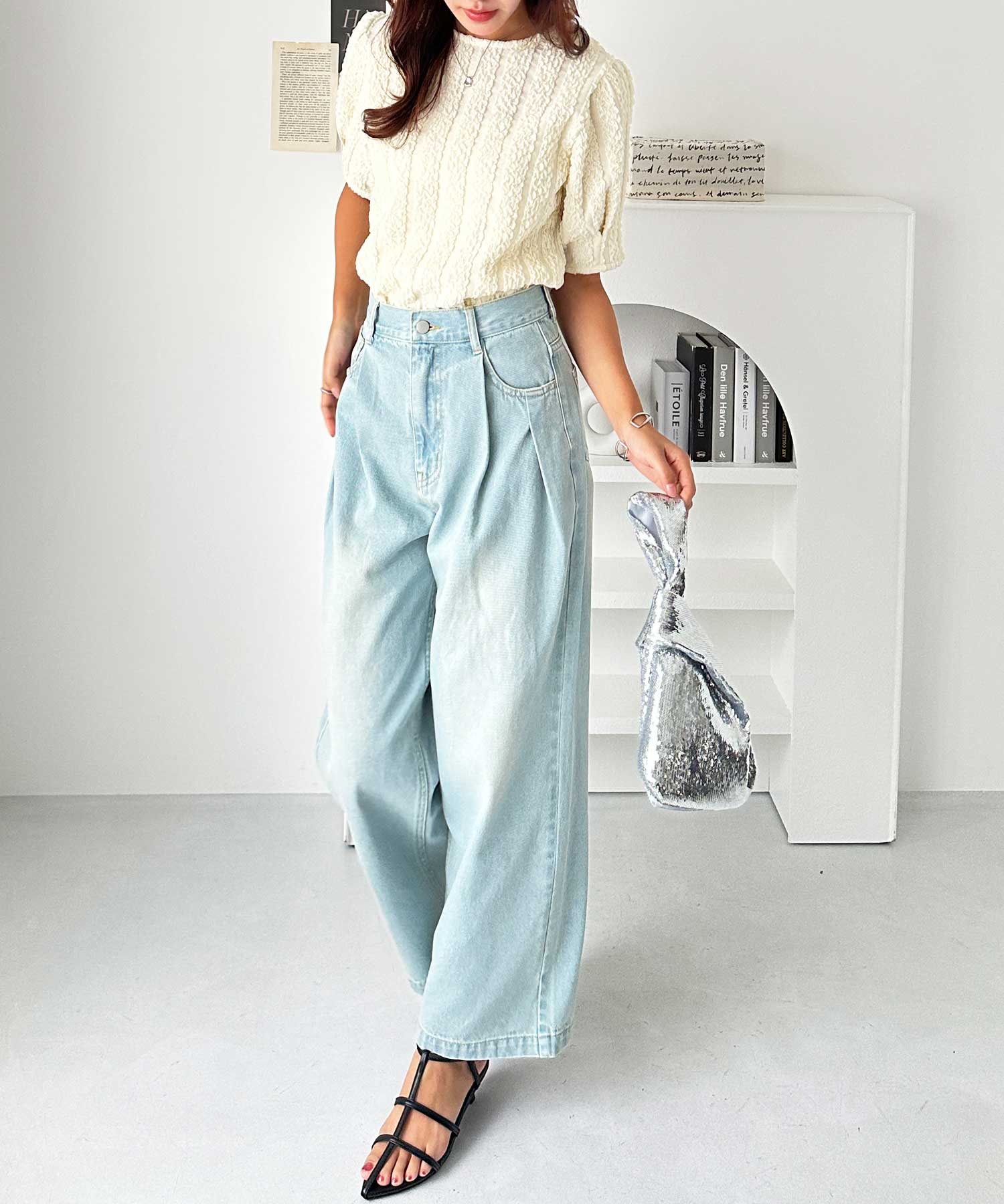 1枚で目を惹くデザインなので、シンプルなボトムと合わせがおすすめです。
