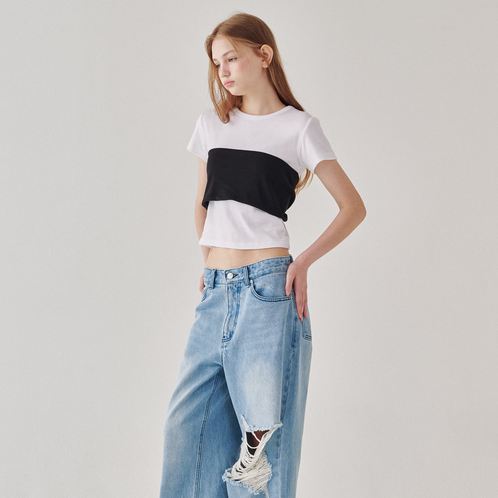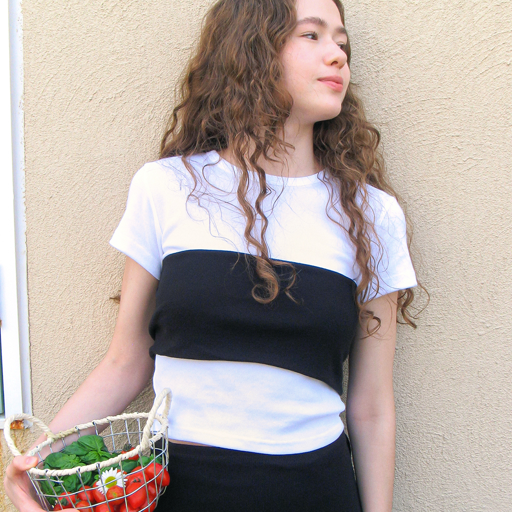 KNOT BUSTIER 2 WAY SHORT SLEEVE T SHIRT WHITE BLACK