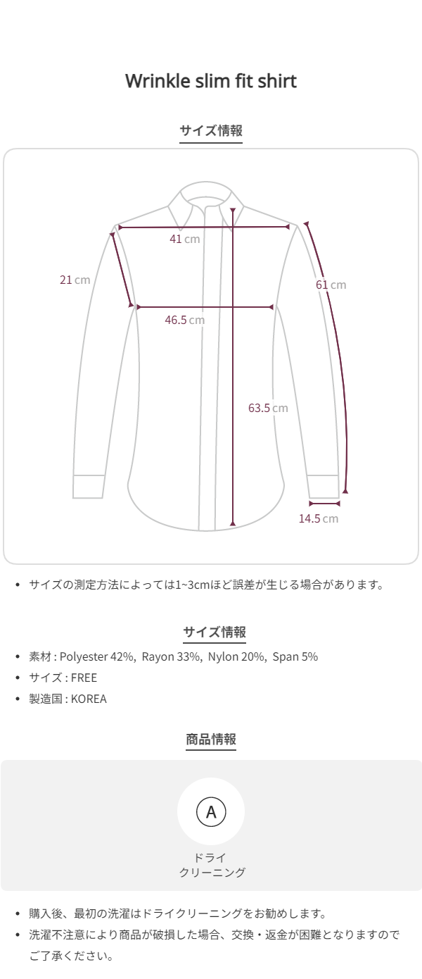 Wrinkle slim fit shirt_3colors