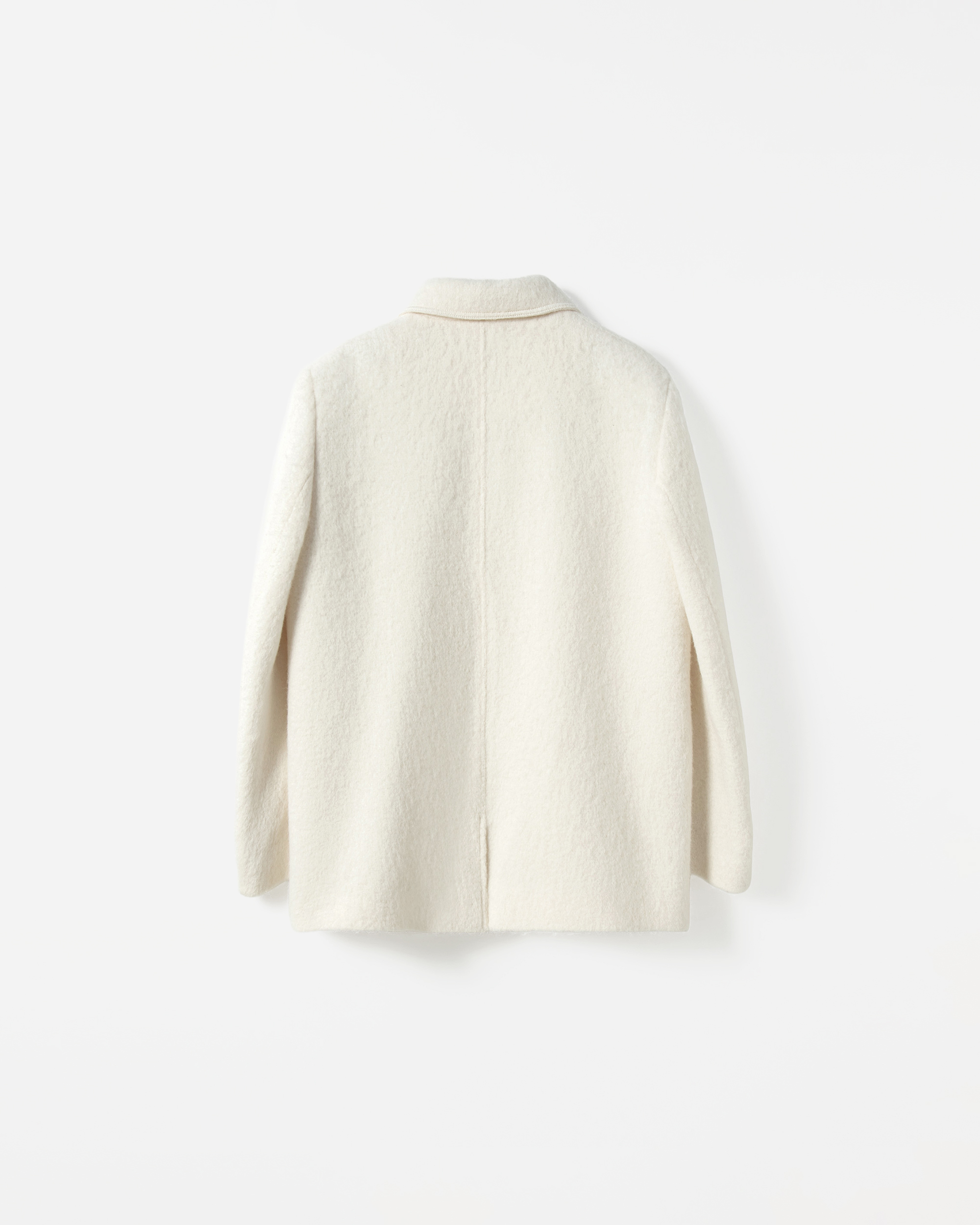 アルパカ素材特有のナチュラルなヘア感をそのまま活かすため、シンプルなシルエットで仕上げ、内側には総裏地を施して快適な着心地を実現しました。