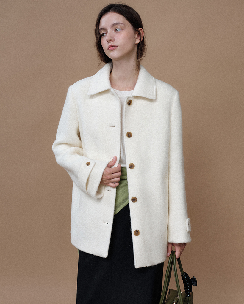 柔らかなアルパカウールのふんわりとしたタッチ感と暖かさがしっかりと感じられる Valentin Wool Half Coat(ヴァランタンウールハーフコート)です。