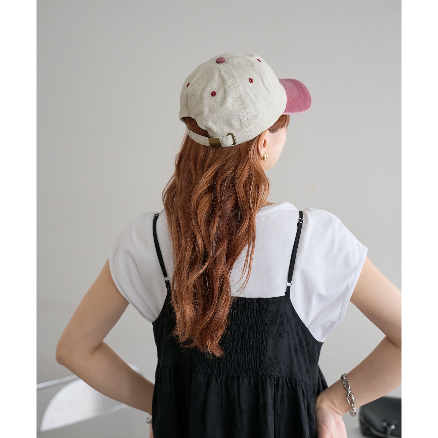 ヴィンテージライクな風合いが魅力のスーベニアキャップ。フロントのロゴ刺繍や配色デザインが、スタイリングに程よいアクセントをプラスします。また、シンプルコーデの差し色にもぴったり♪ユニセックスで使えるデザインで、デイリーコーデはもちろんアウトドアにも◎後ろのアジャスターでサイズ調整も可能です。
