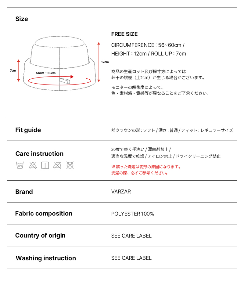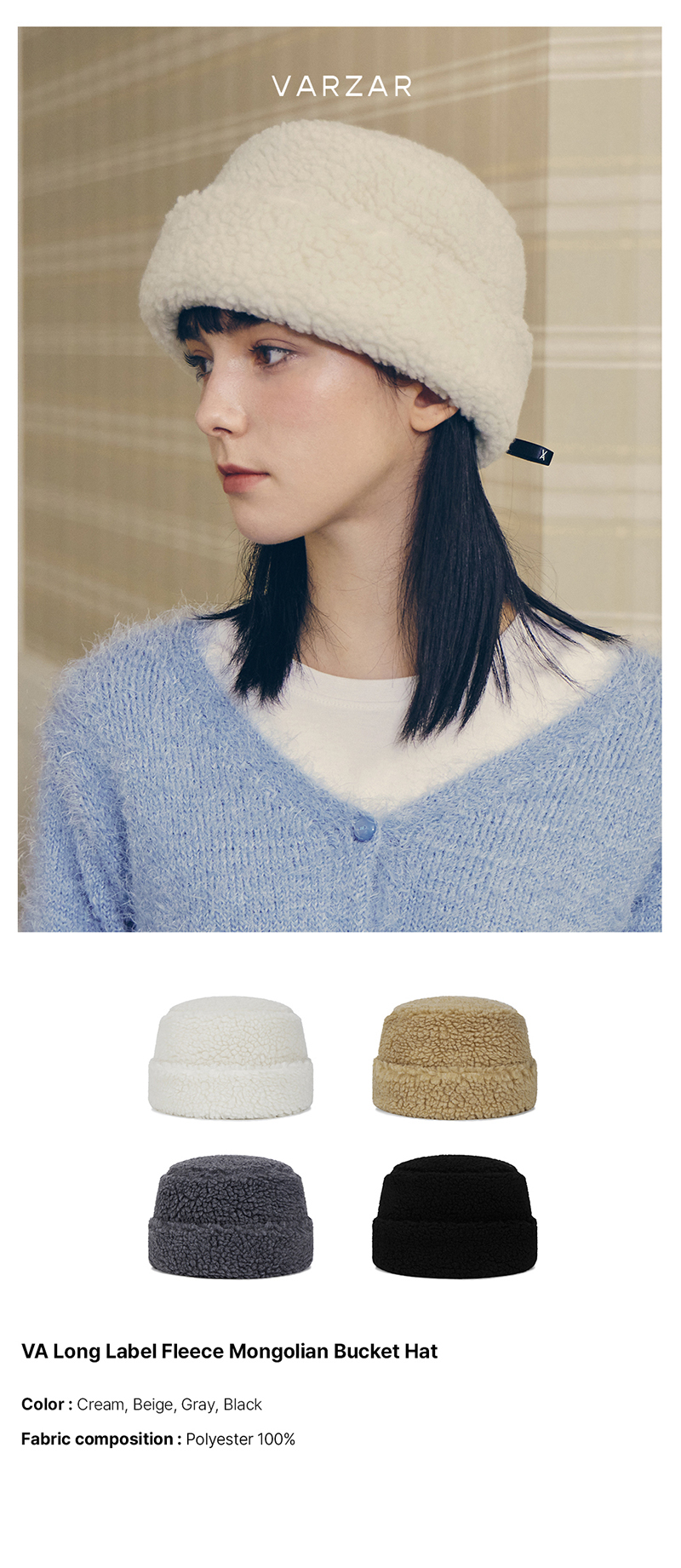 VA Long Label Fleece Mongolian Bucket Hat Cream