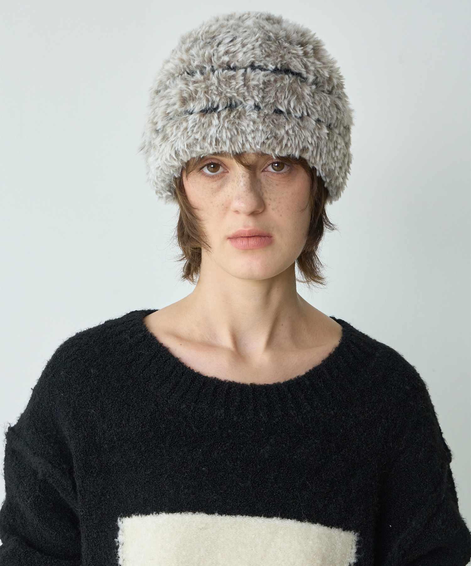 Mix Fur Beanie [Brown]