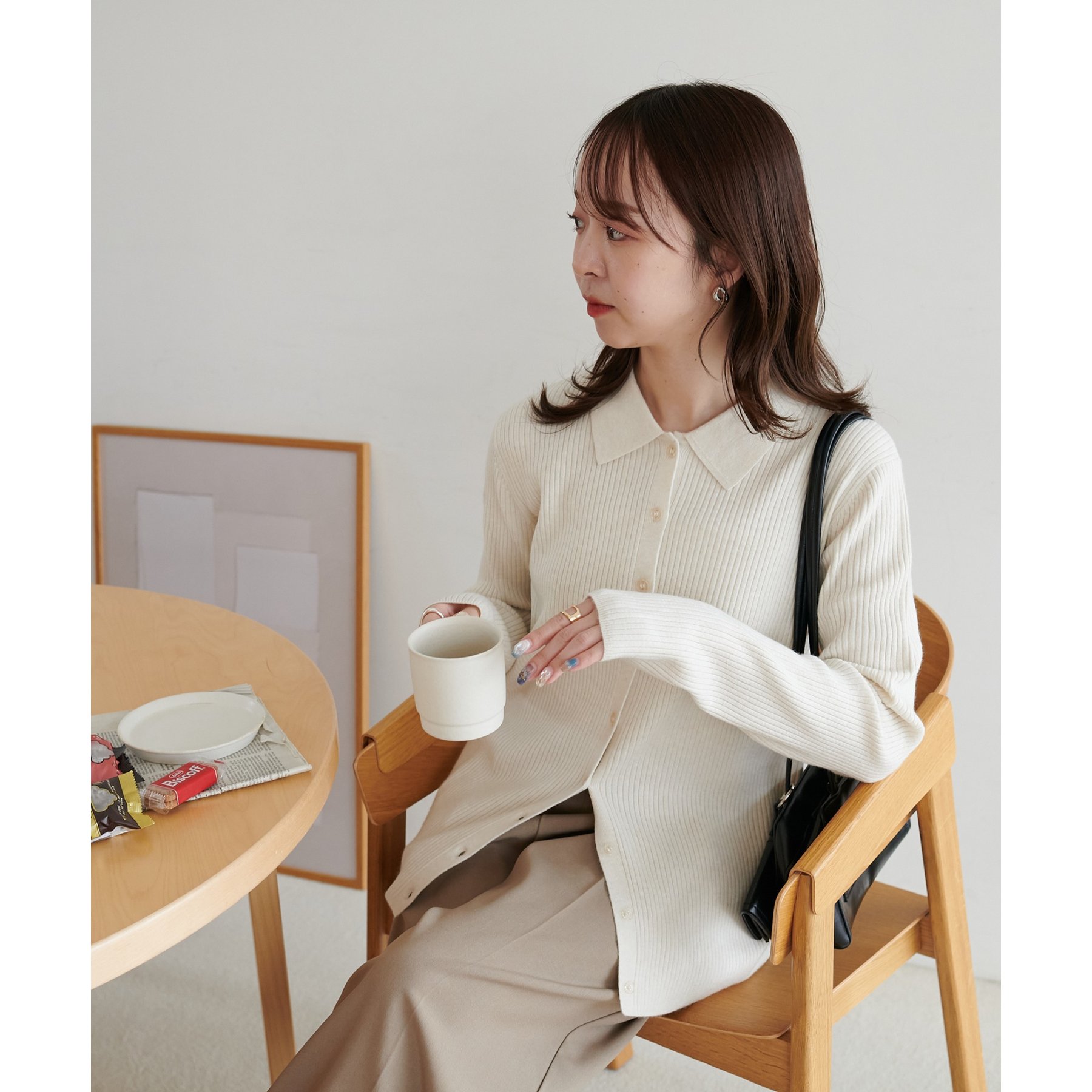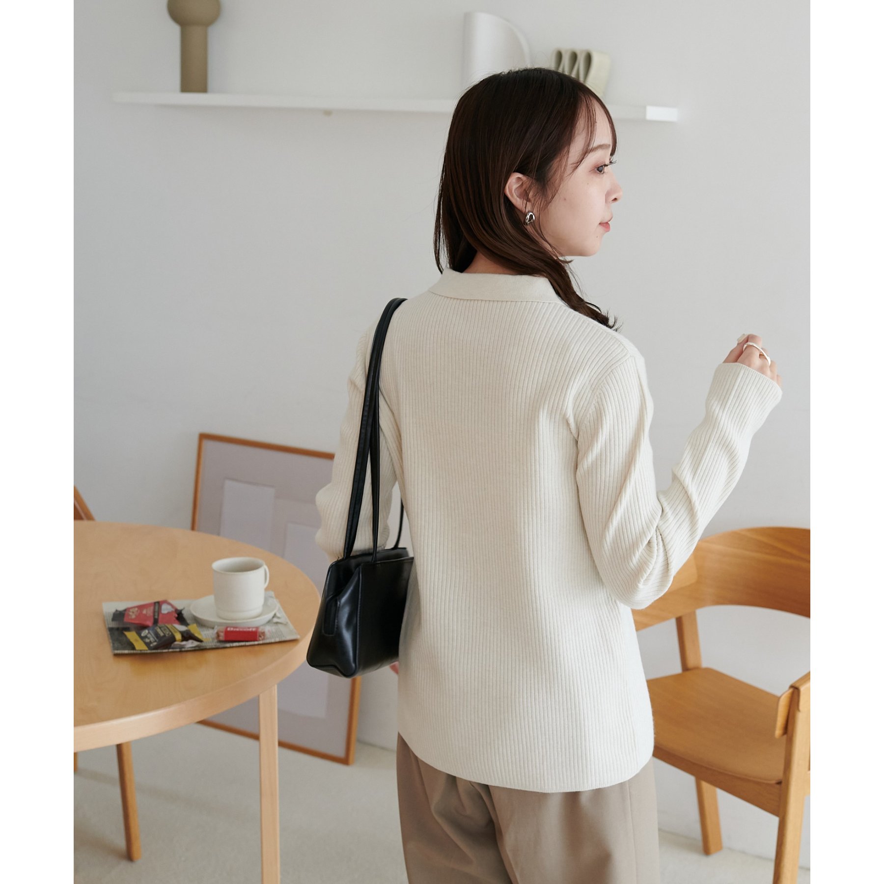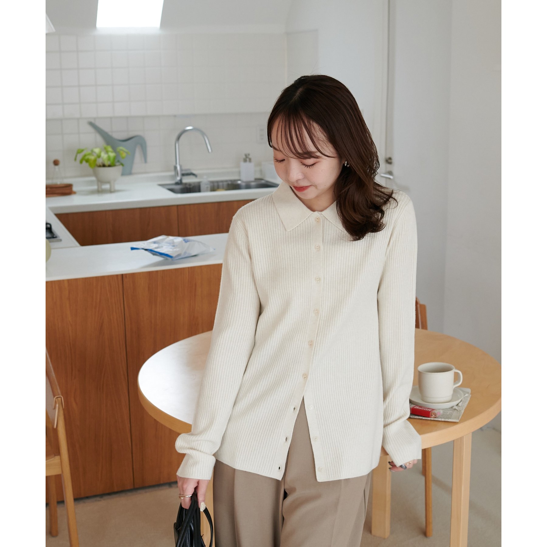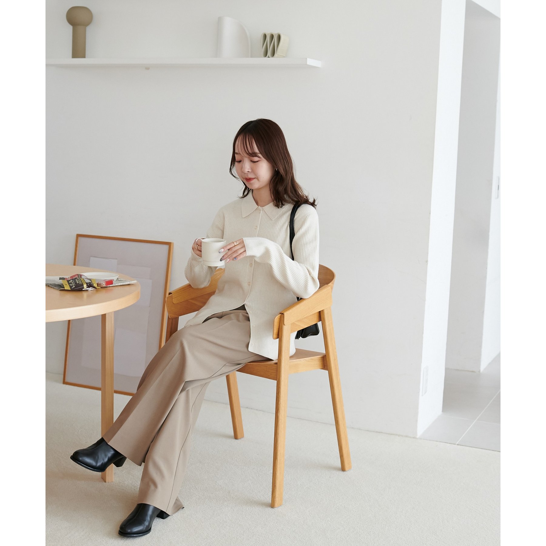 かっちりしすぎず、ほどよくカジュアル感を残した丸みのある衿が、顔まわりにやさしい印象を与えます。