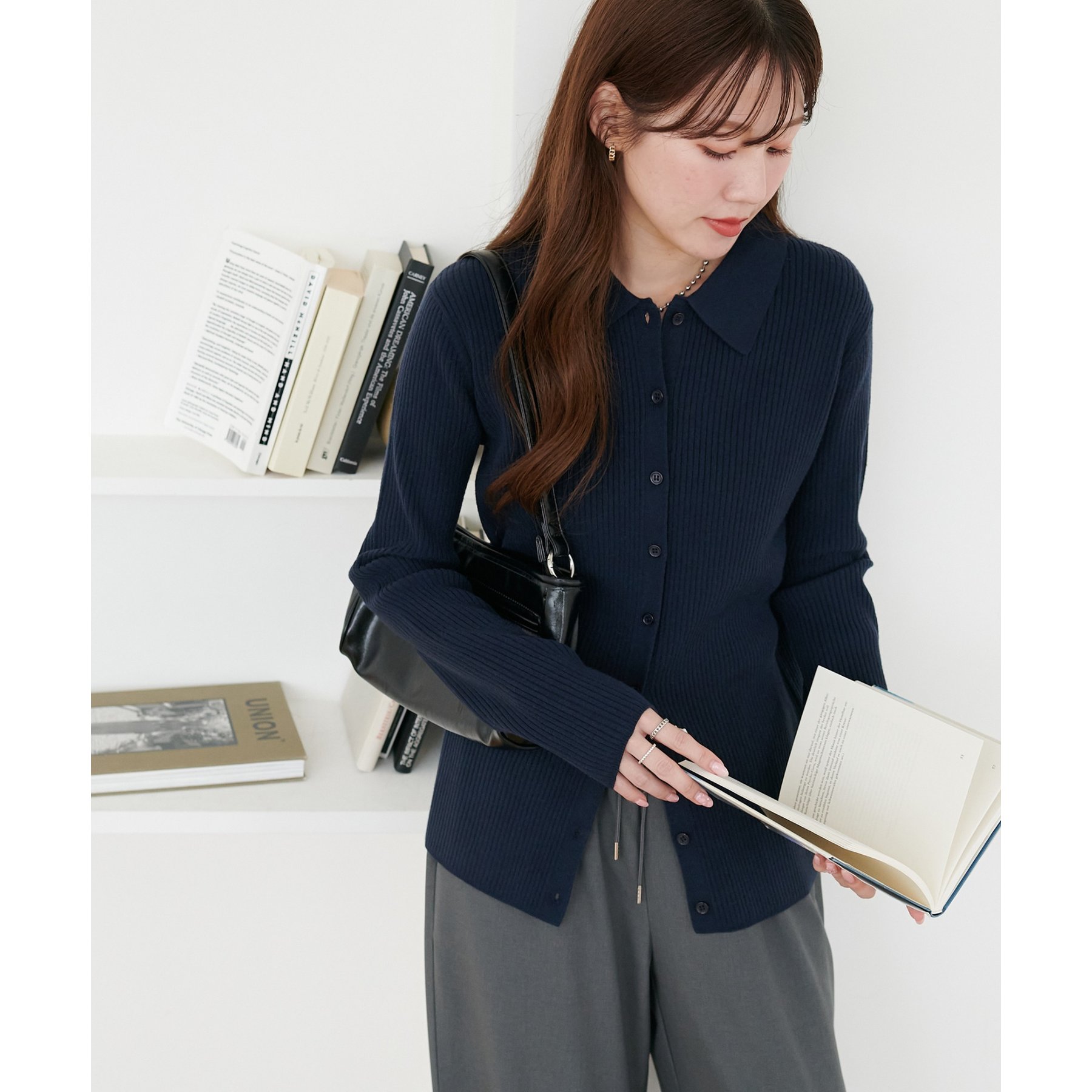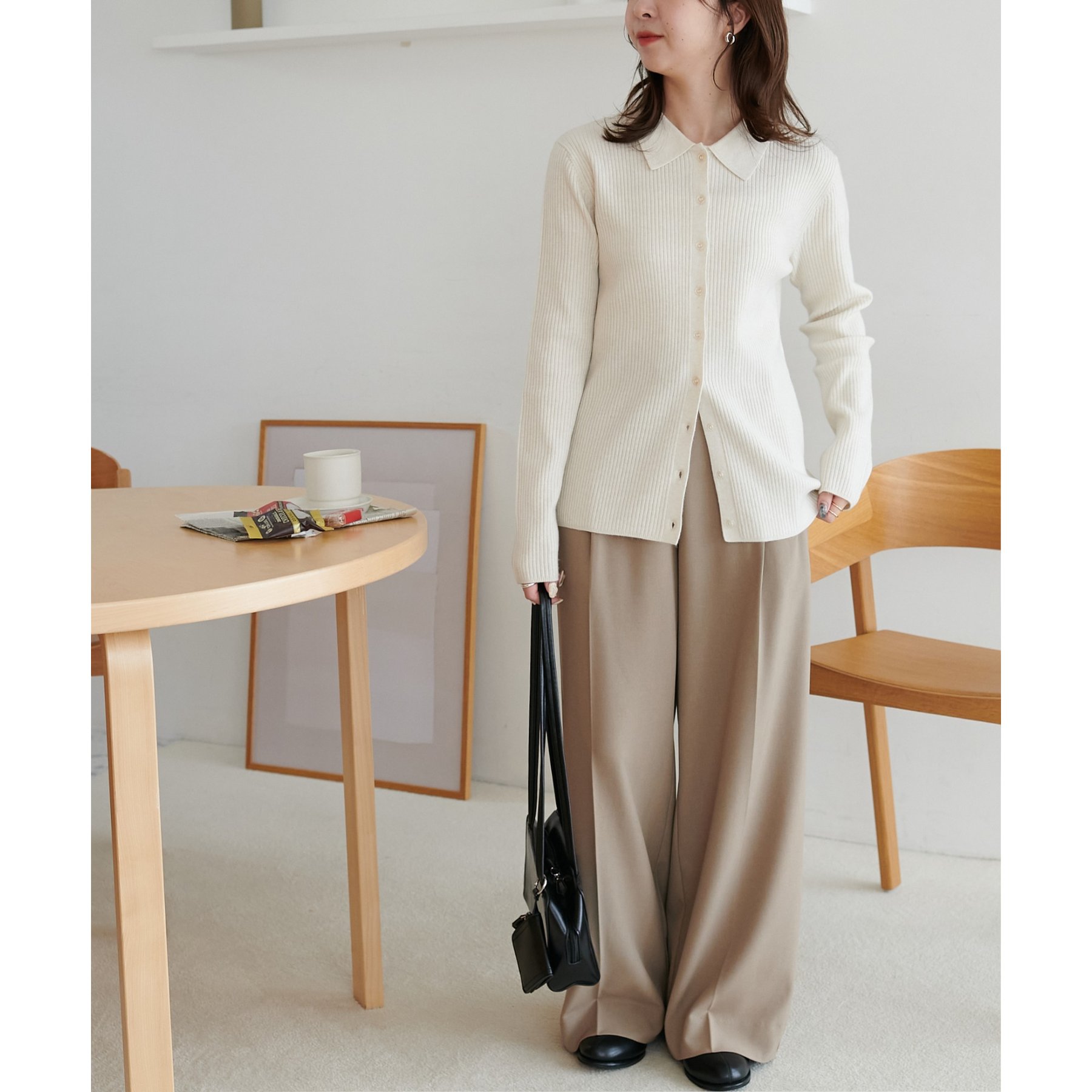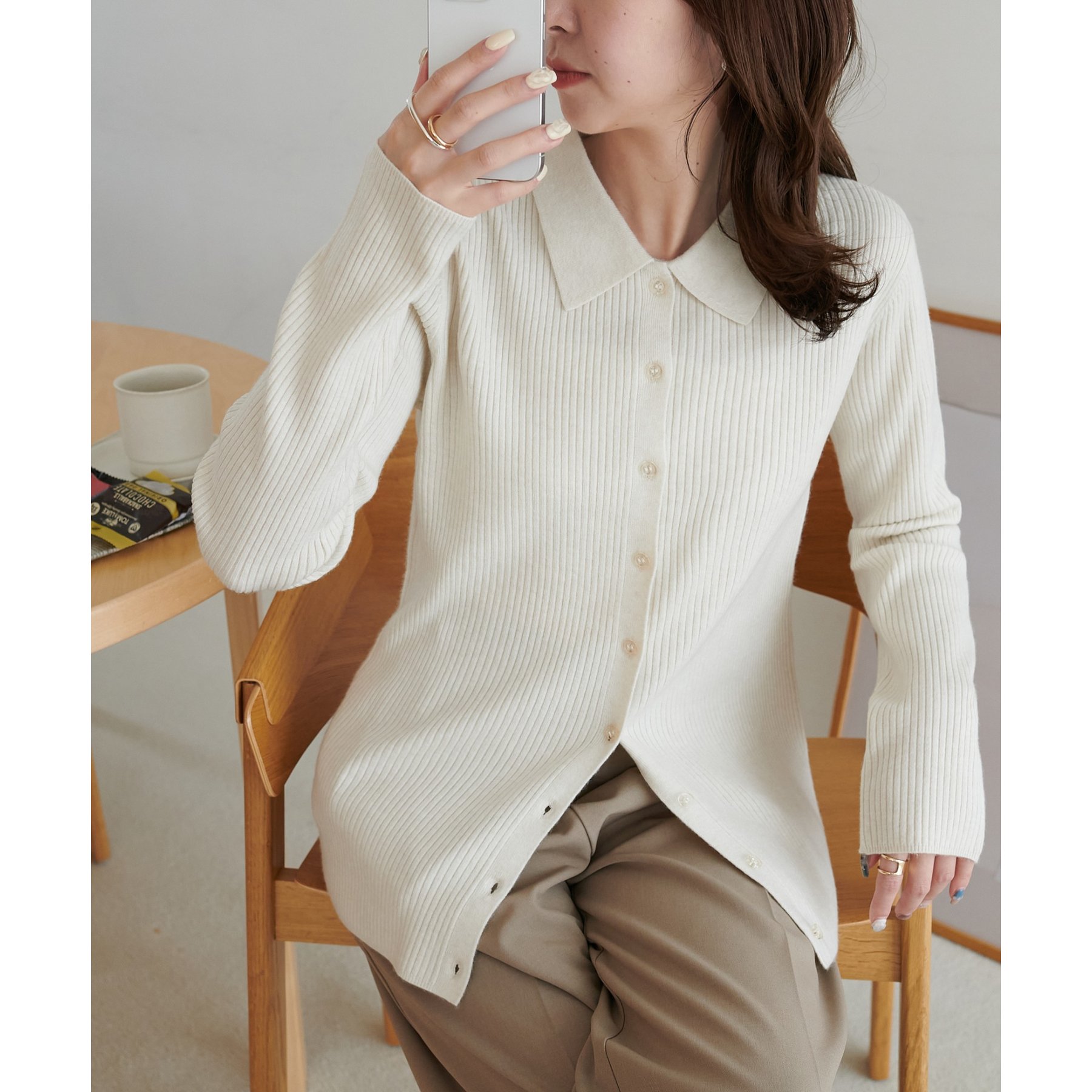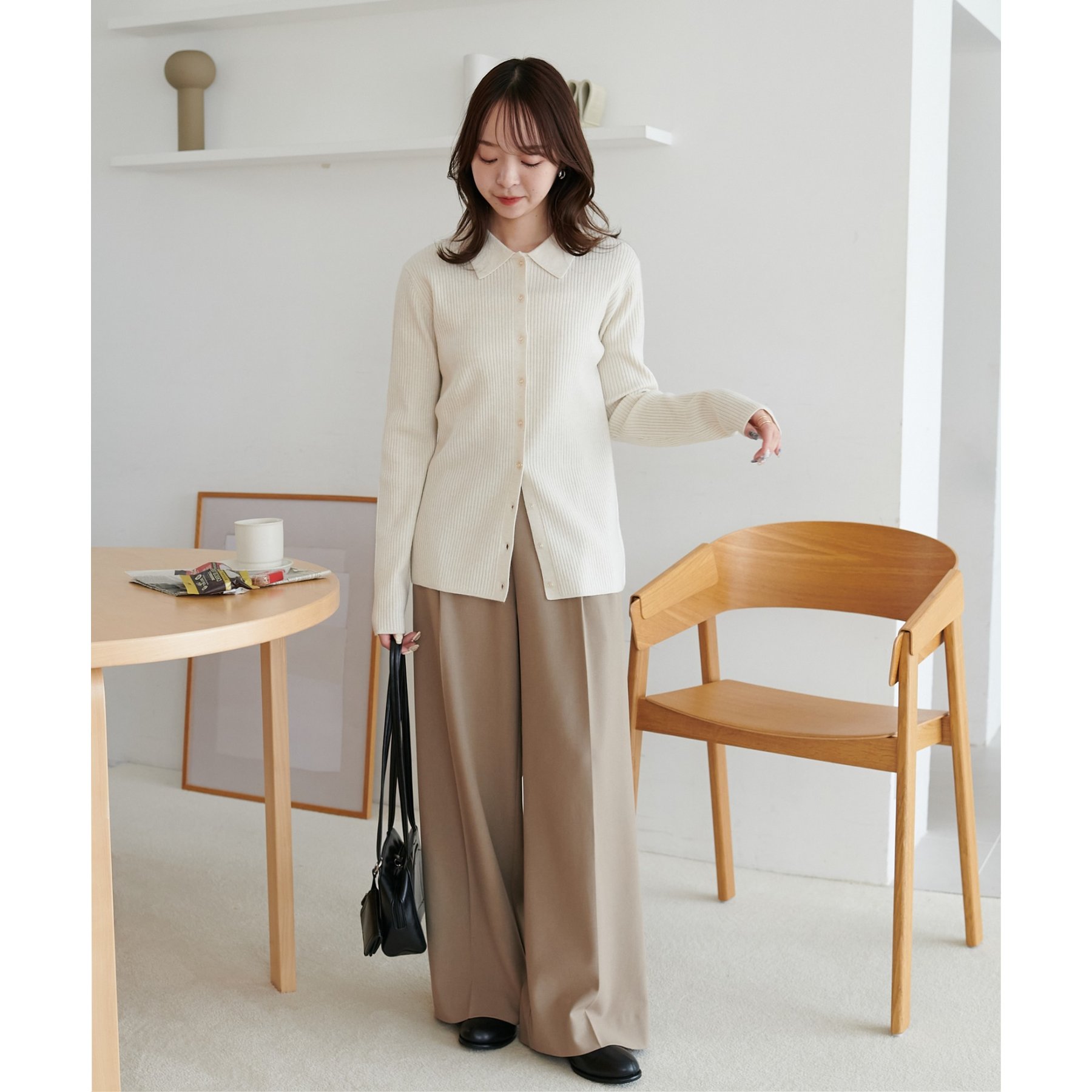 かっちりしすぎず、ほどよくカジュアル感を残した丸みのある衿が、顔まわりにやさしい印象を与えます。