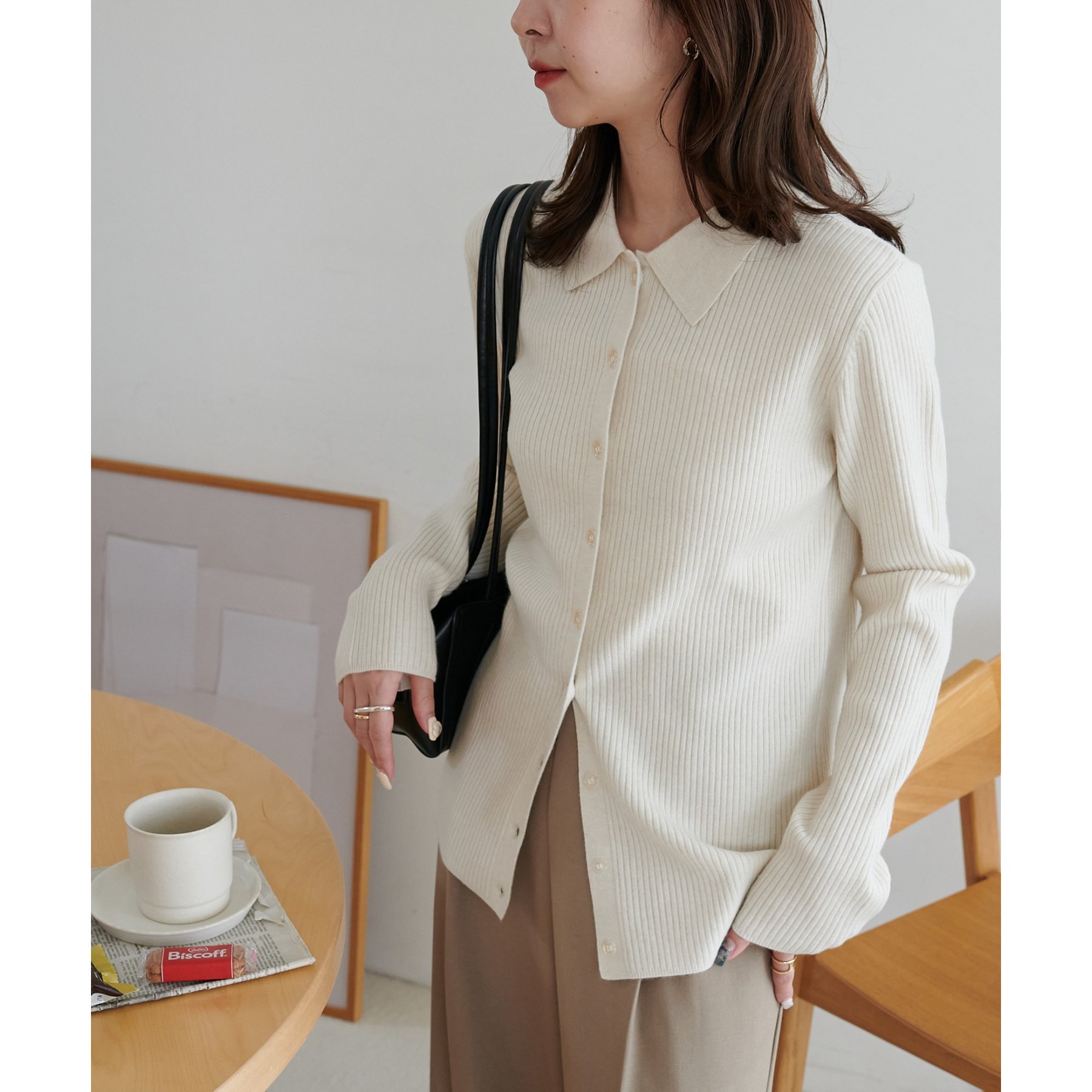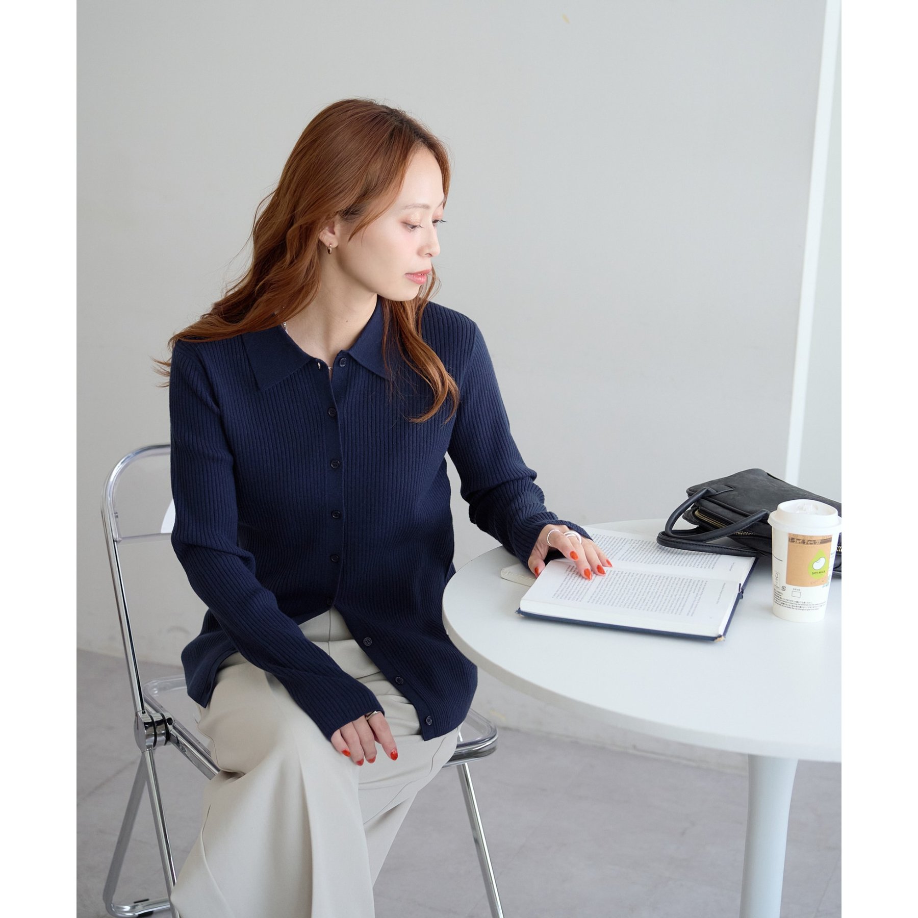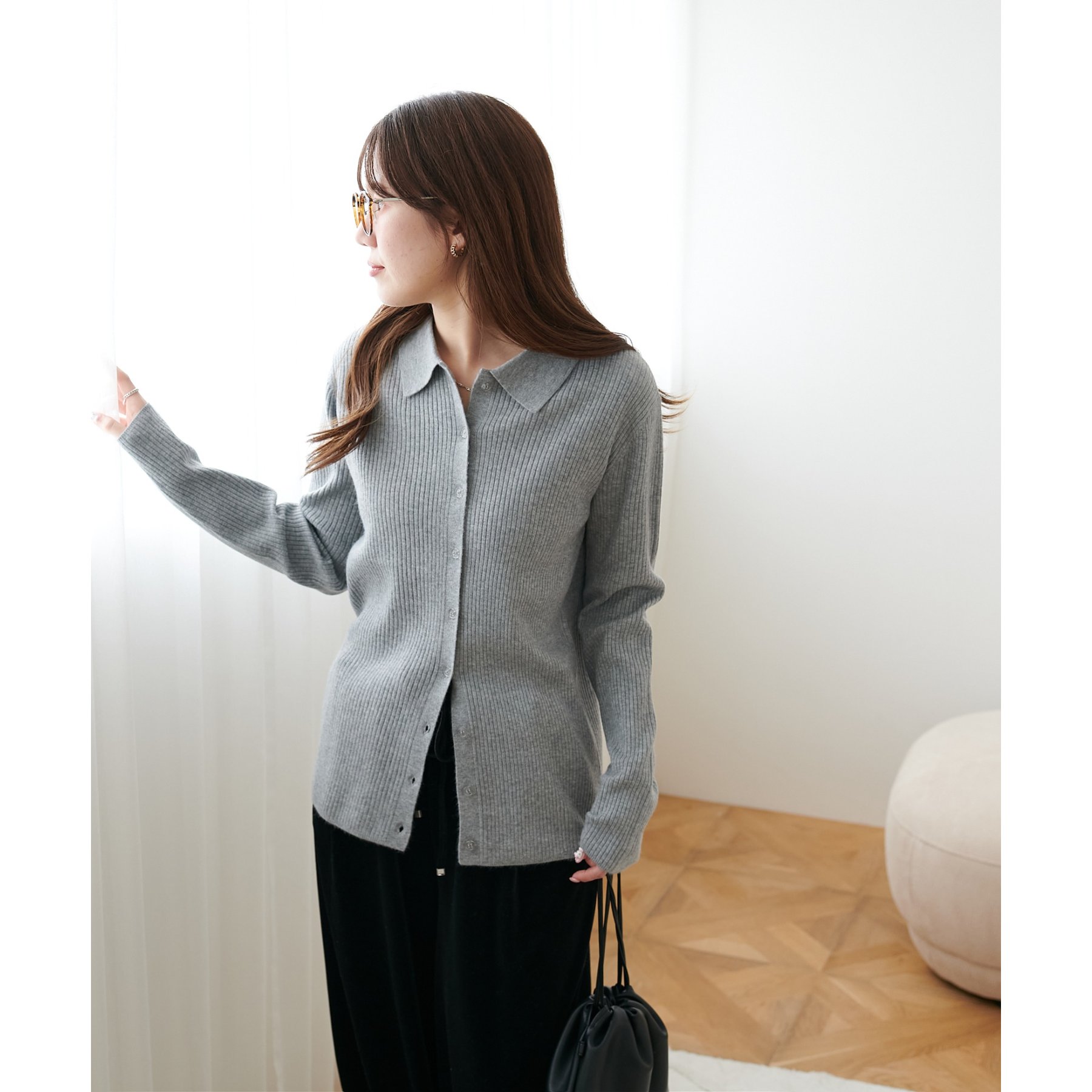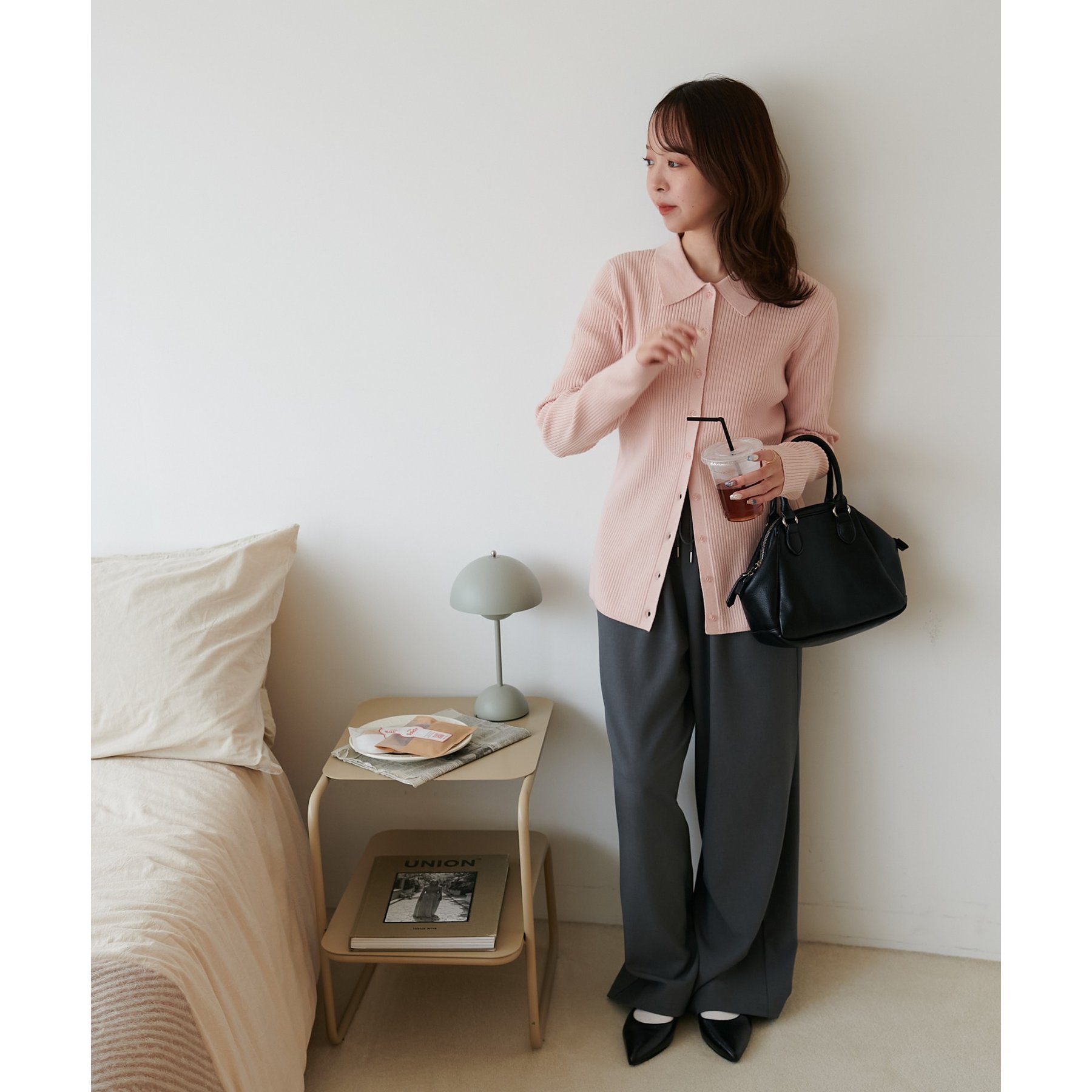 かっちりしすぎず、ほどよくカジュアル感を残した丸みのある衿が、顔まわりにやさしい印象を与えます。