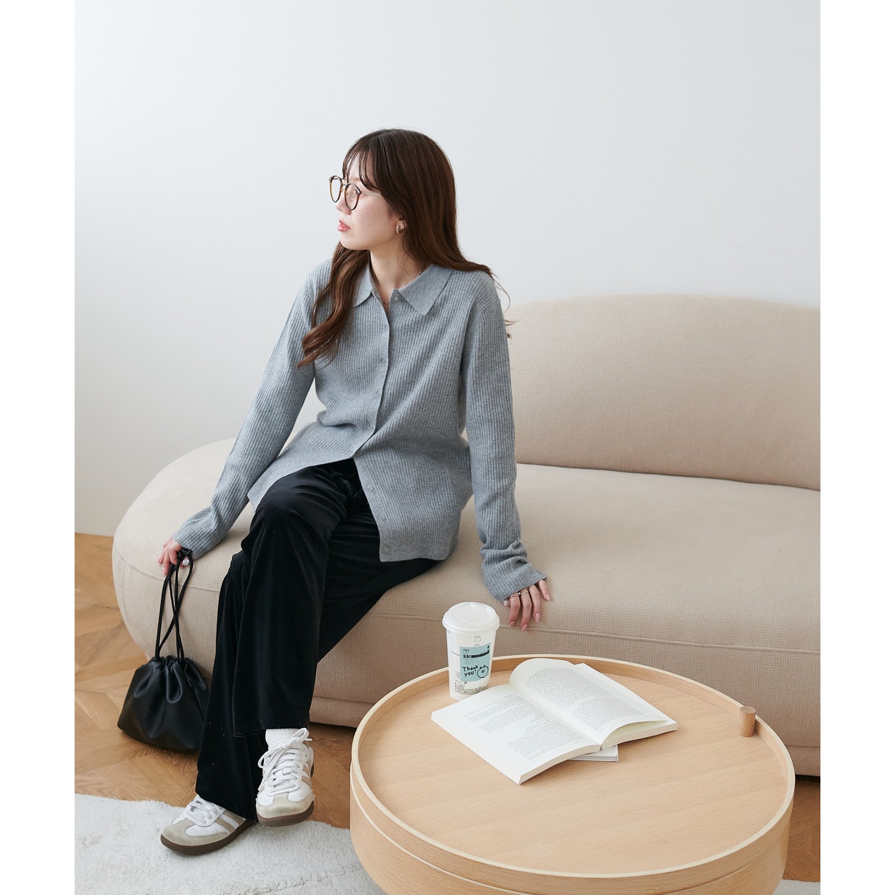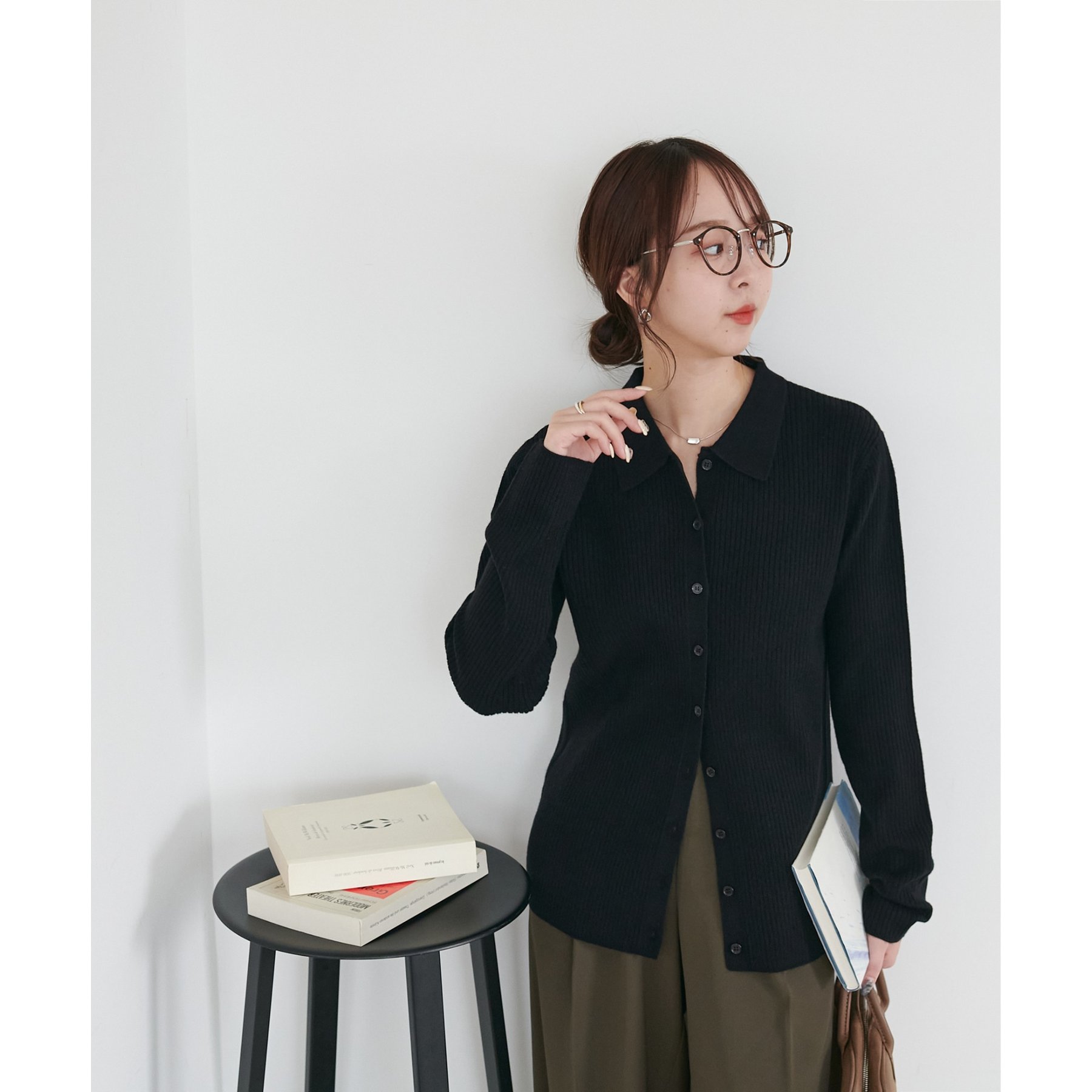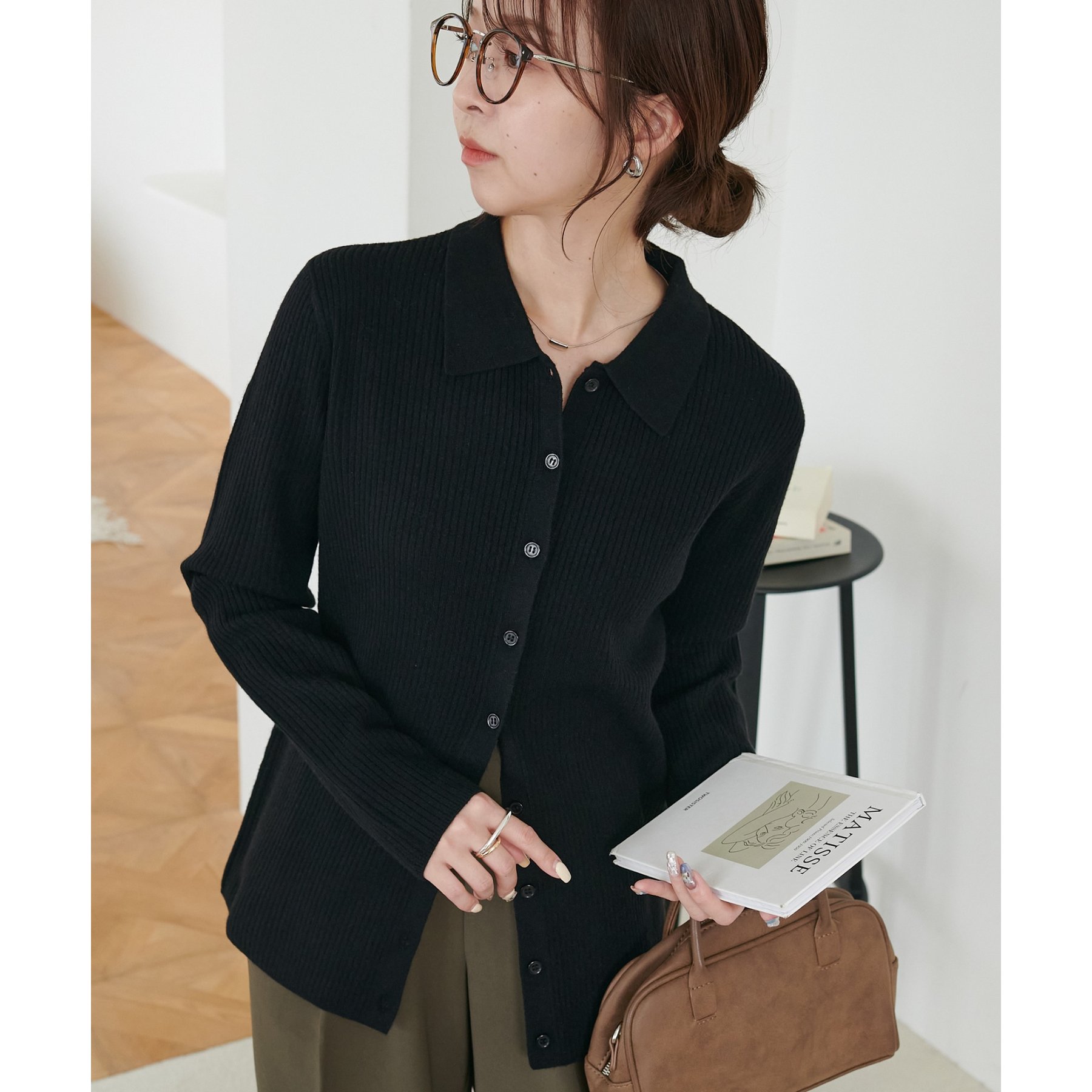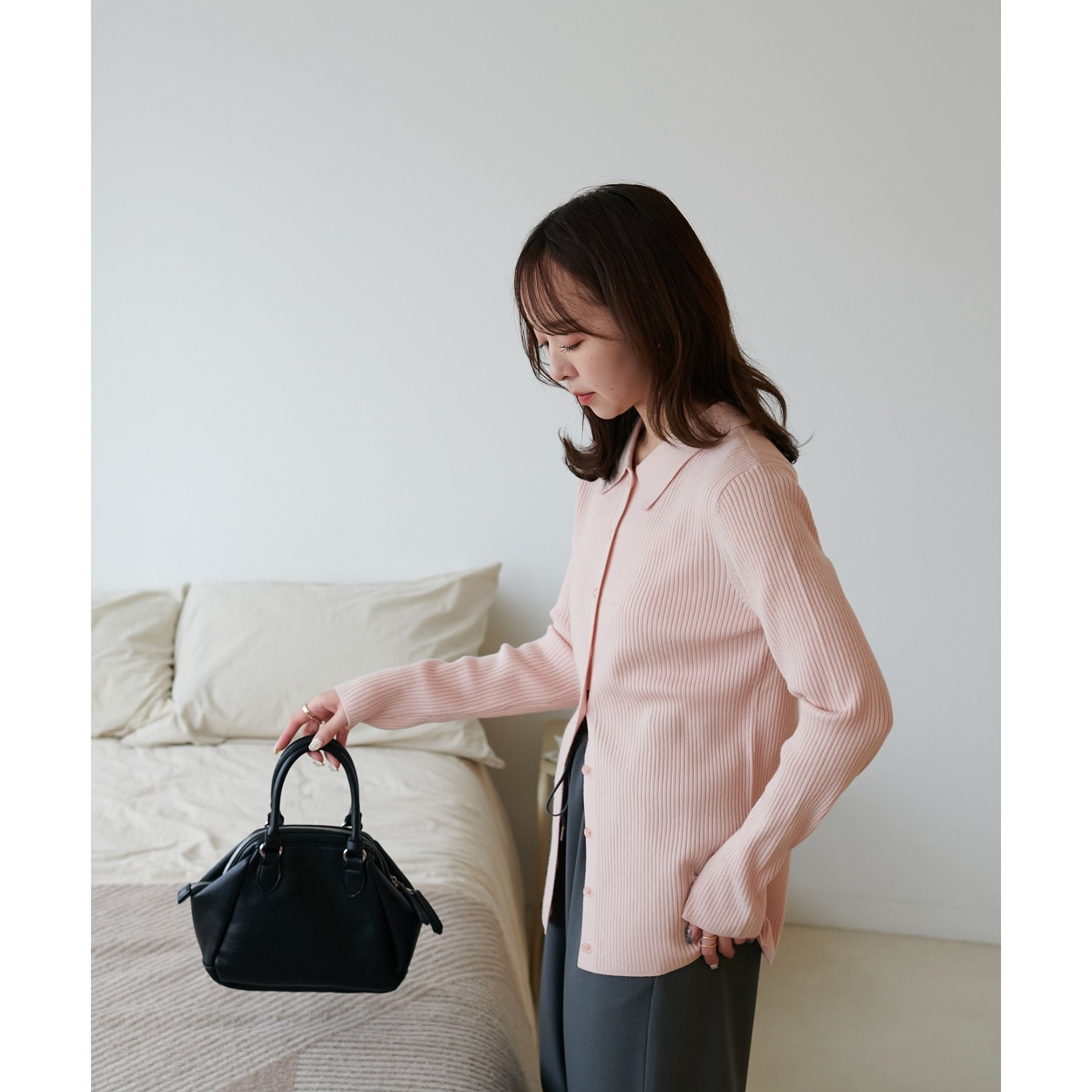 かっちりしすぎず、ほどよくカジュアル感を残した丸みのある衿が、顔まわりにやさしい印象を与えます。