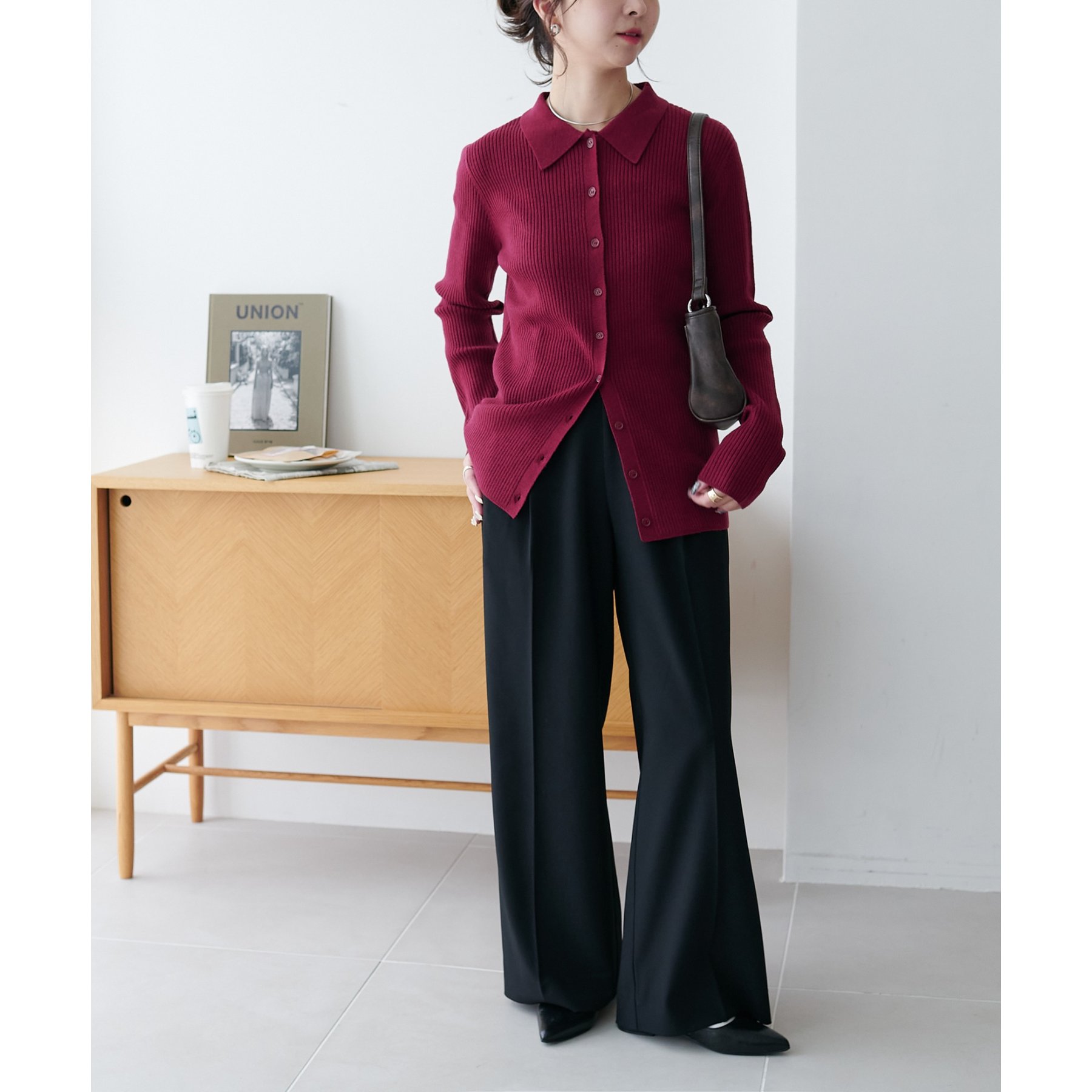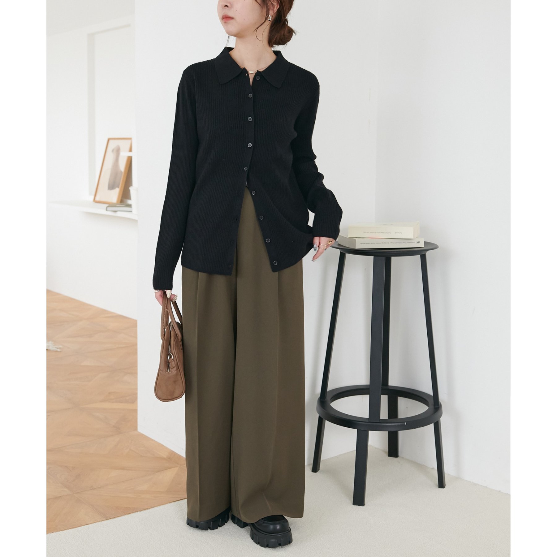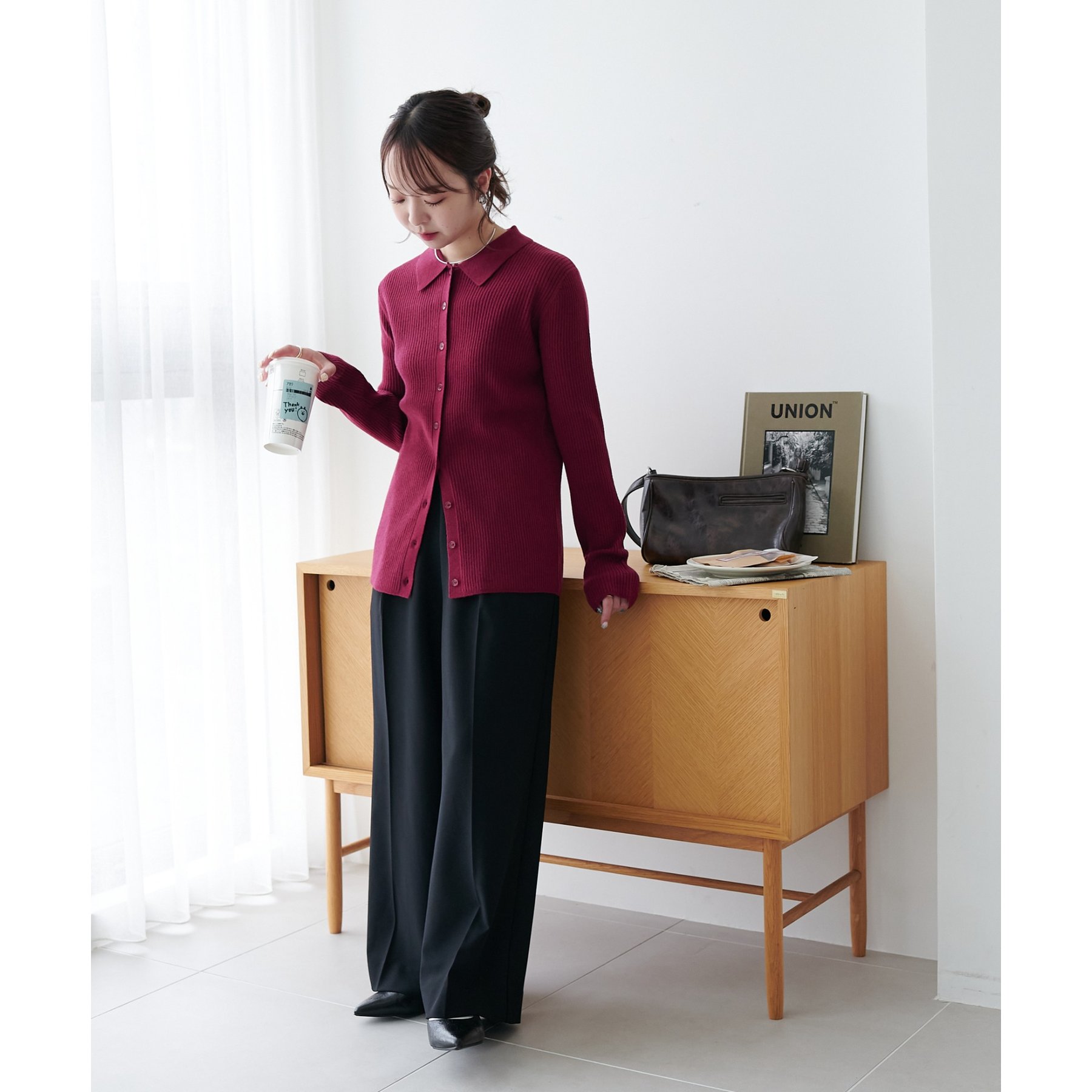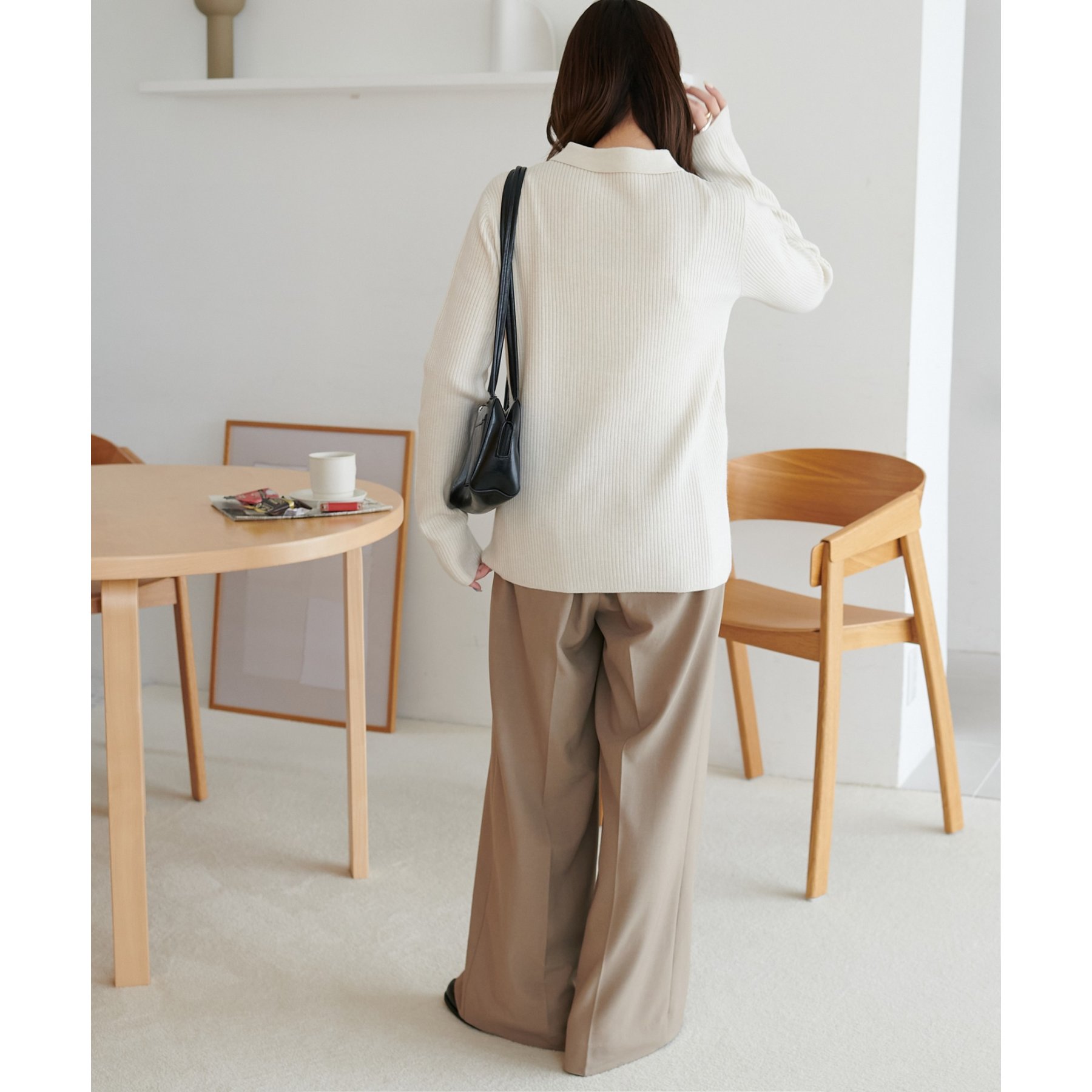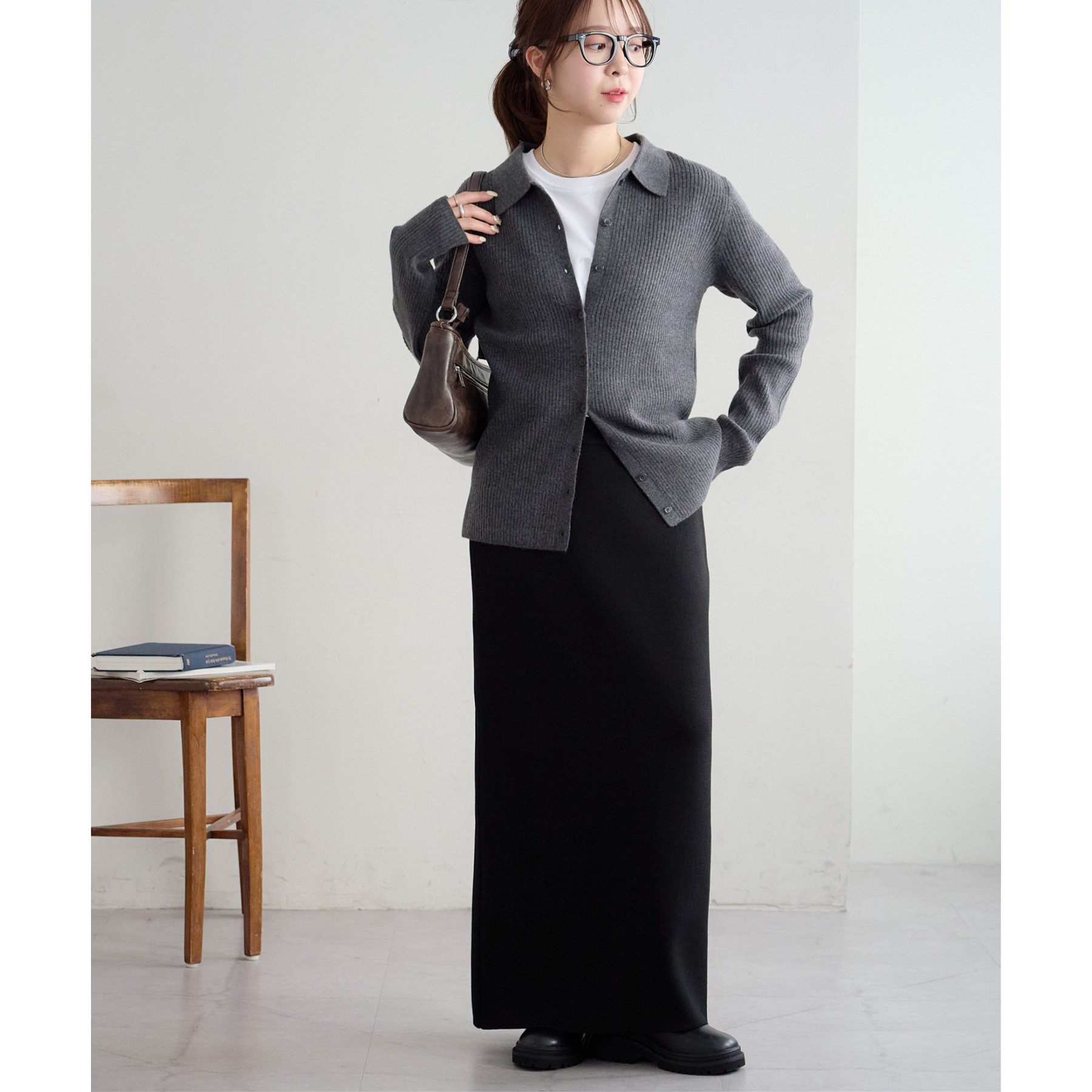 すっきりとしたIラインのシルエットと縦リブで、ボディラインをすらっと見せ、細見え効果も◎