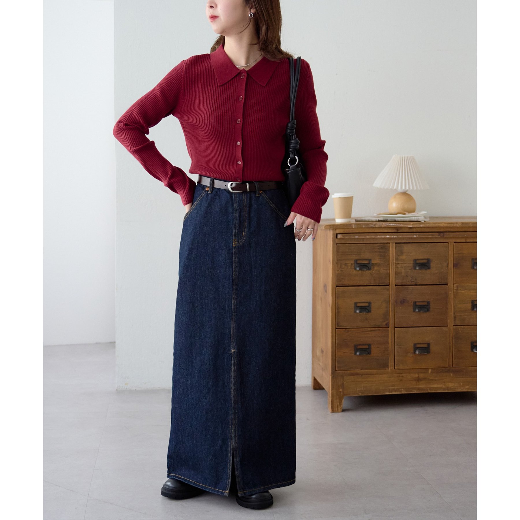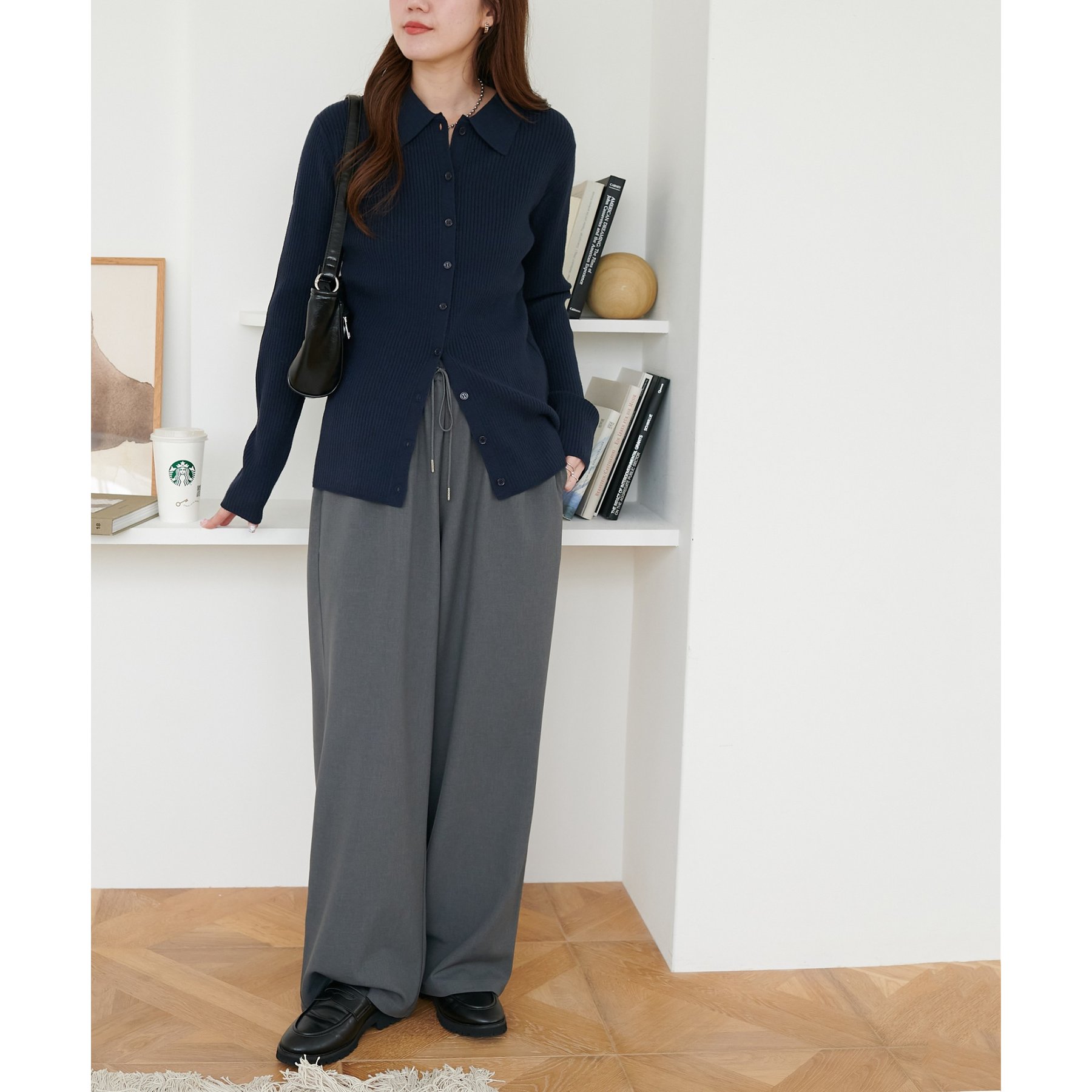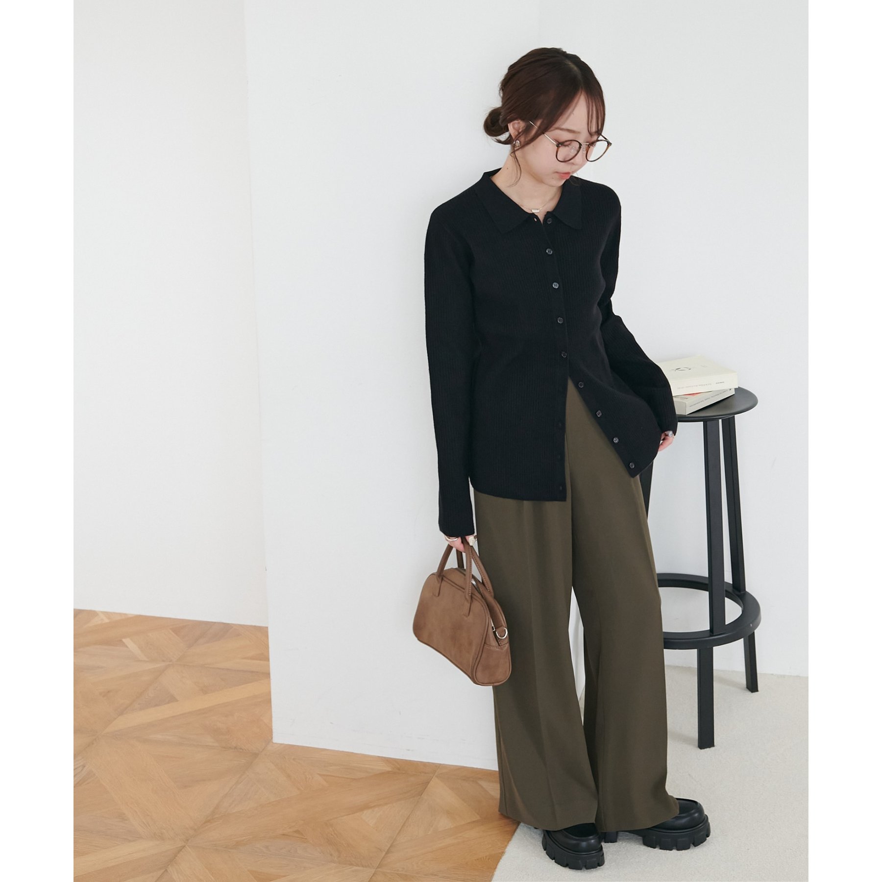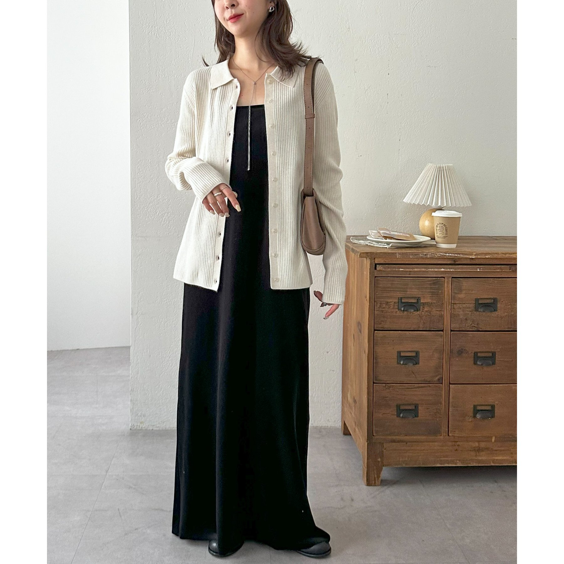 すっきりとしたIラインのシルエットと縦リブで、ボディラインをすらっと見せ、細見え効果も◎