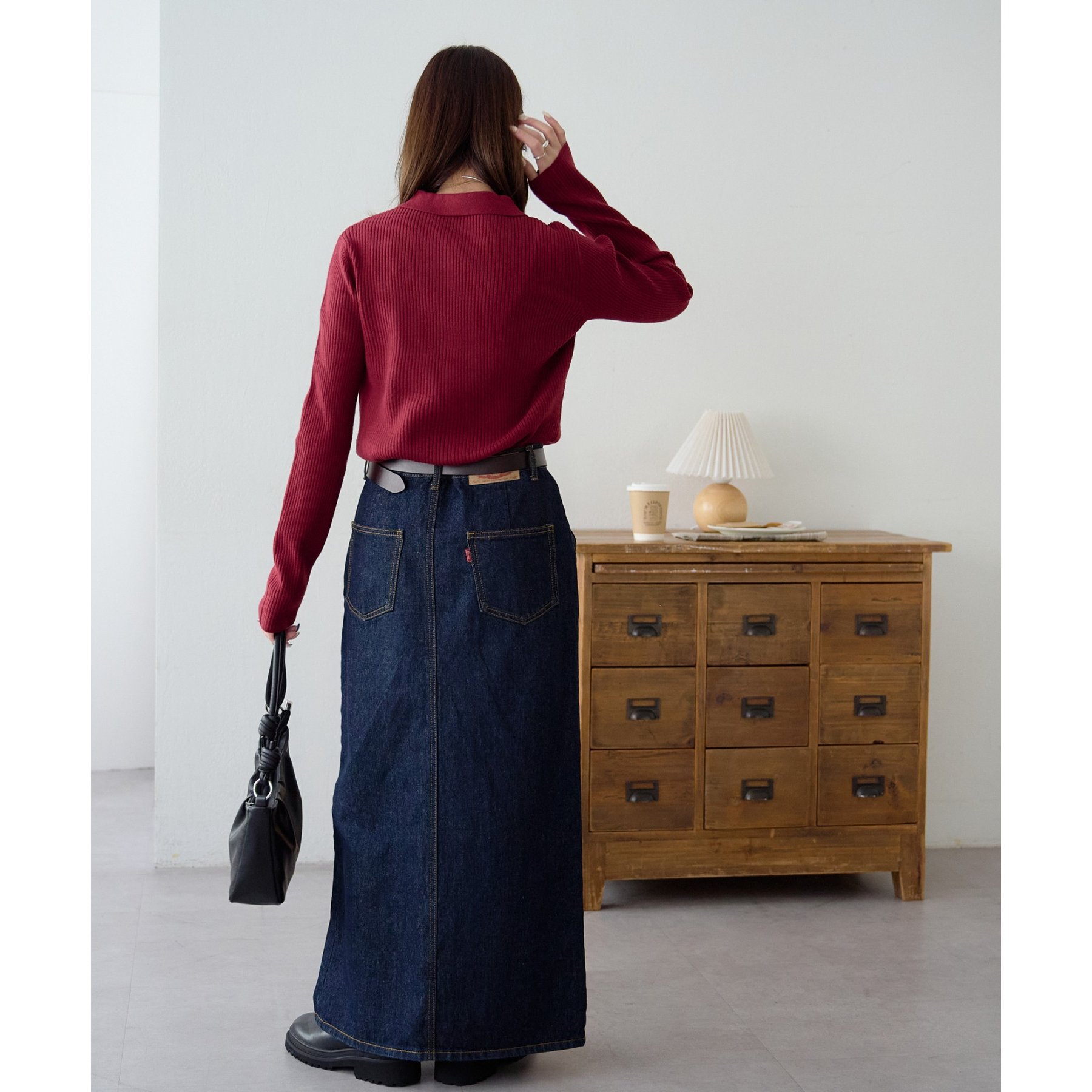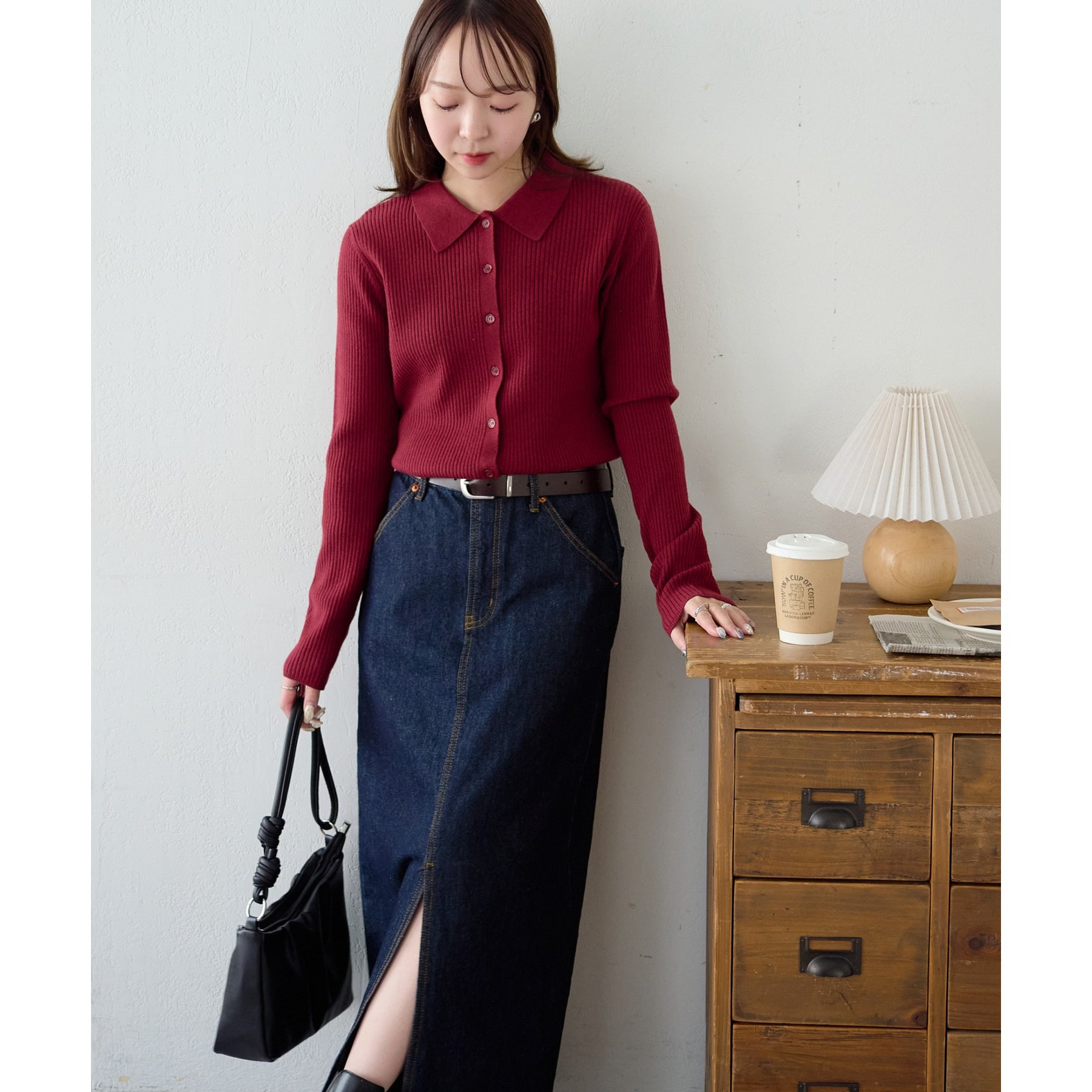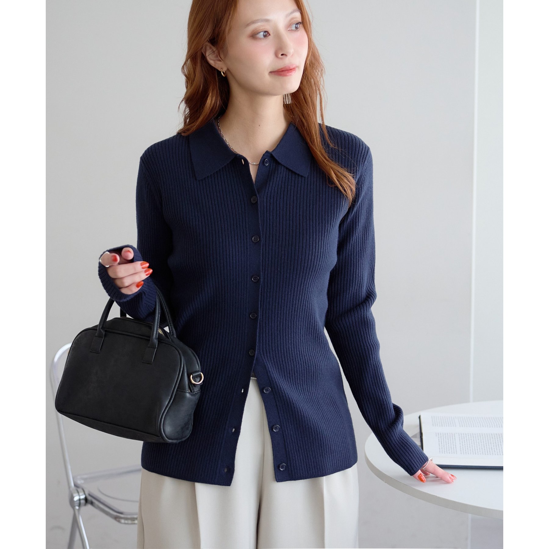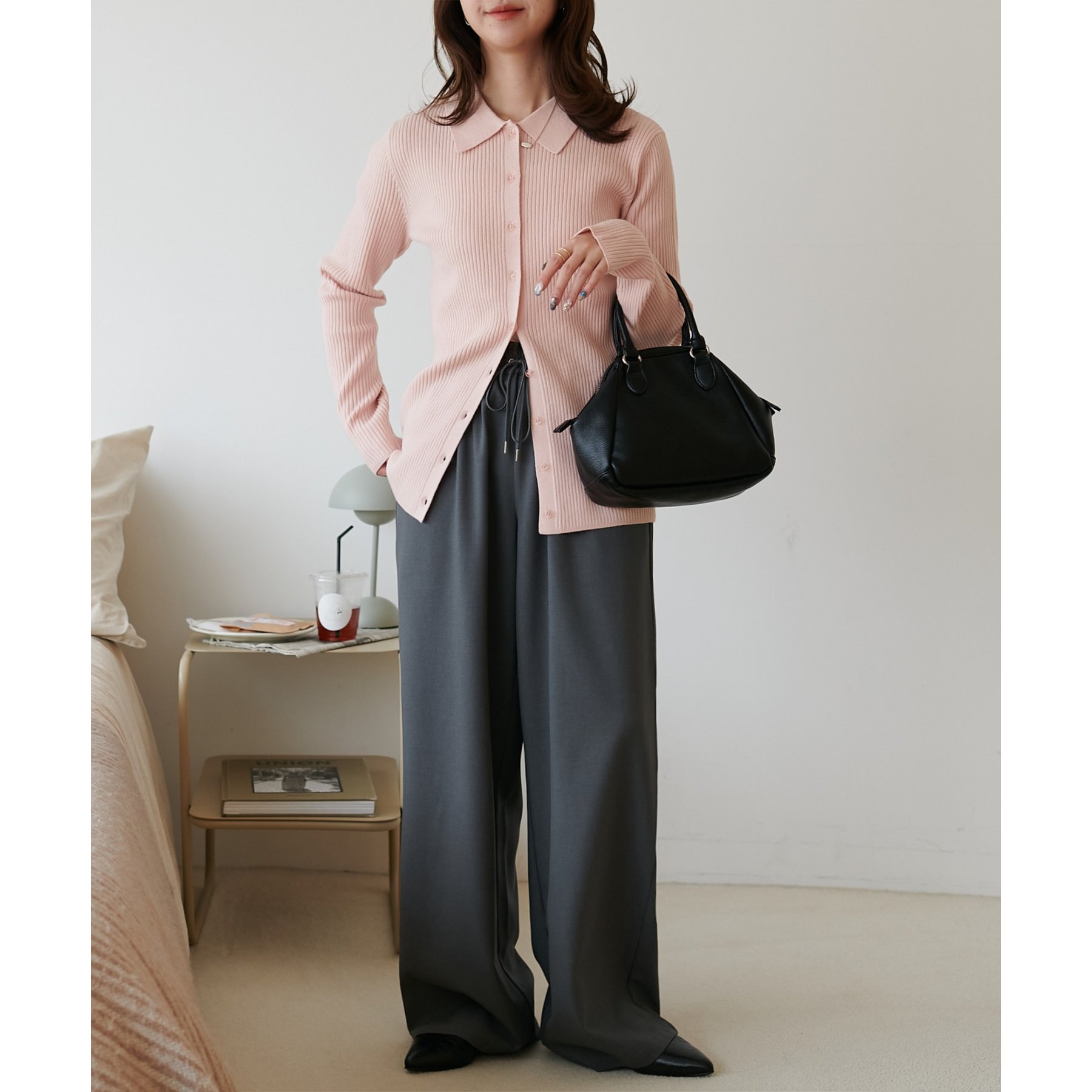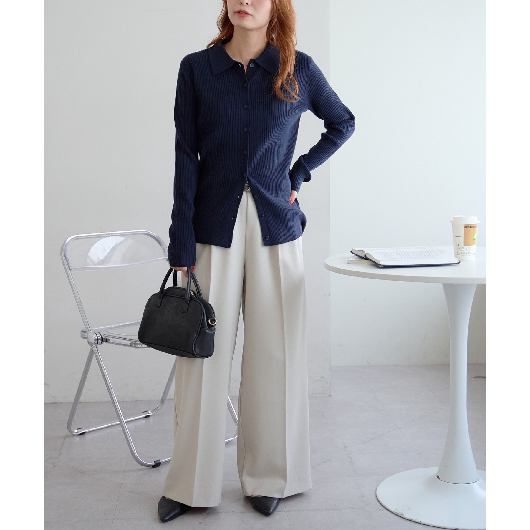 すっきりとしたIラインのシルエットと縦リブで、ボディラインをすらっと見せ、細見え効果も◎