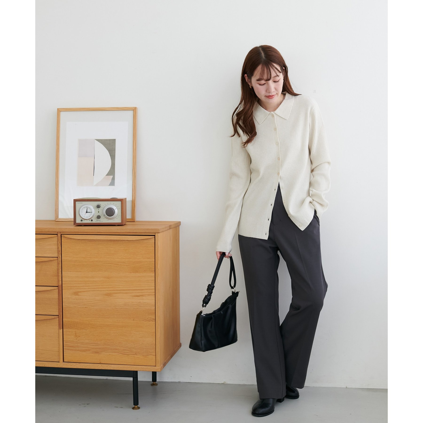 162cmスタッフ:程よくフィットするサイズ感で、ラインを拾いすぎずすっきり見えします。衿付きできちんと感があるので、カジュアルすぎず大人っぽく着られます◎