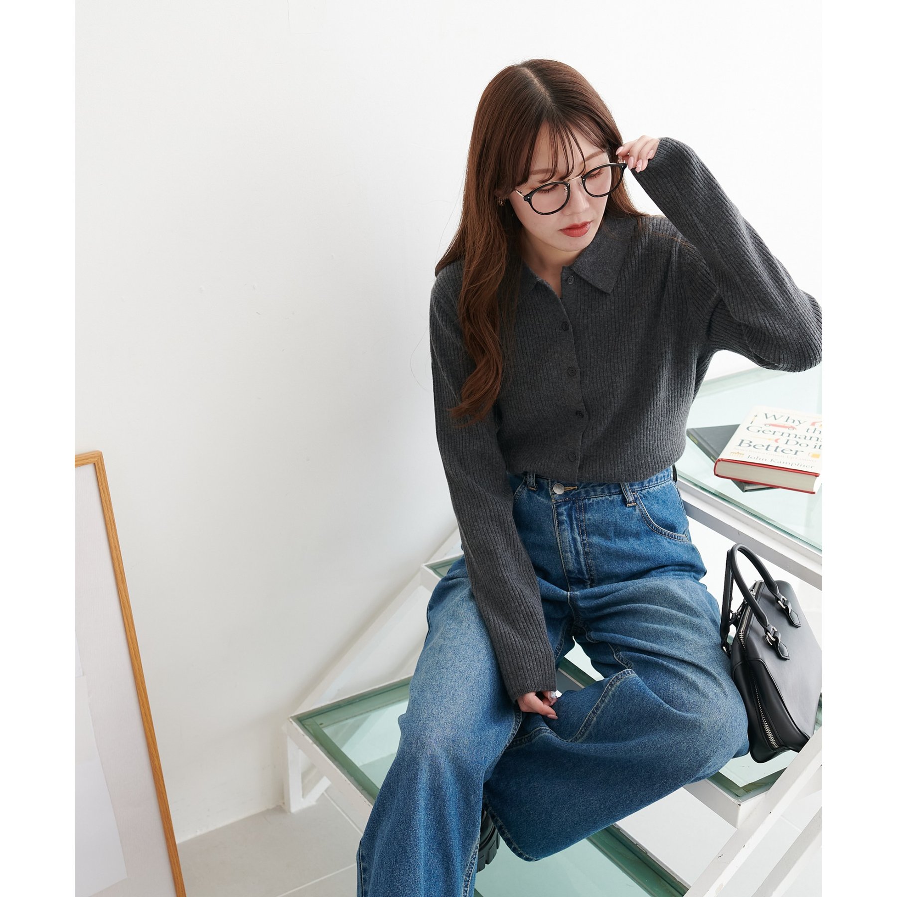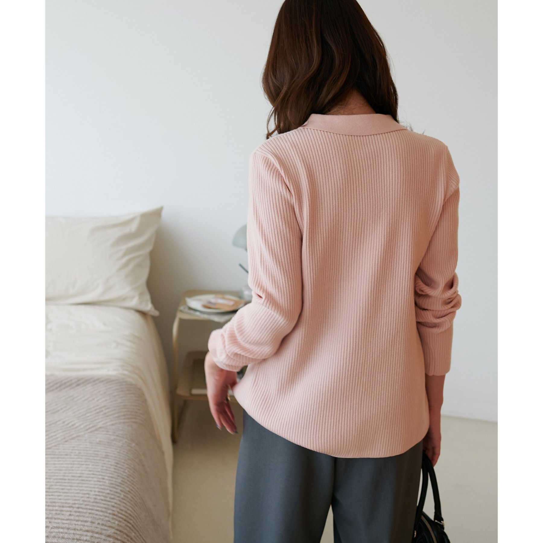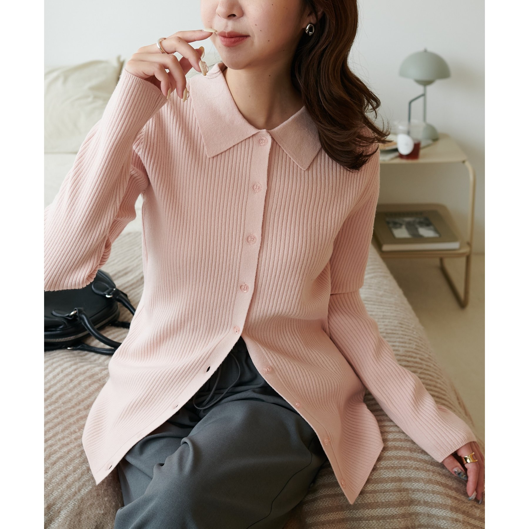 モチモチリブ衿付前ボタンプルオーバー《WEB限定カラーあり》