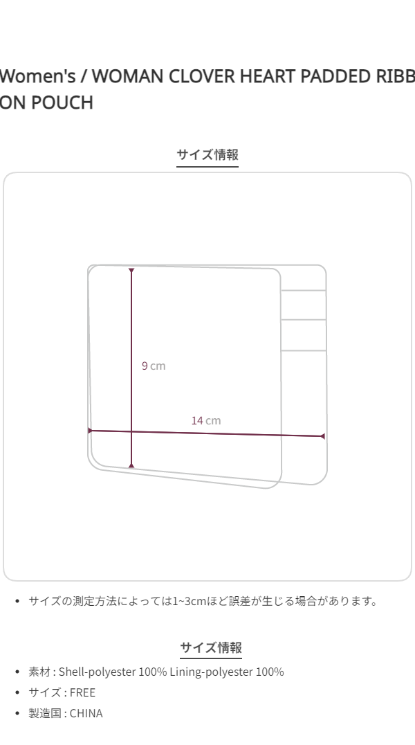 WOMAN CLOVER HEART PADDED RIBBON POUCH - Pink