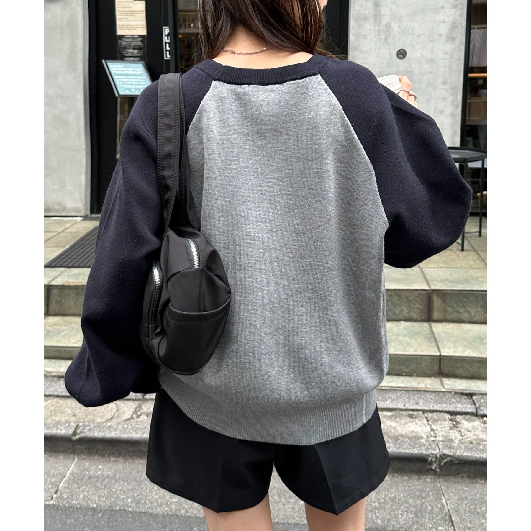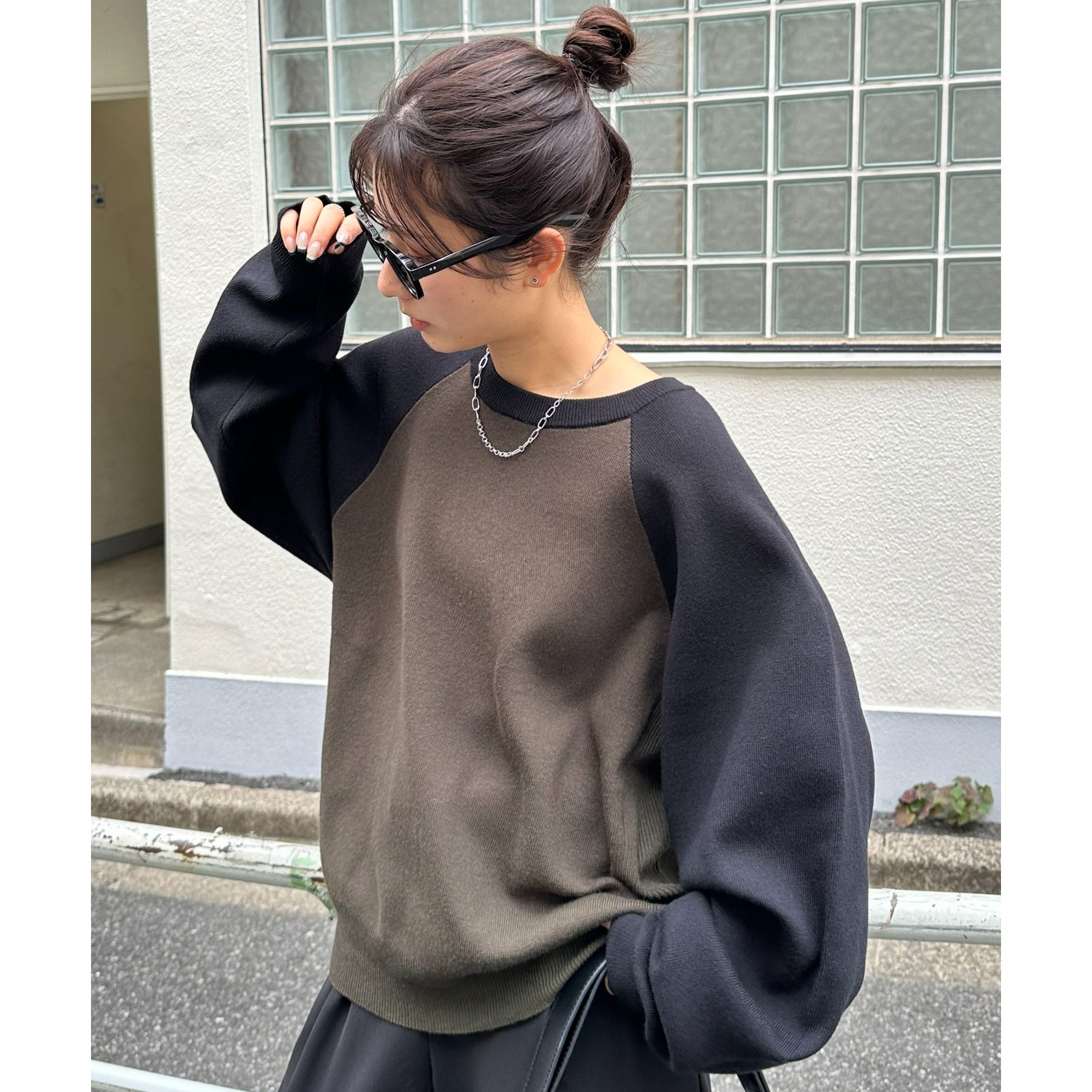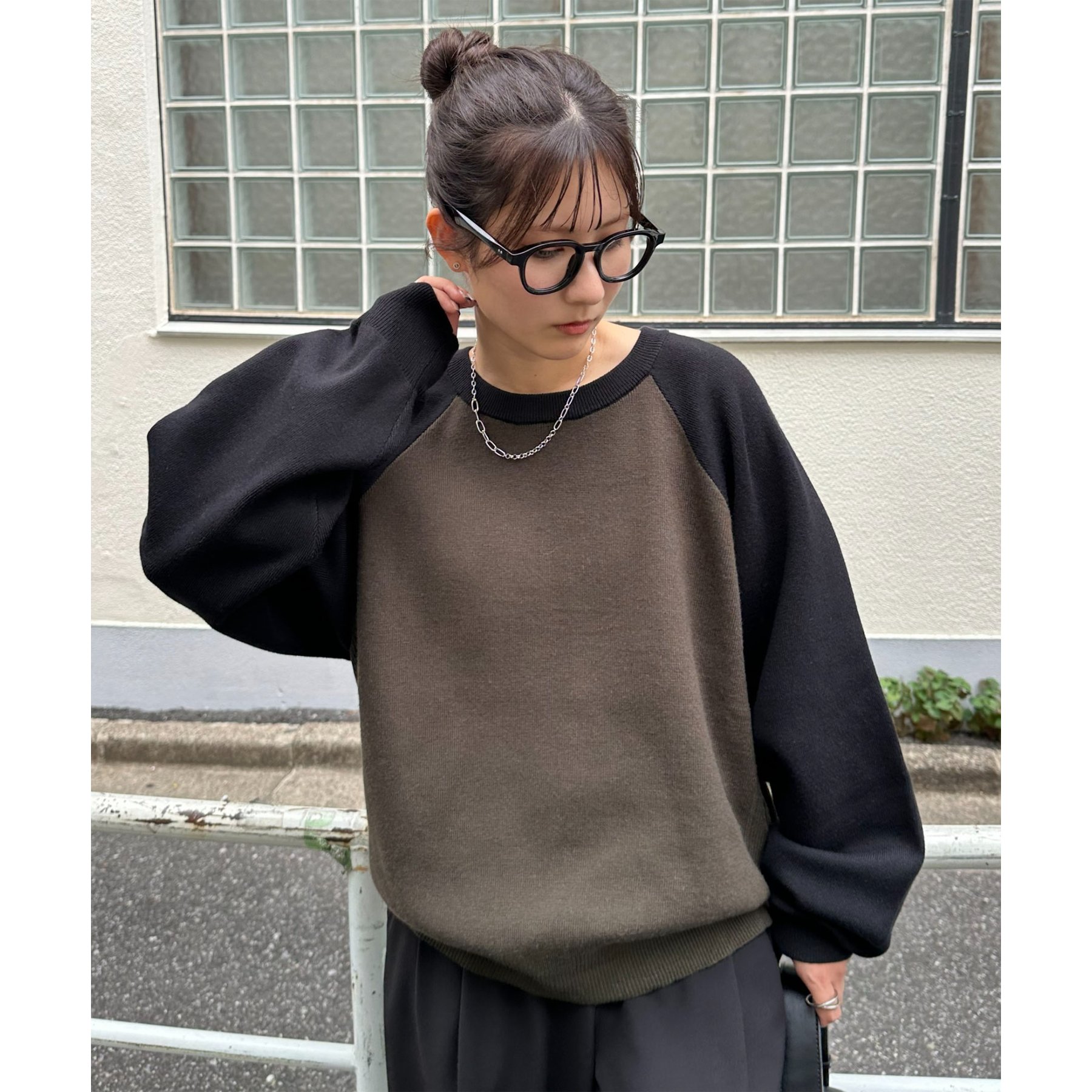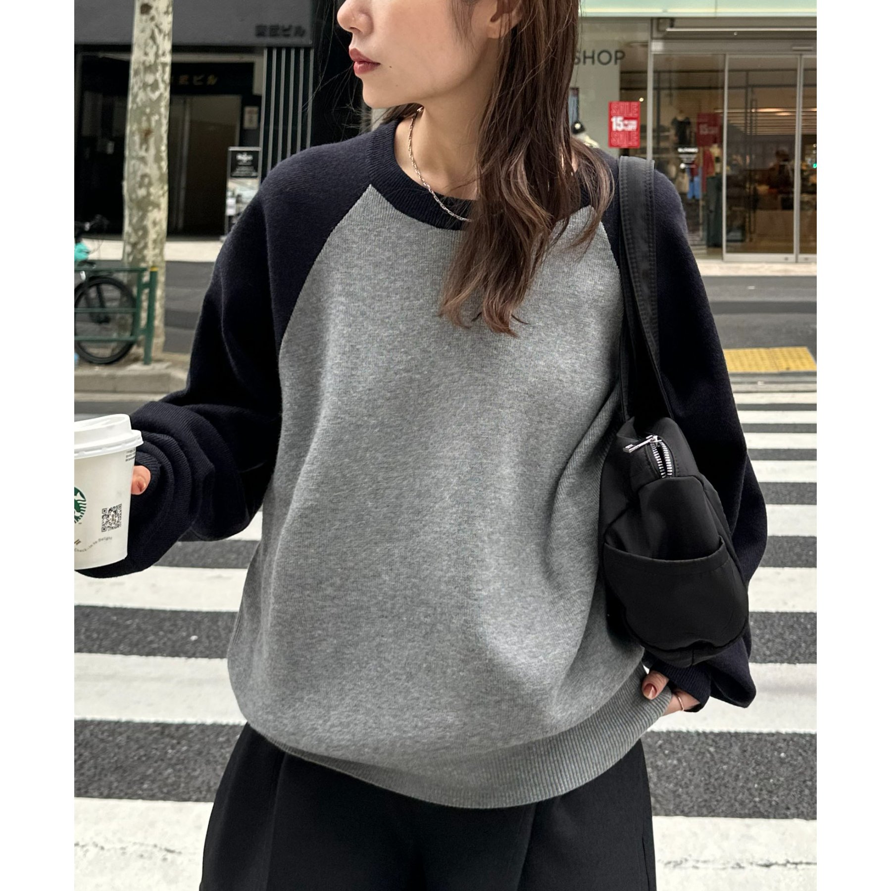 配色の切り替えが目を引く、ラグランスリーブデザインのニットプルオーバー。