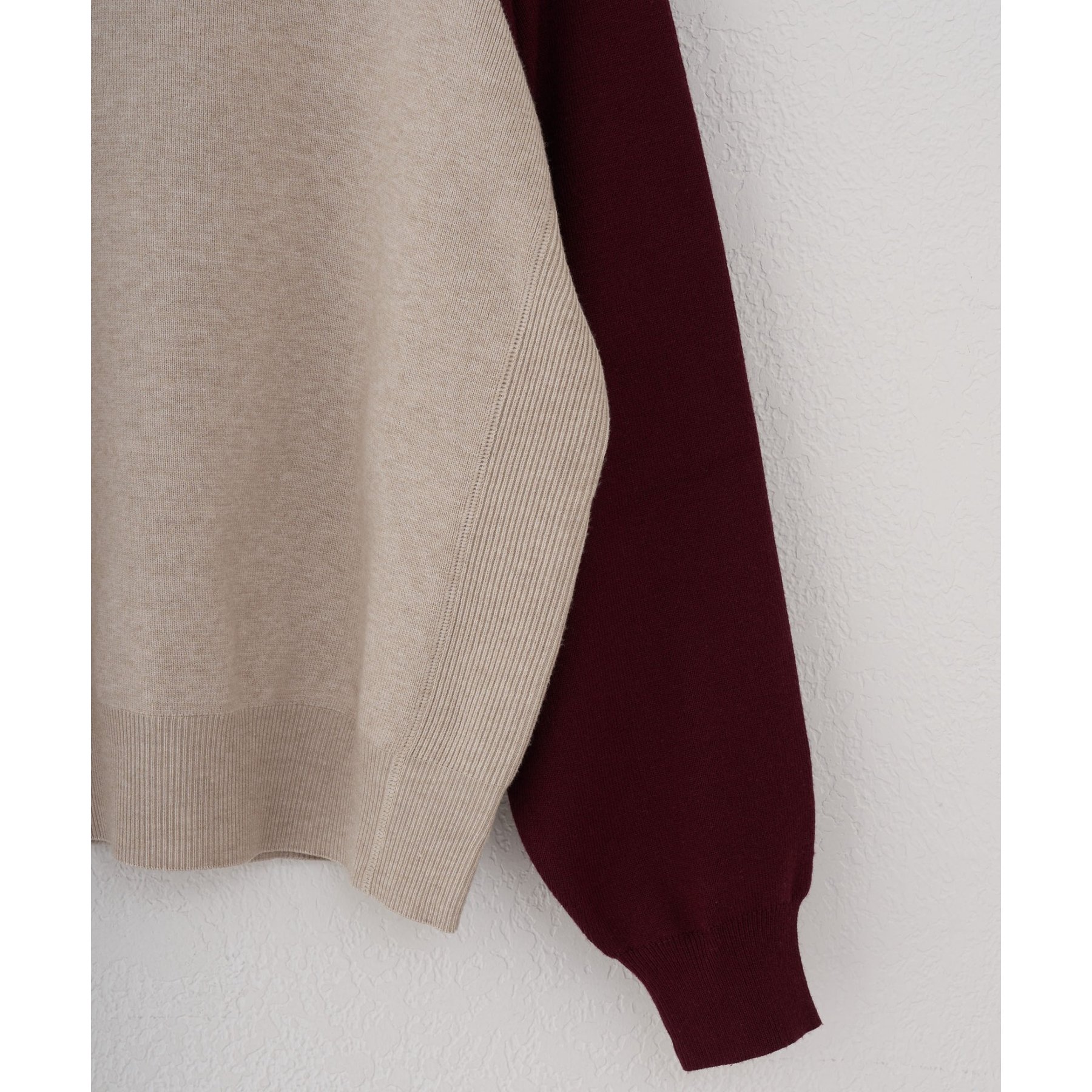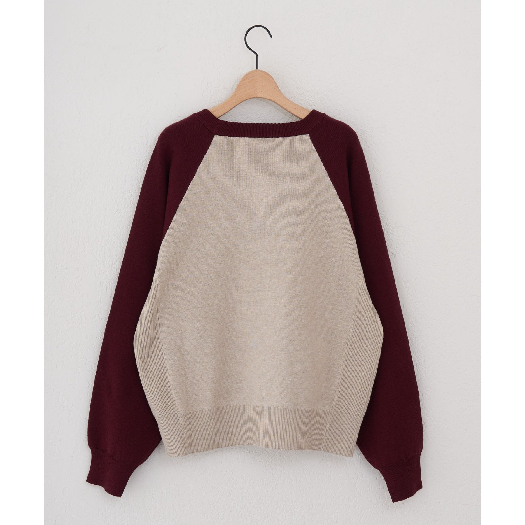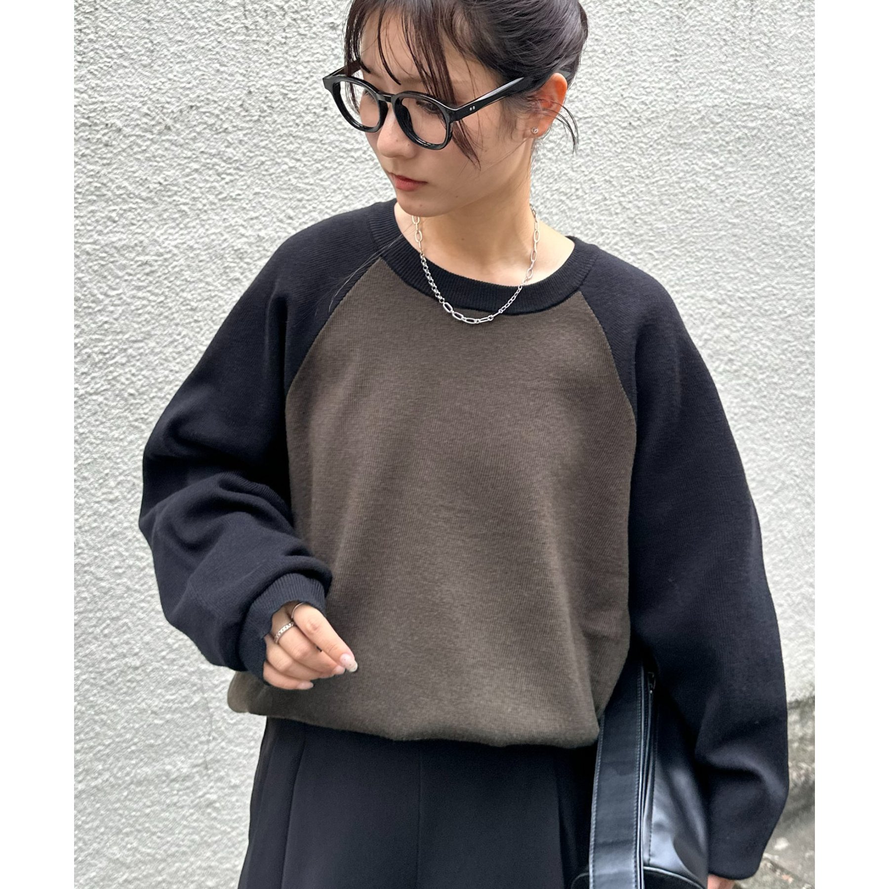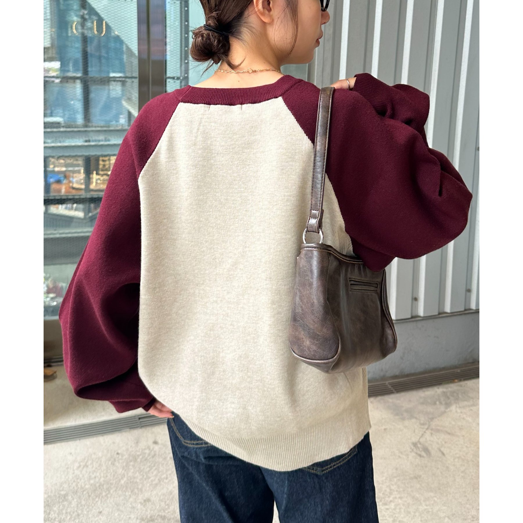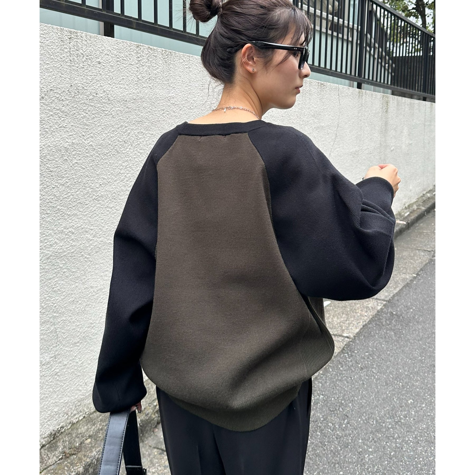 配色の切り替えが目を引く、ラグランスリーブデザインのニットプルオーバー。