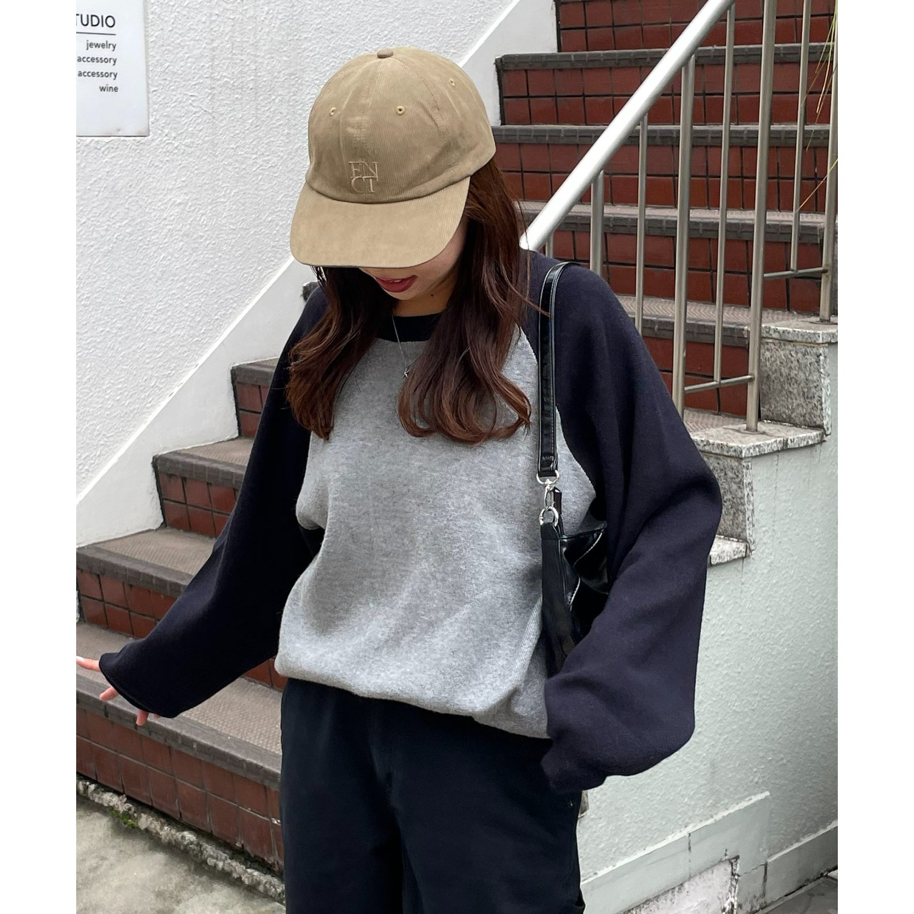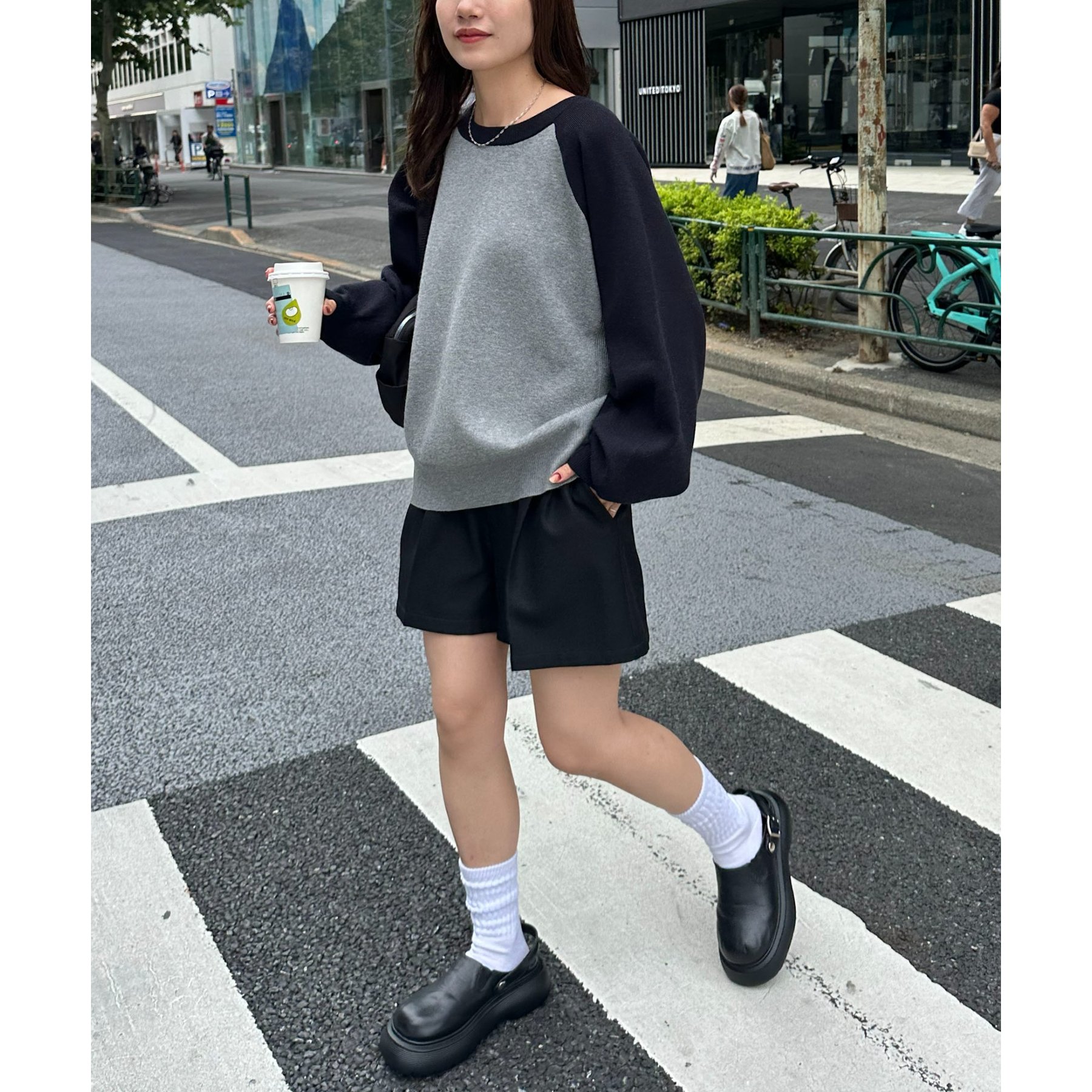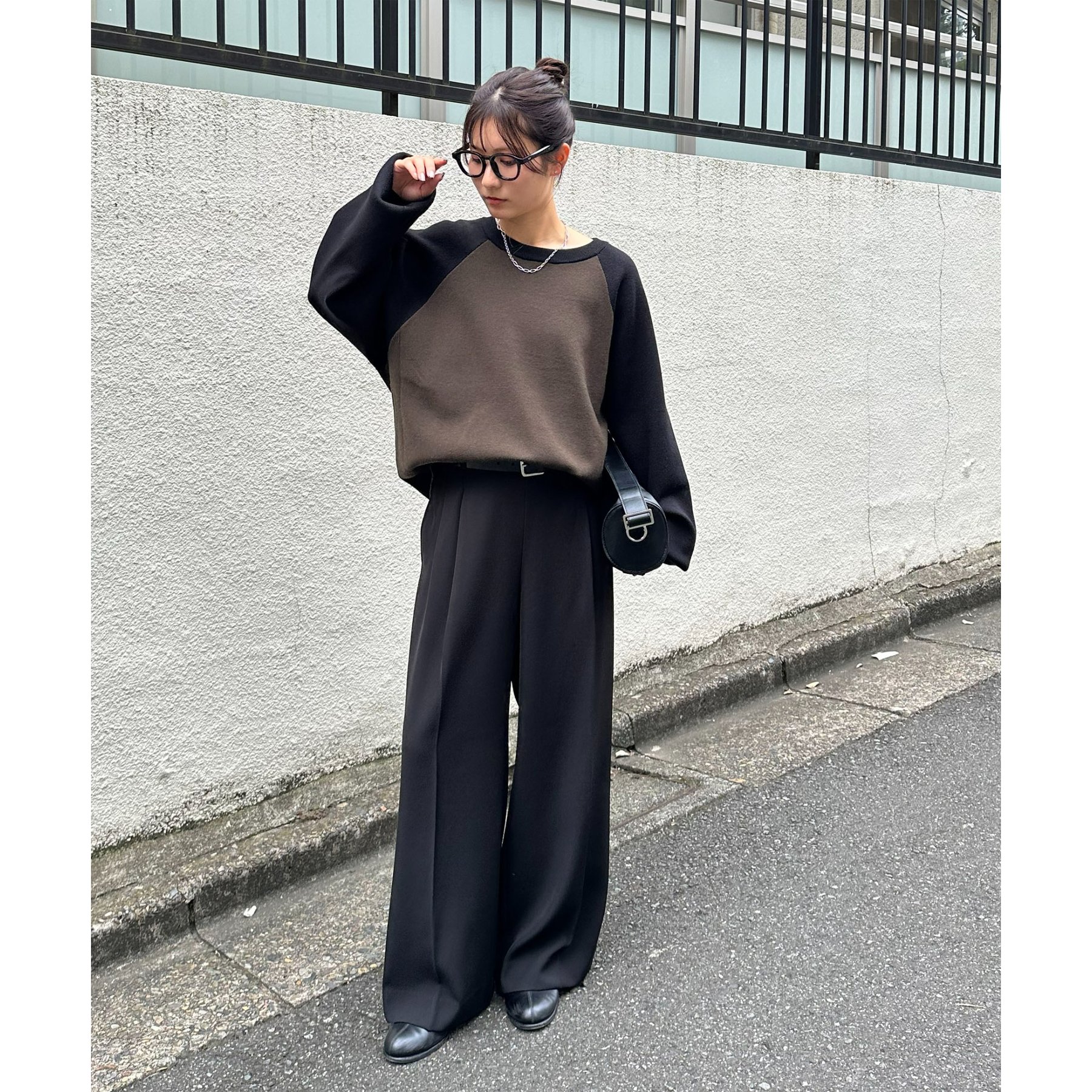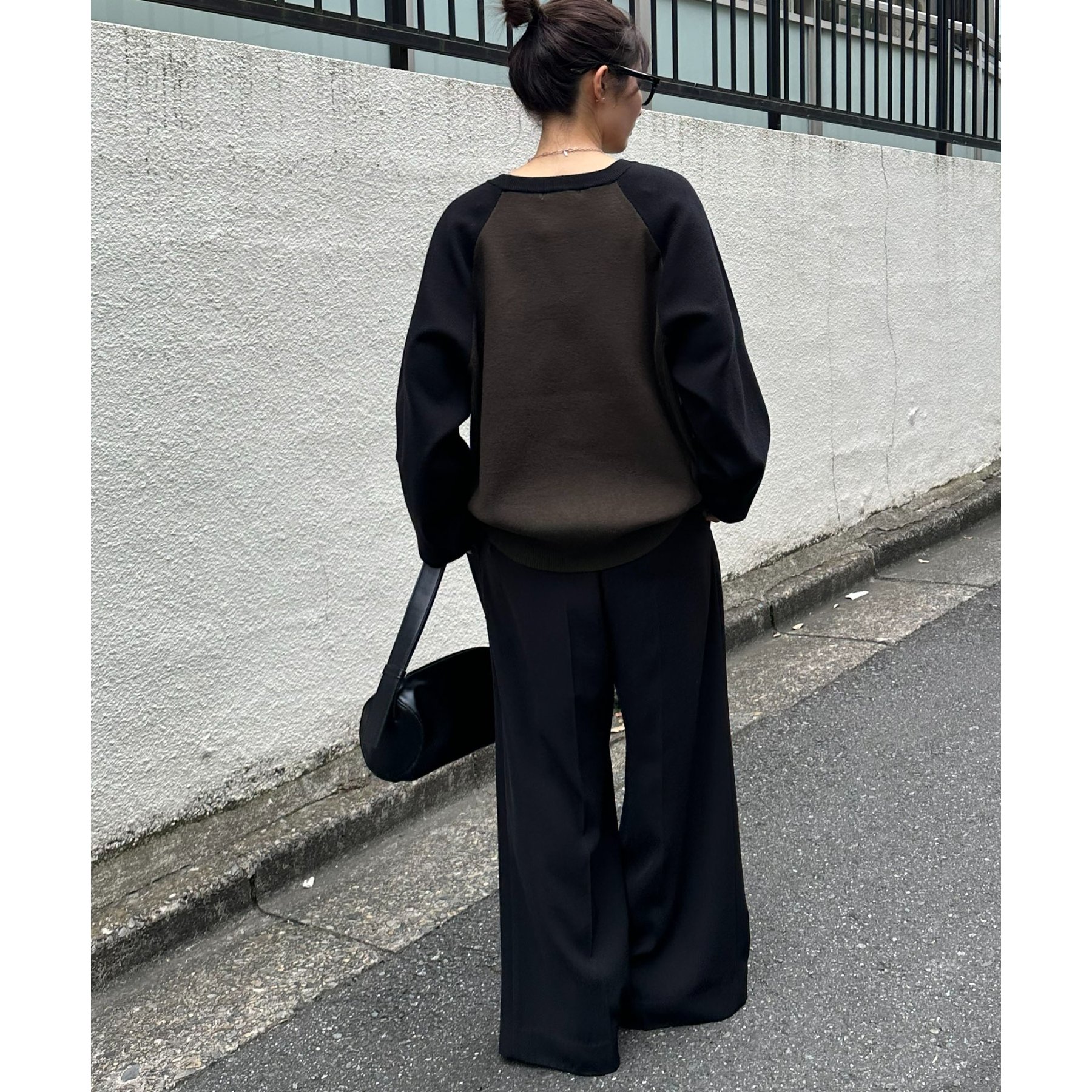 配色の切り替えが目を引く、ラグランスリーブデザインのニットプルオーバー。