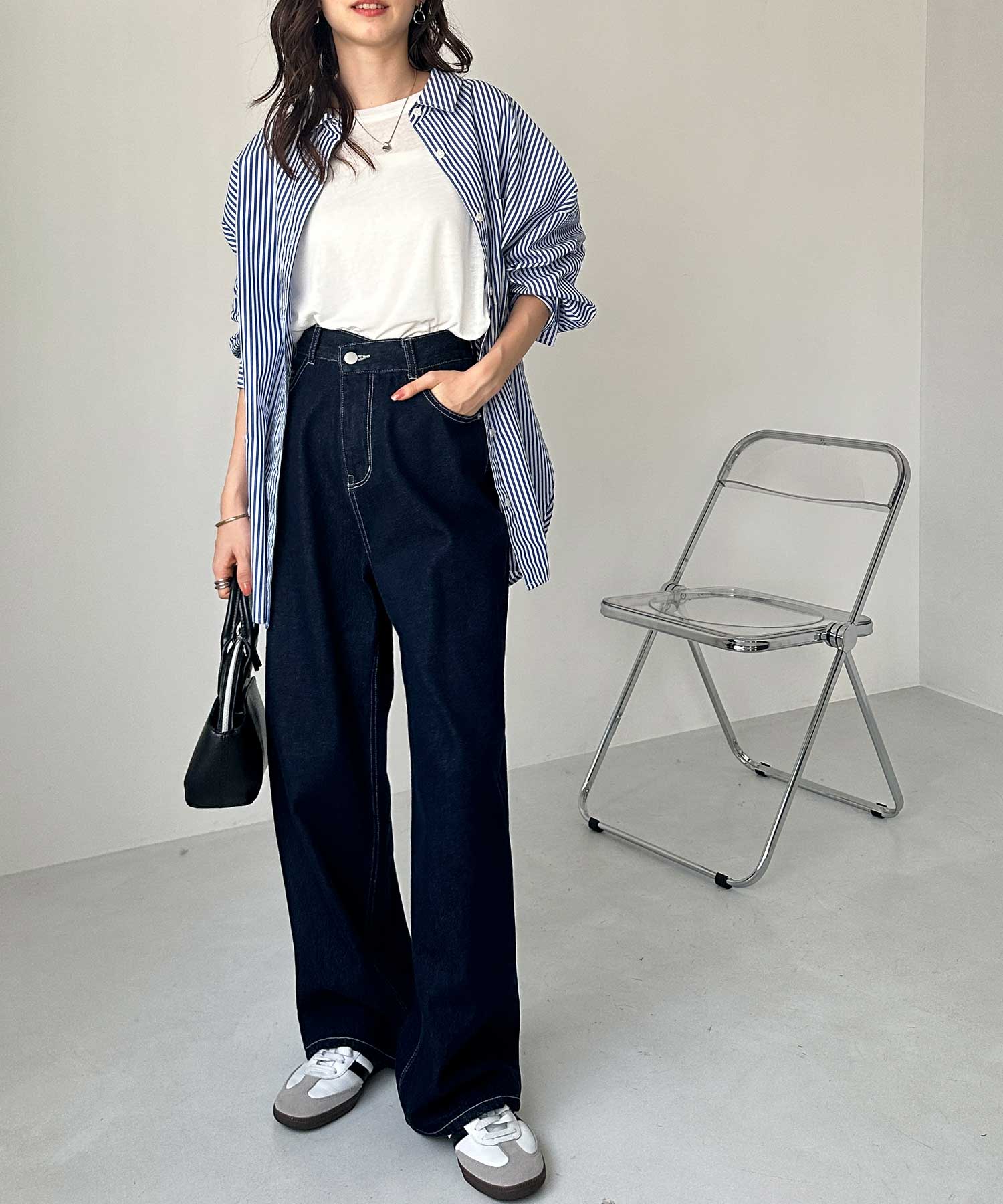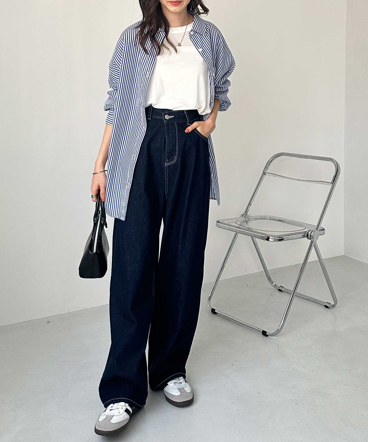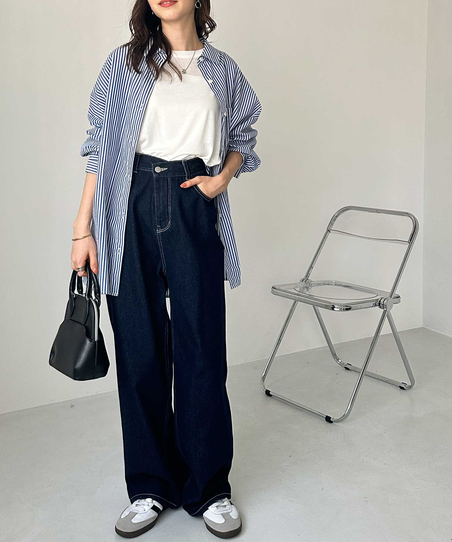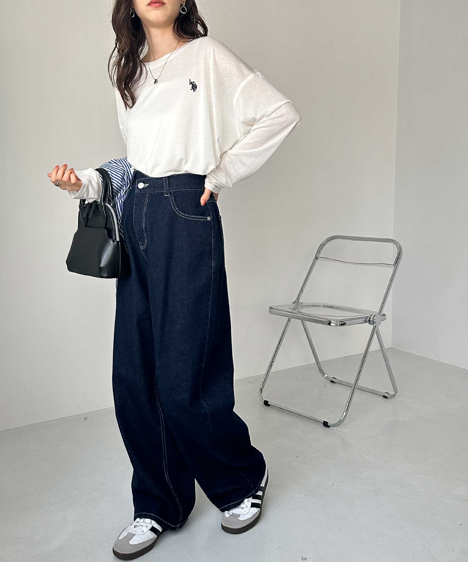 美脚見えとこなれ見えを叶えるワイドシルエットデニム。