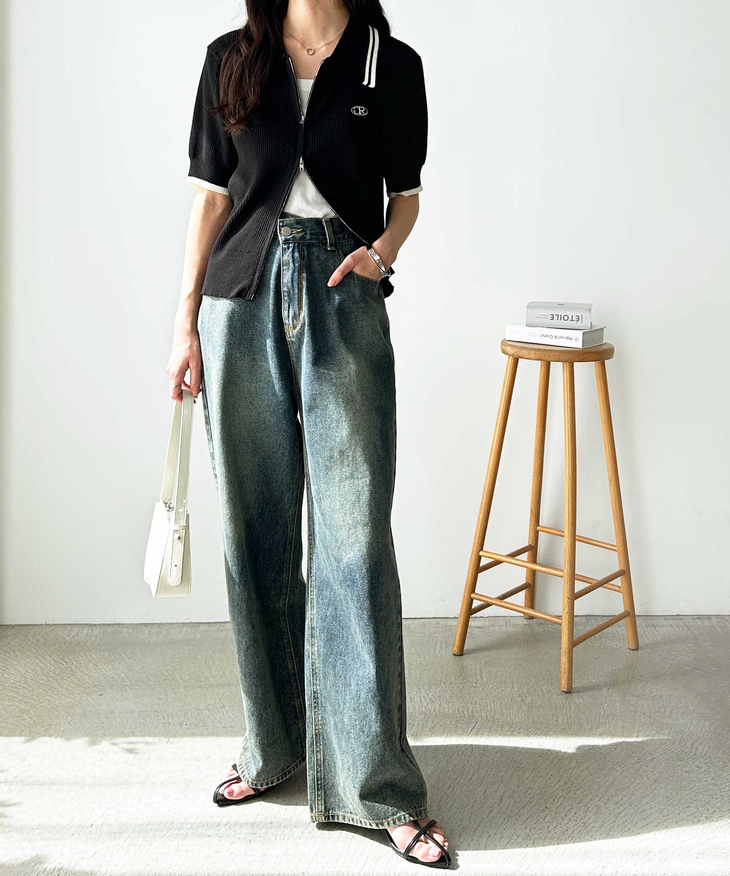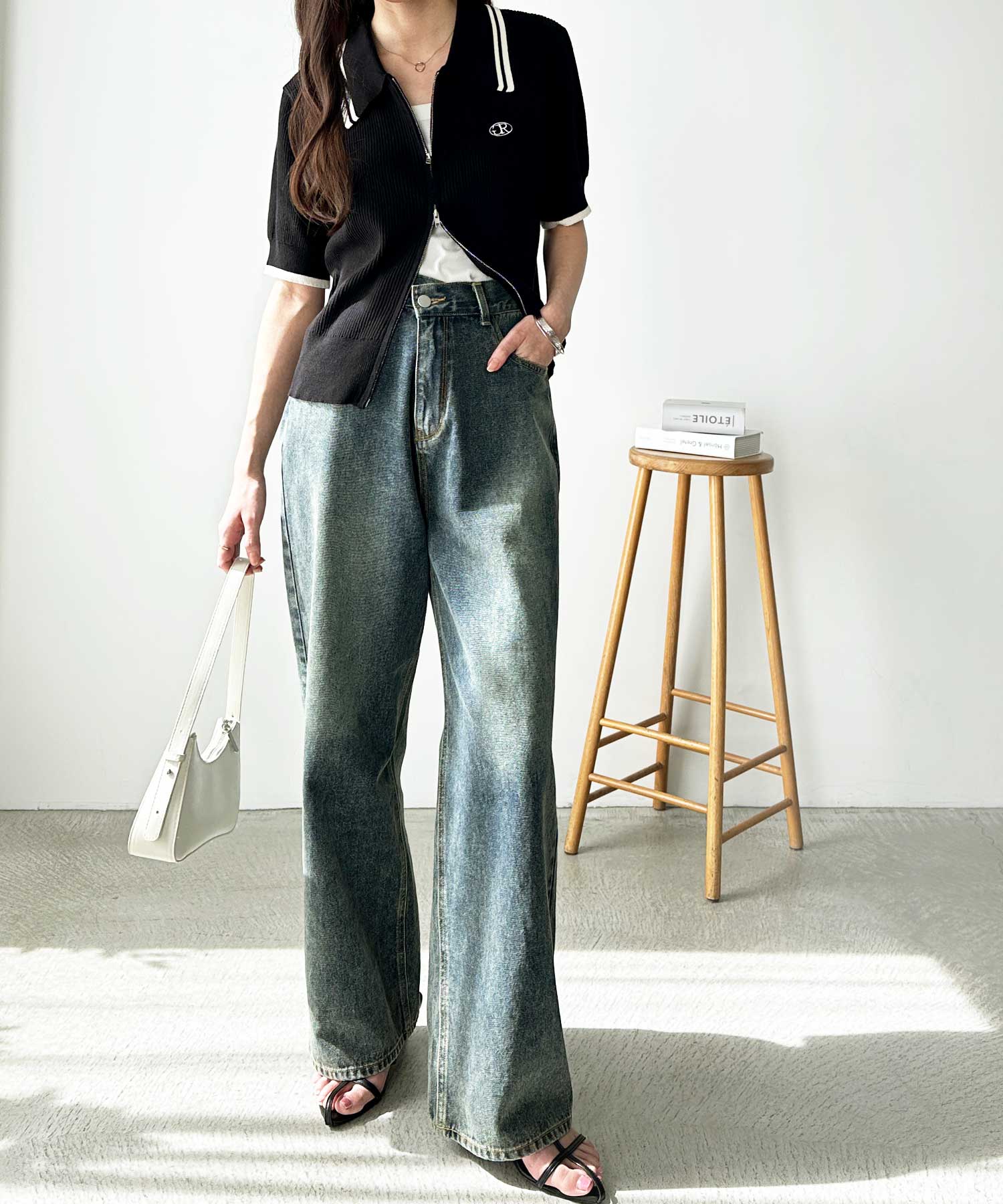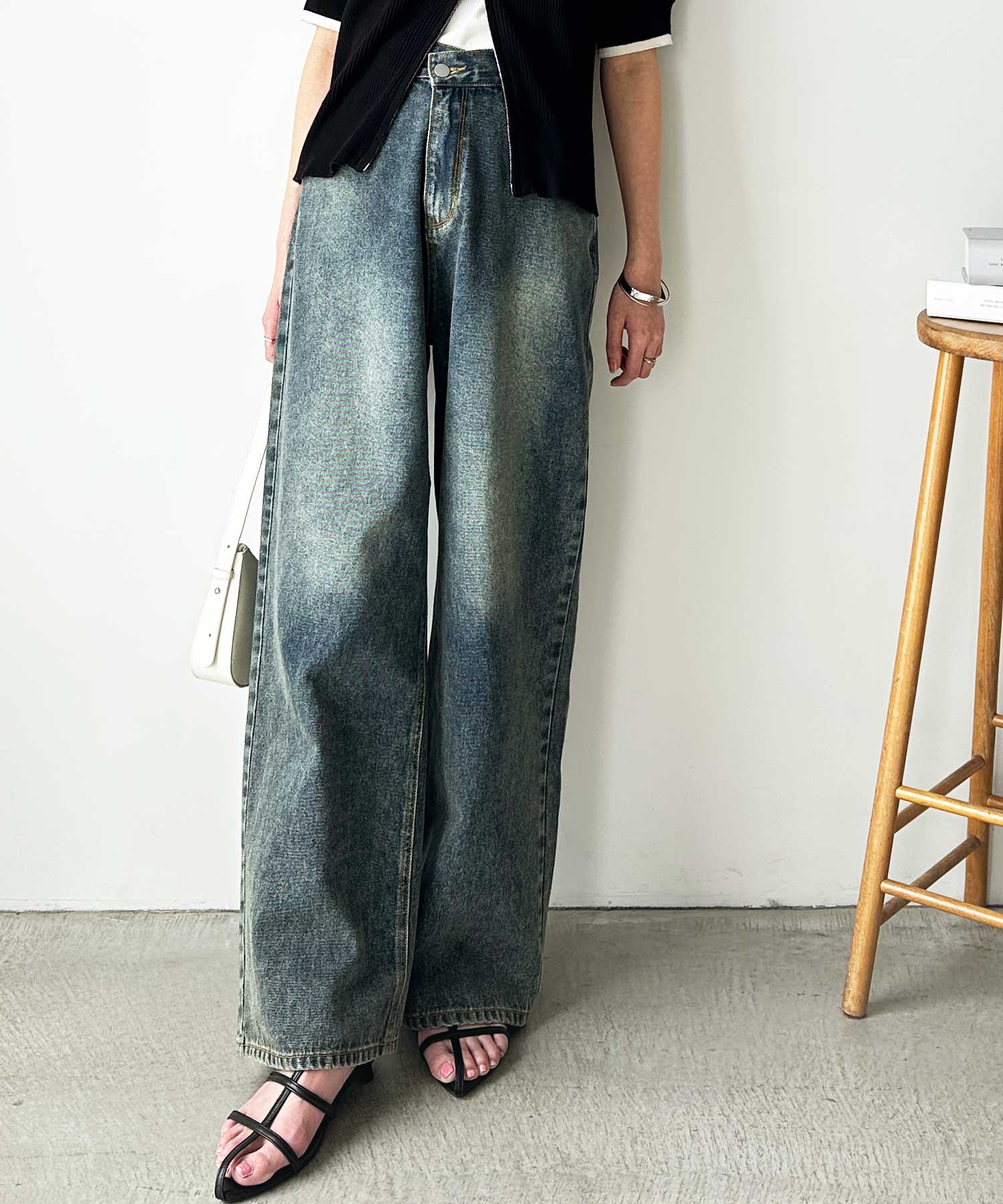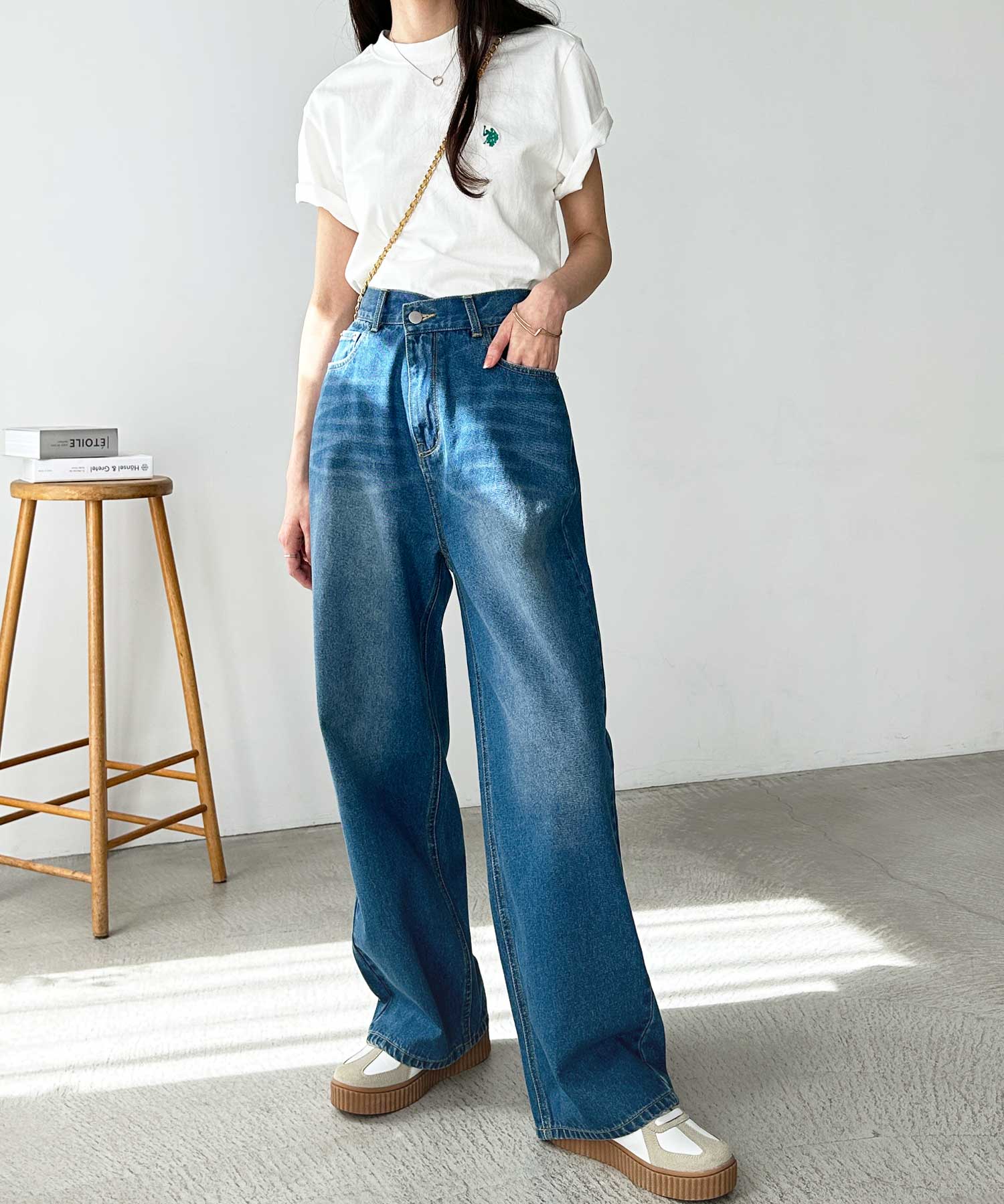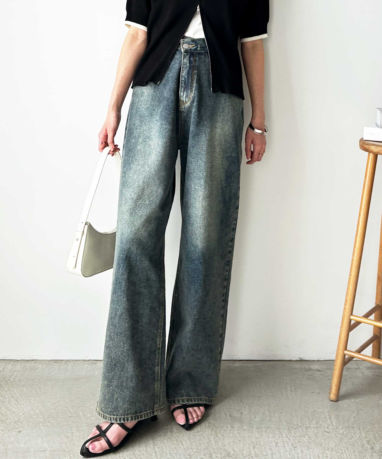色落ち感が目を惹くユーズド加工で、スタイリングに今っぽいこなれ感をプラス。