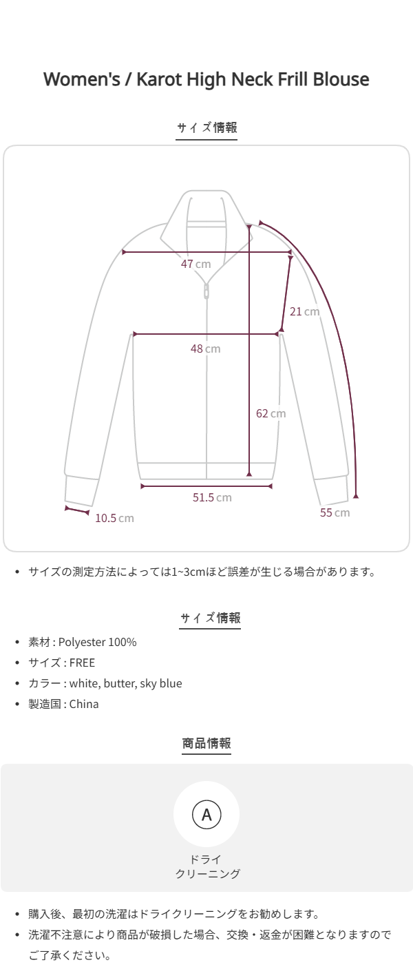 HEIGHT 170cm / BUST 81cm / WAIST 62cm / HIP 90cm