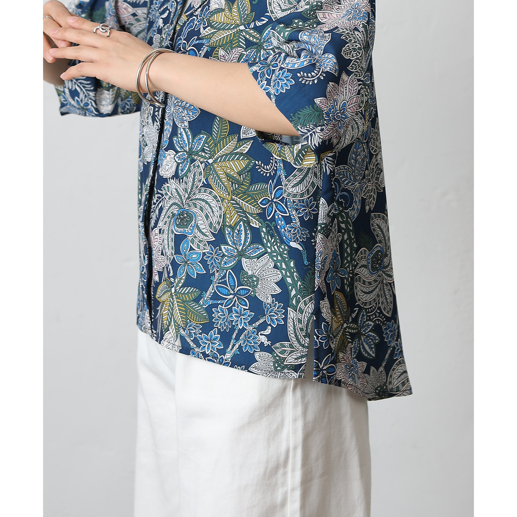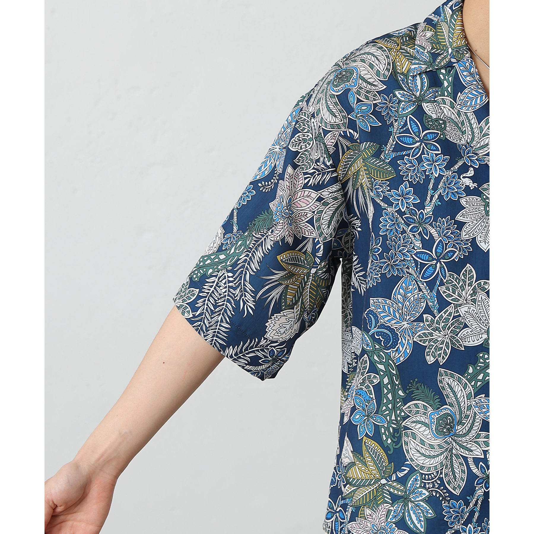 【一点投入で旬顔見えのスカーフ柄プリントシャツ】
