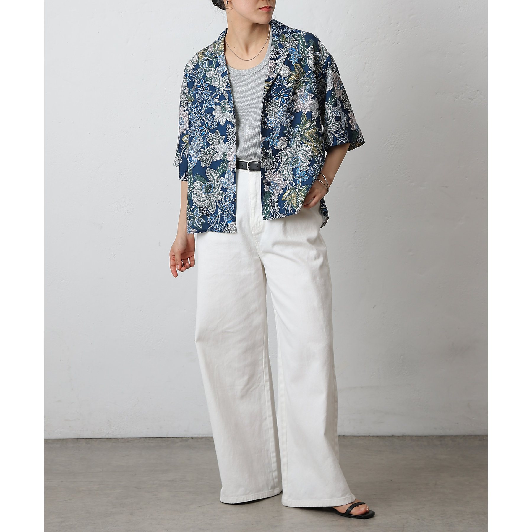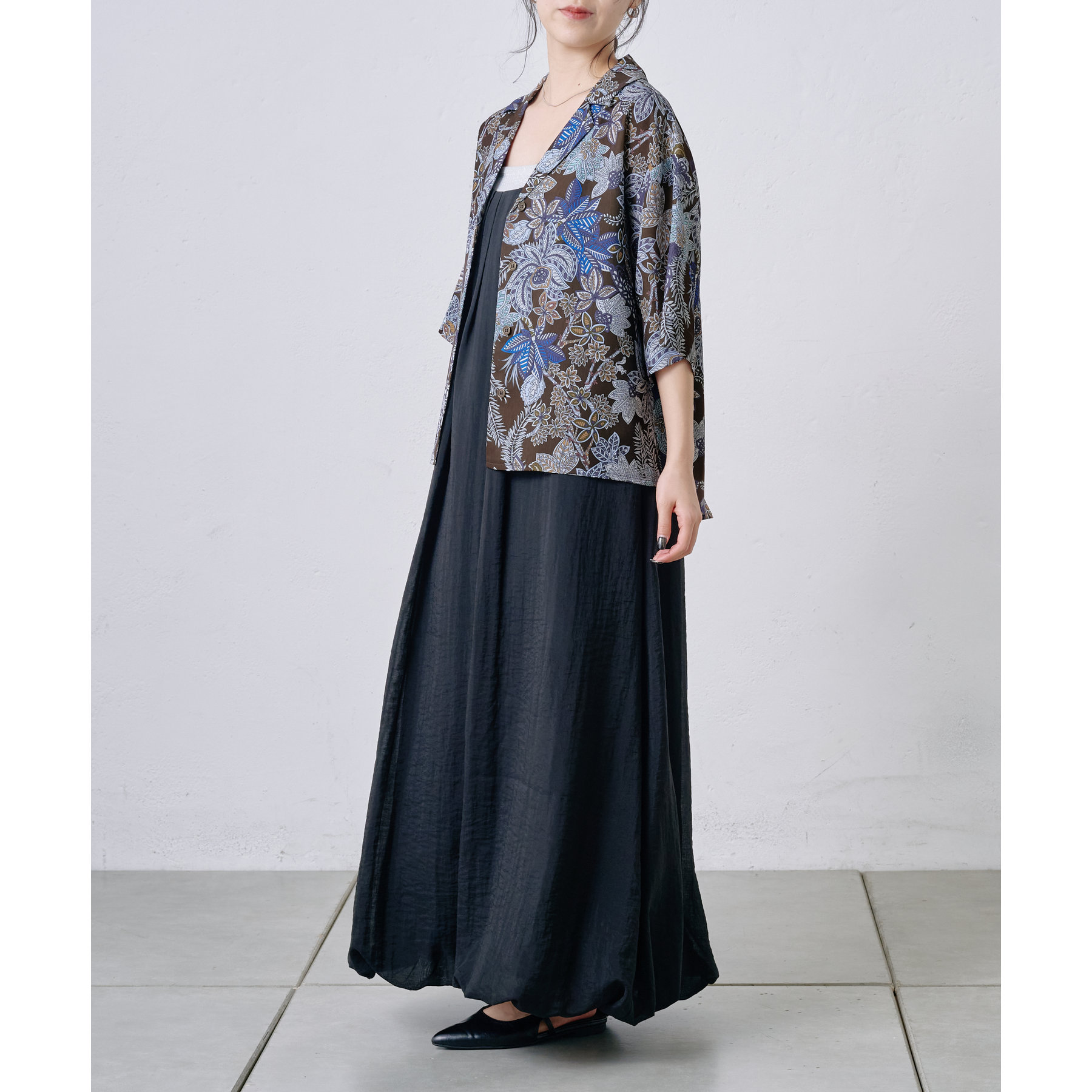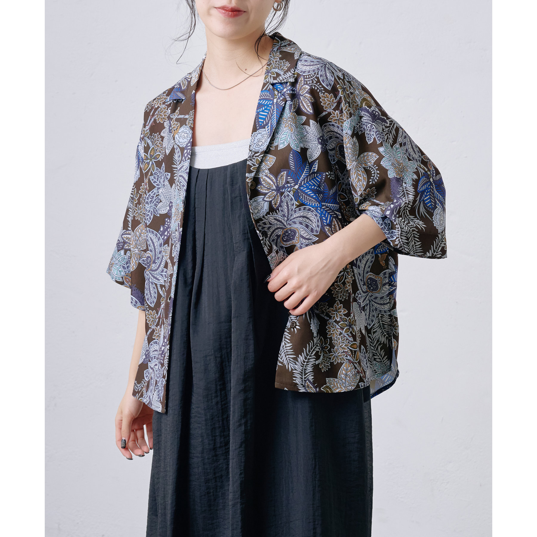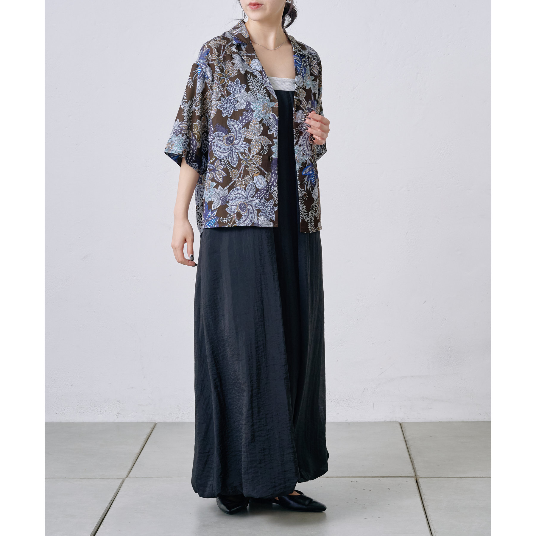 シンプルなTシャツやワンピースに羽織るだけで、こなれた印象に。