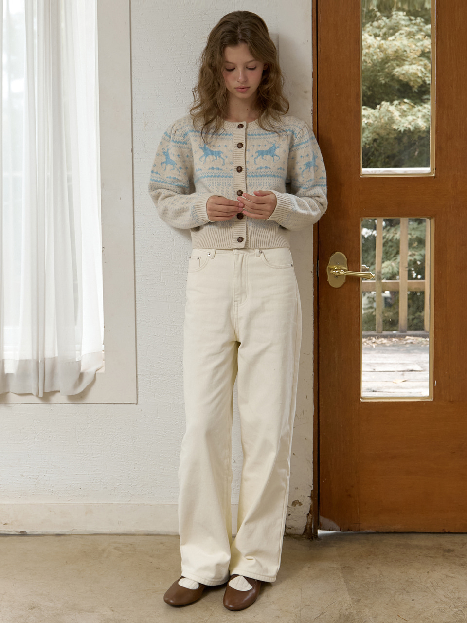 A SEMI WIDE BRUSHED PANTS_IVORY