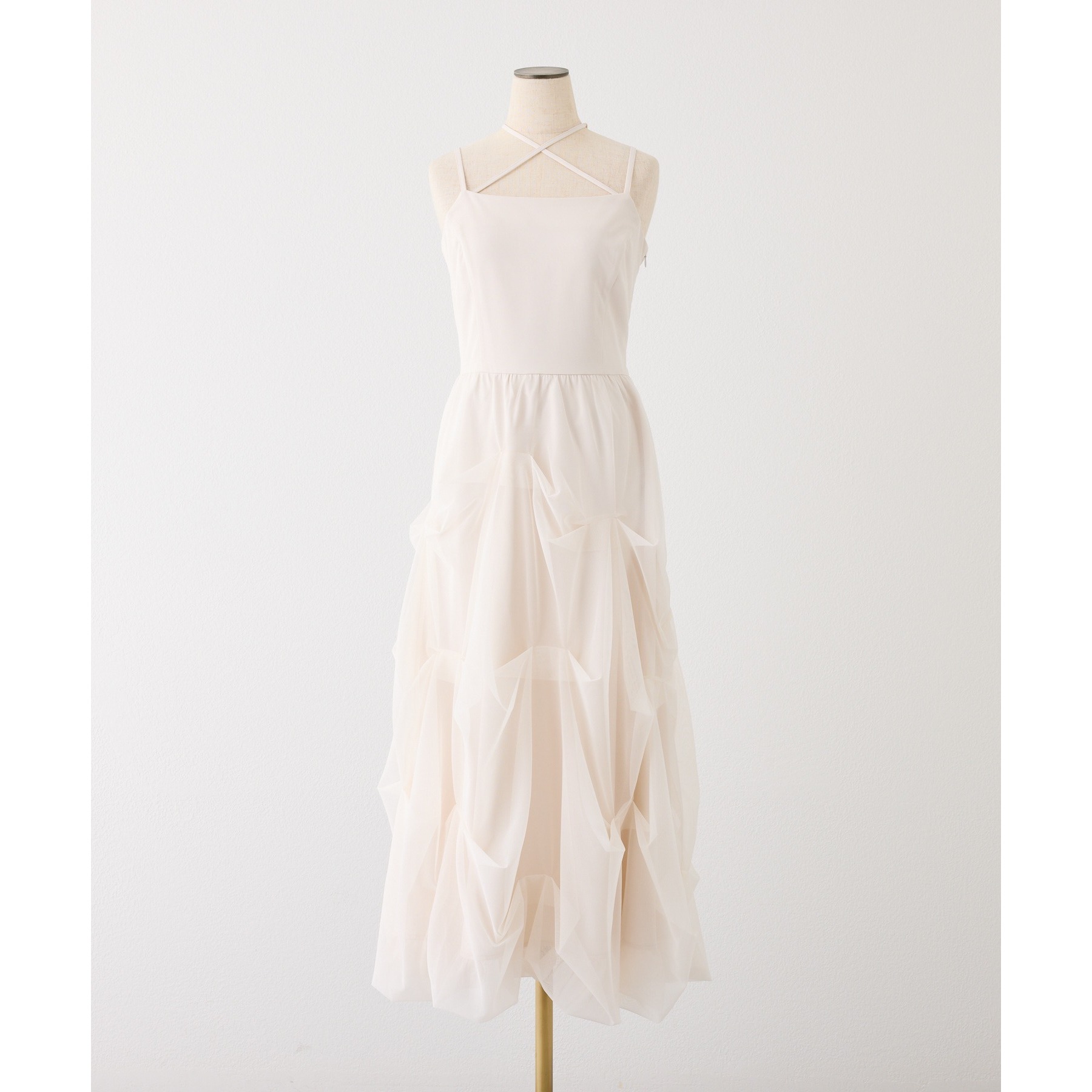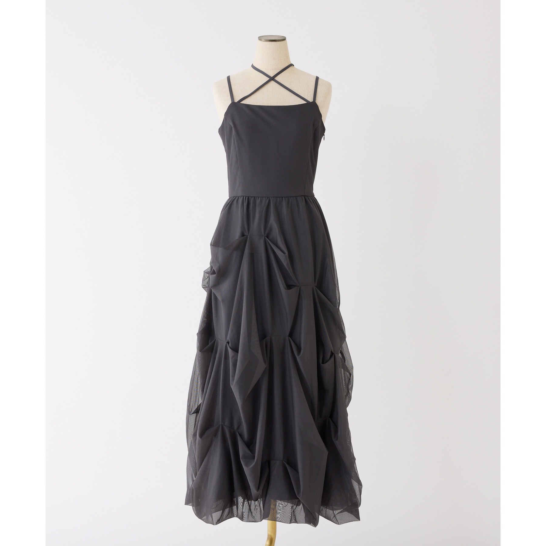 ふんわりと広がる3段バルーンデザインが華やかなキャミロングワンピ。
