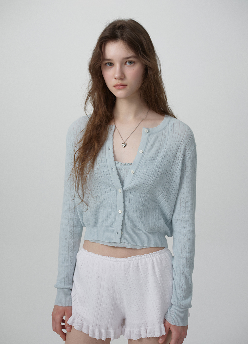 【先行販売】Lorin Pointelle Knit Cardigan Ensemble With Sleeveless Top